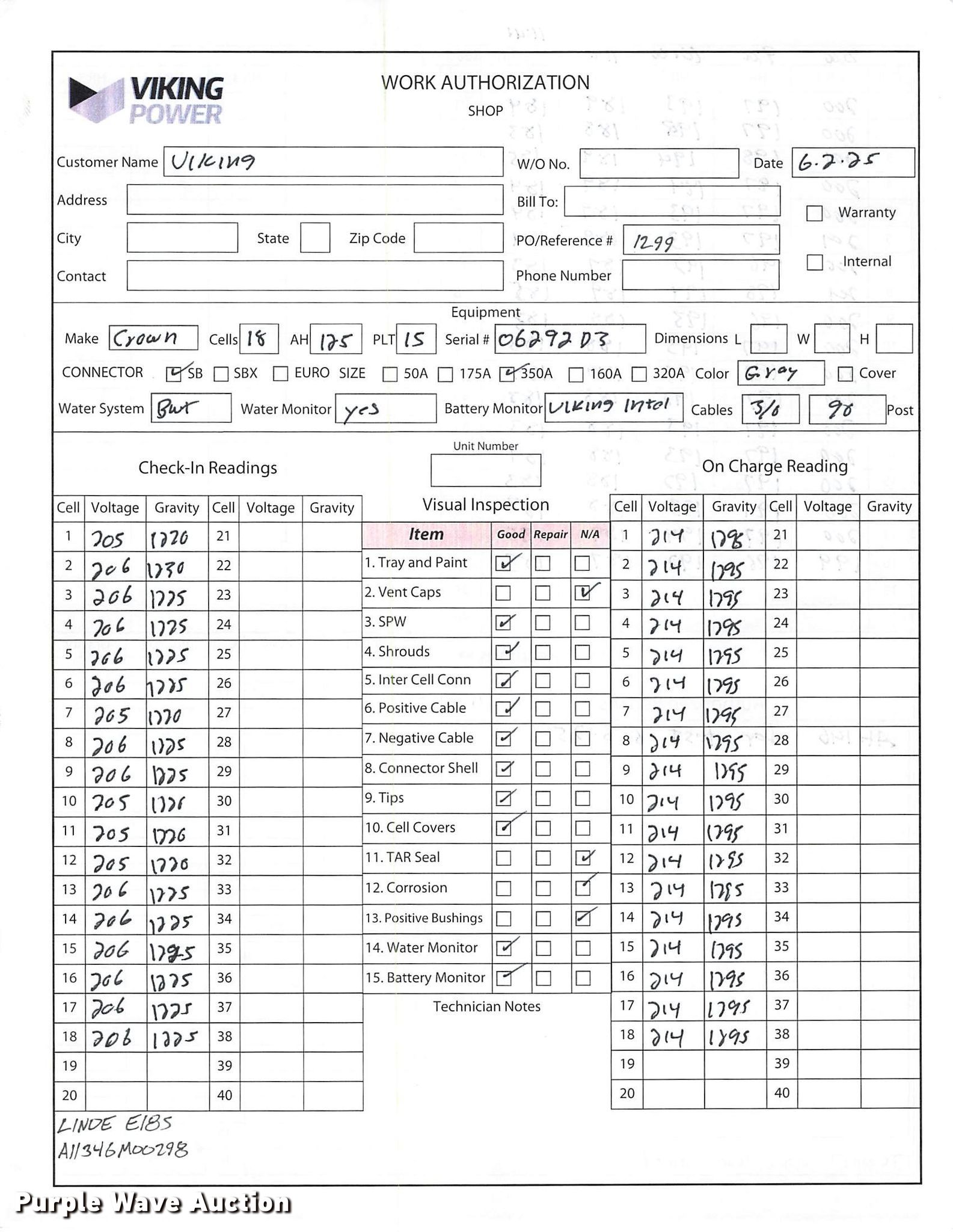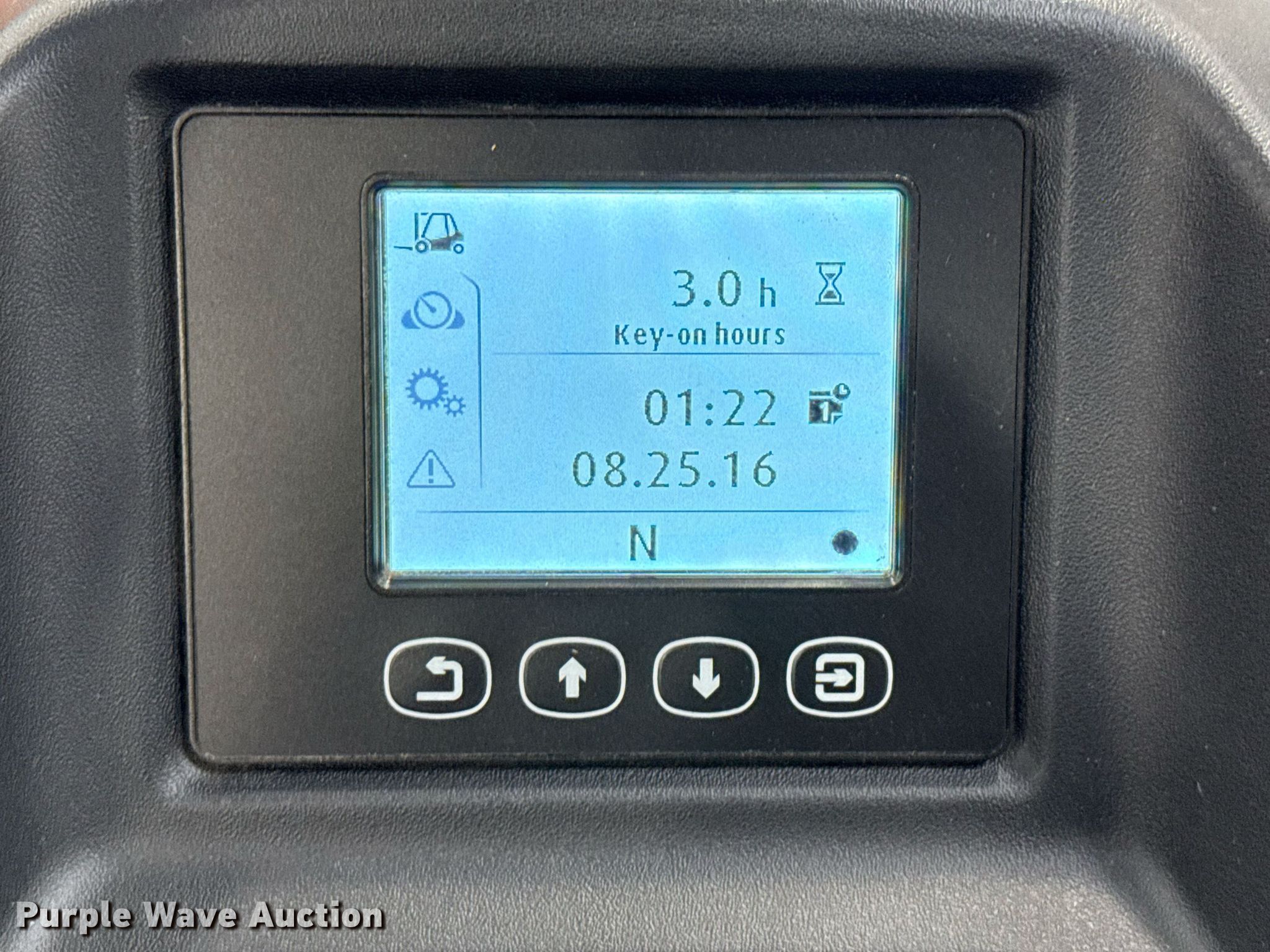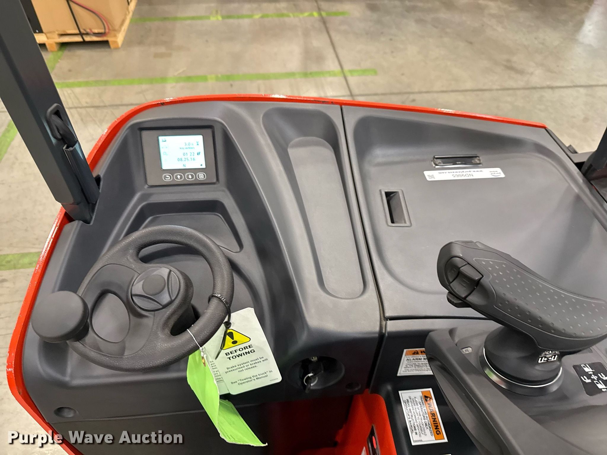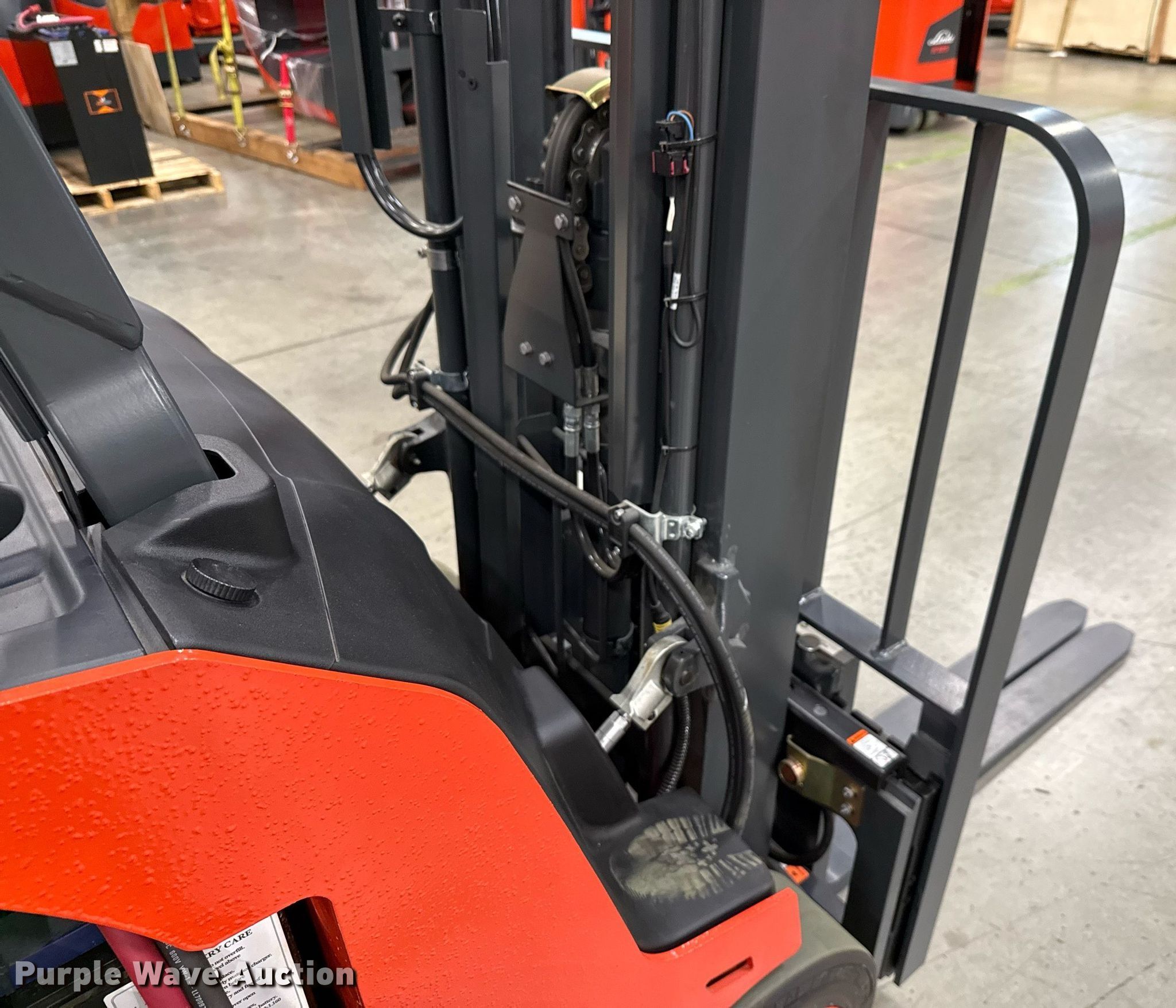 2023 Linde E18S forklift. Hours: 3 on meter, Serial: A11346M00298. Electric Motor Volts: 36, Charger: Viking Ferro Three phase, Battery: Crown 18-125LM-15 Serial 06292D3, 875AH, Water kit. Transmission Electric drive. Operators station OROPS. Features Maximum lift capacity: 3,275 lbs, Maximum lift height: 189", Collapsed mast height: 88", Mast stages: 3, Side shift, Mast tilt, Fork length: 42". Tires Front: 18x7x12 1/8, Rear: 10x5x6.5, Solid. Notes 3 year or 6,000 hour warranty valid after predelivery inspection by licensed Linde dealer is complete. Fees apply. Prologis - Linde Warranty Available. Lewisville, TX 75067