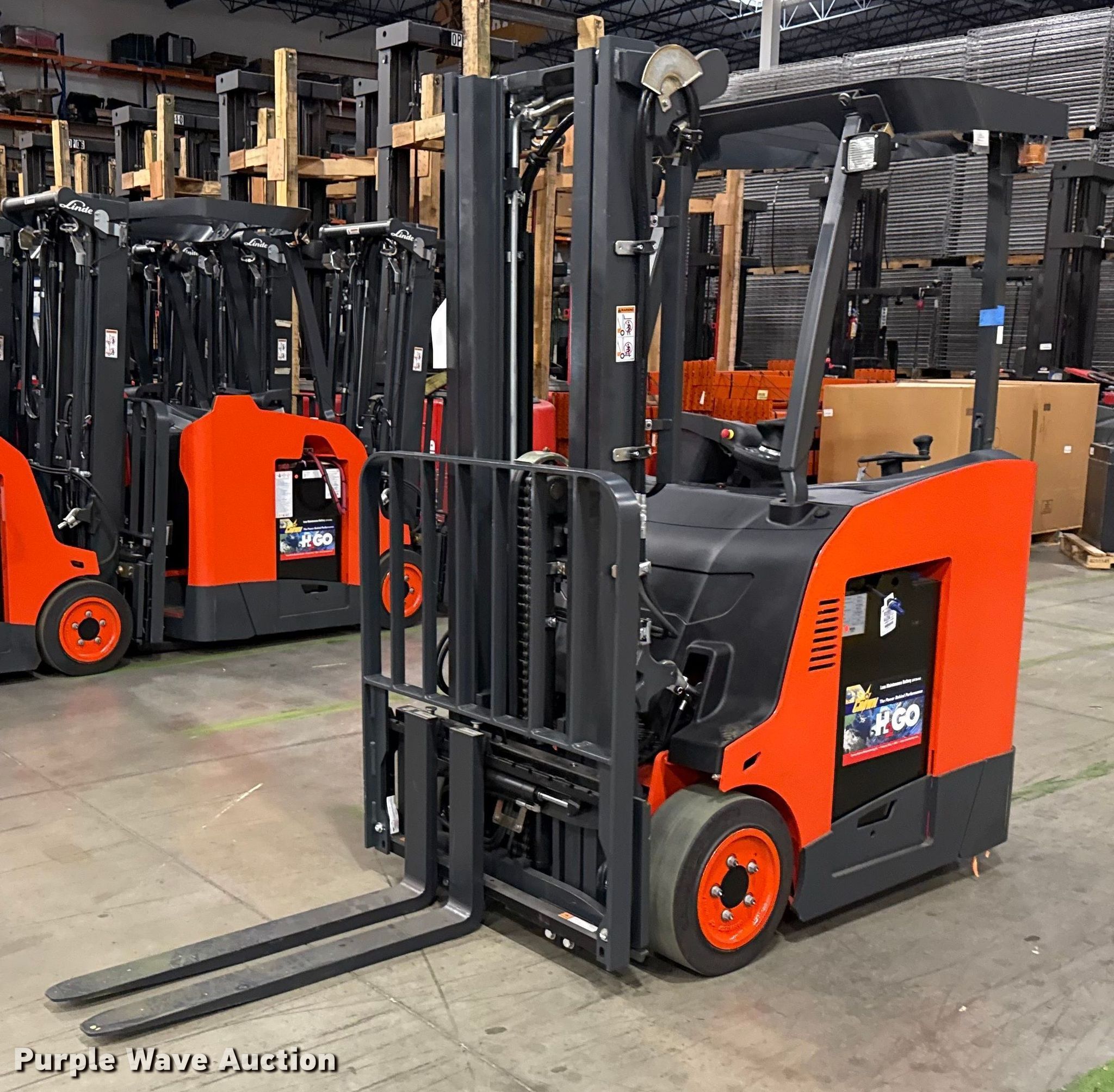 Purple Wave is selling a used Warehouse Forklift in Texas. This item is a 2023 Linde E18S forklift with the following: Hours: 4 on meter, Serial: A11346M00191