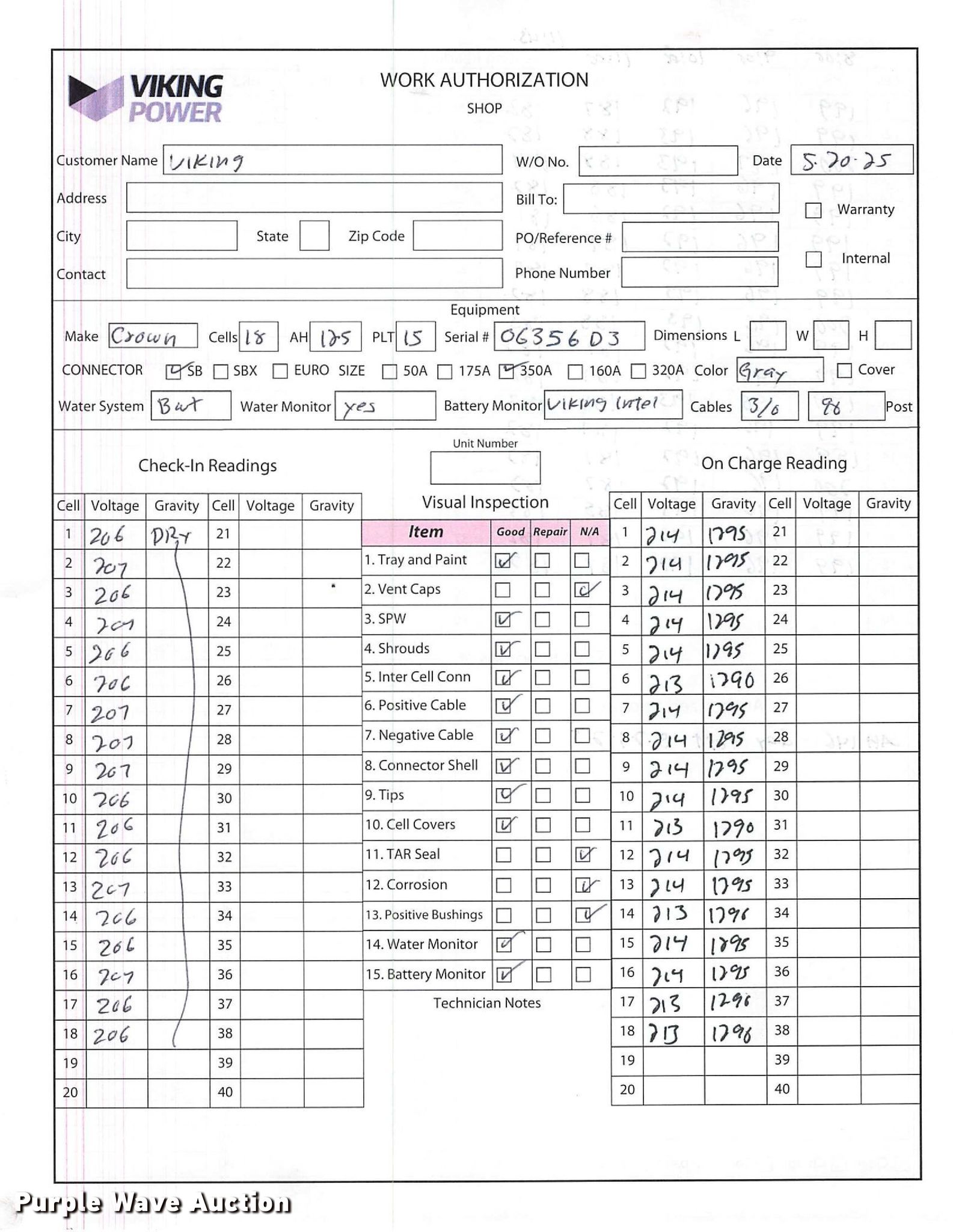 2023 Linde E18S forklift. Hours: 4 on meter, Serial: A11346M00191. Electric Motor Volts: 36, Charger: Viking Ferro Three phase, Battery: Crown 18-125LM-15 Serial: 06356D3, 875AH, Water kit. Transmission Electric drive. Operators station OROPS. Features Maximum lift capacity: 3,275 lbs, Maximum lift height: 189", Collapsed mast height: 88", Mast stages: 3, Side shift, Mast tilt, Fork length: 42". Tires Front: 18x7x12 1/8, Rear: 10x5x6.5, Solid. Notes 3 year or 6,000 hour warranty valid after predelivery inspection by licensed Linde dealer is complete. Fees apply. Prologis - Linde Warranty Available. Lewisville, TX 75067