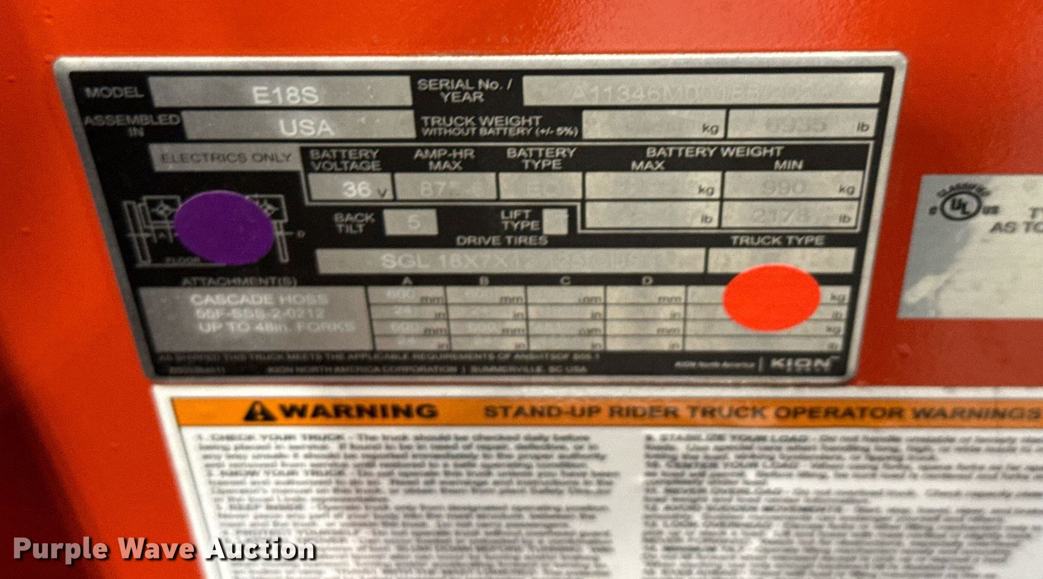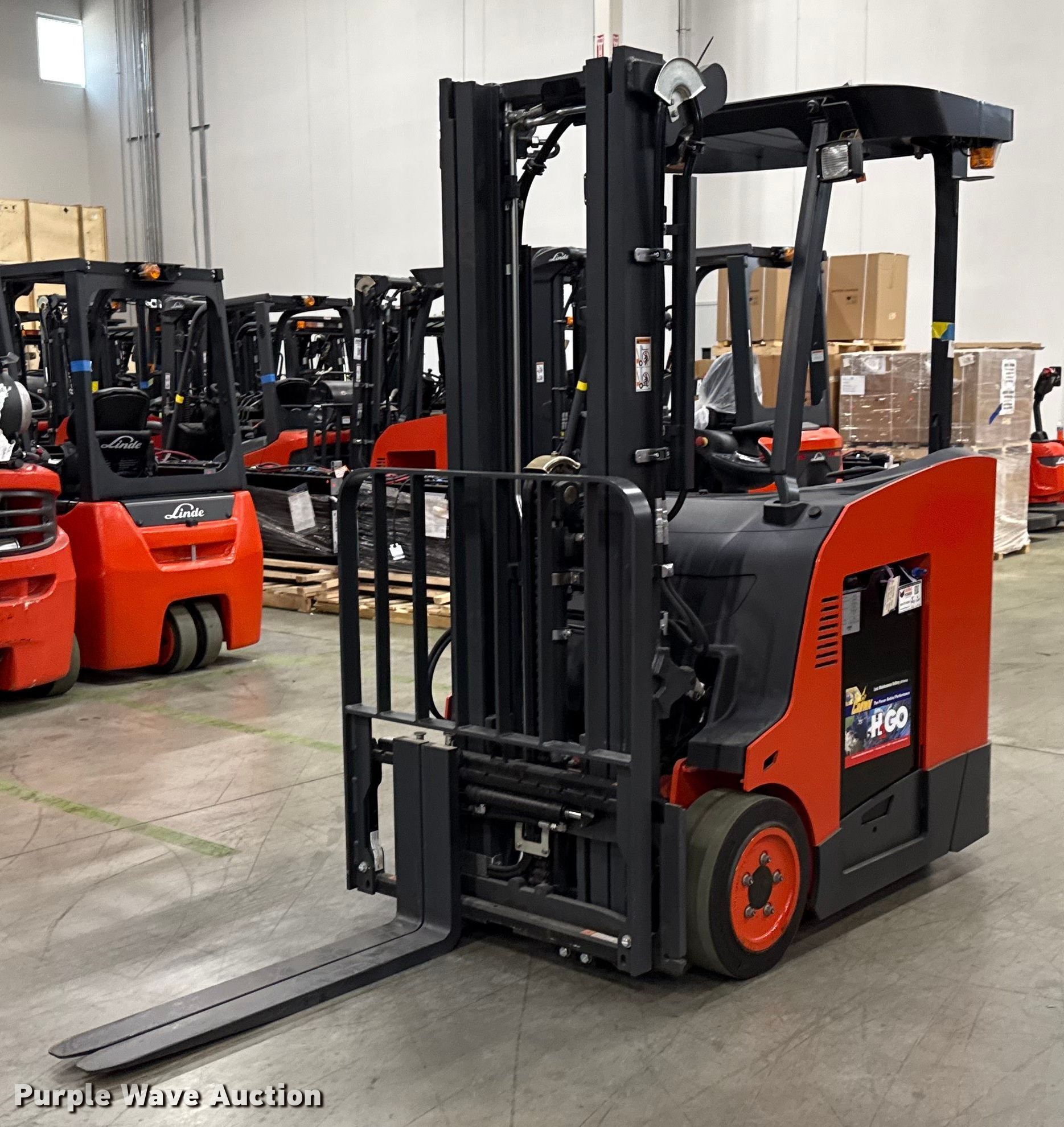 Purple Wave is selling a used Warehouse Forklift in Texas. This item is a 2023 Linde E18S forklift with the following: Hours: 4 on meter, Serial: A11346M00188