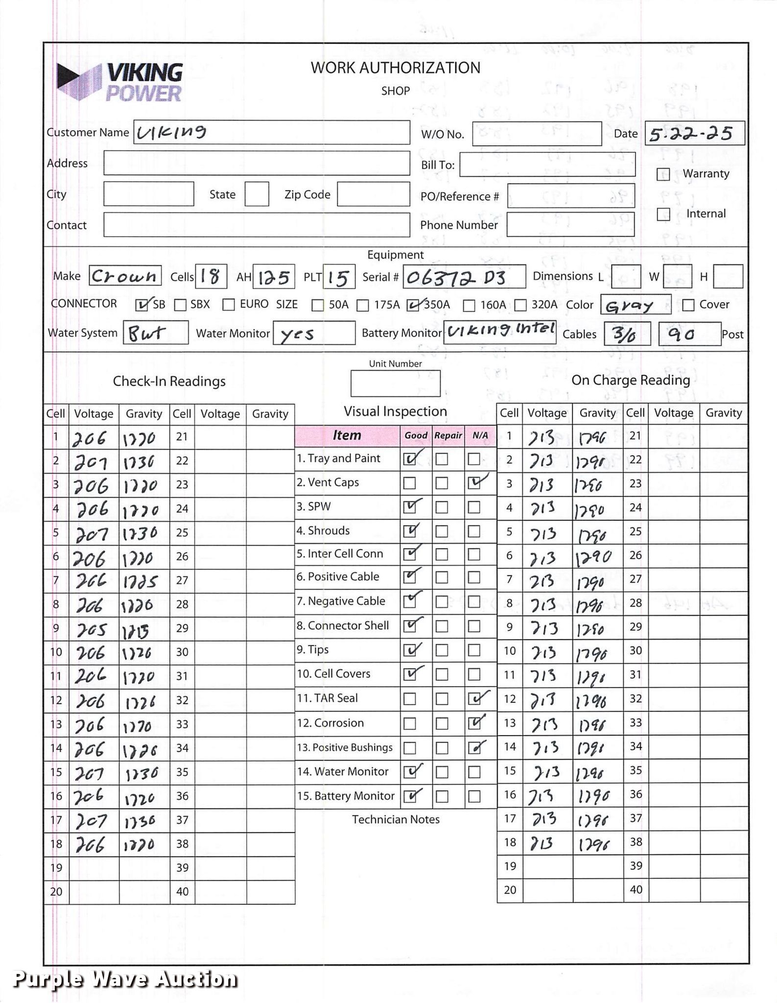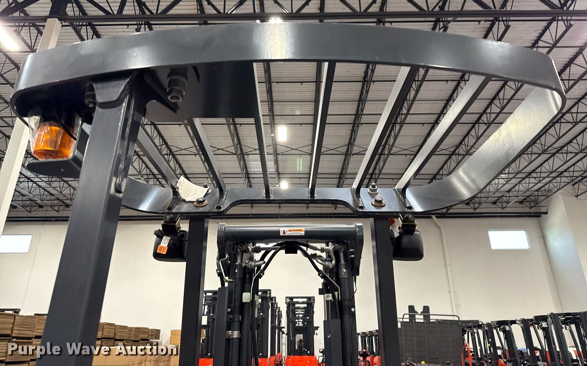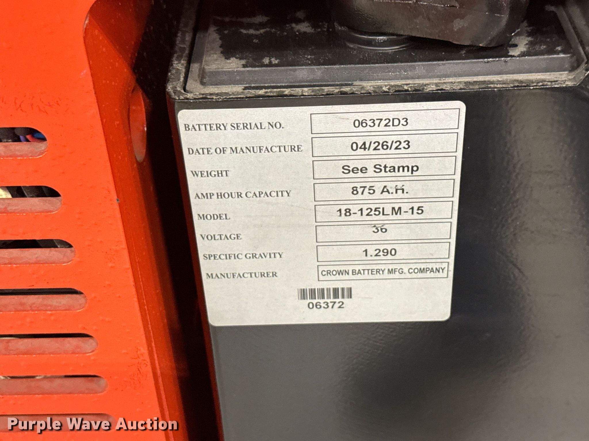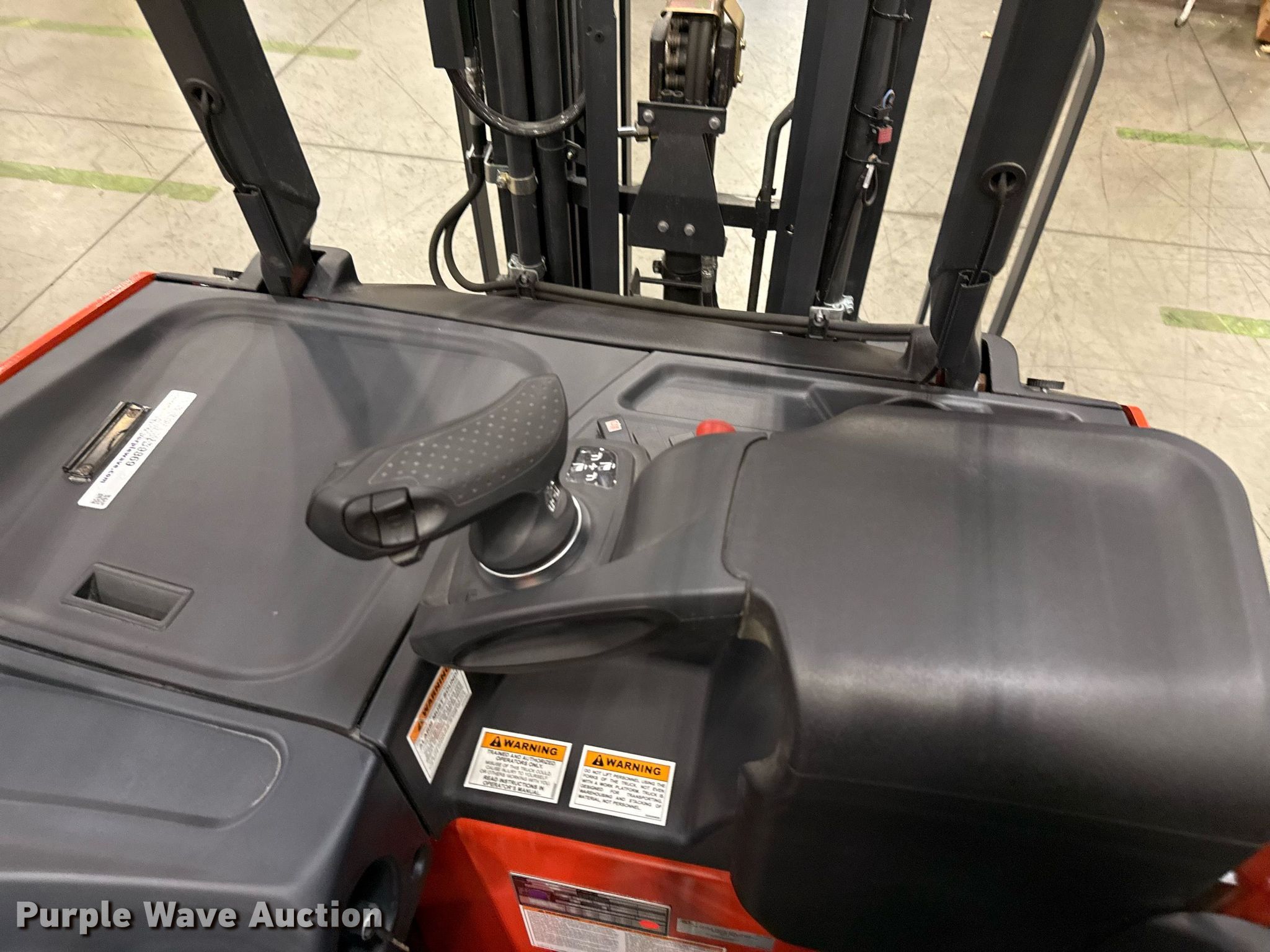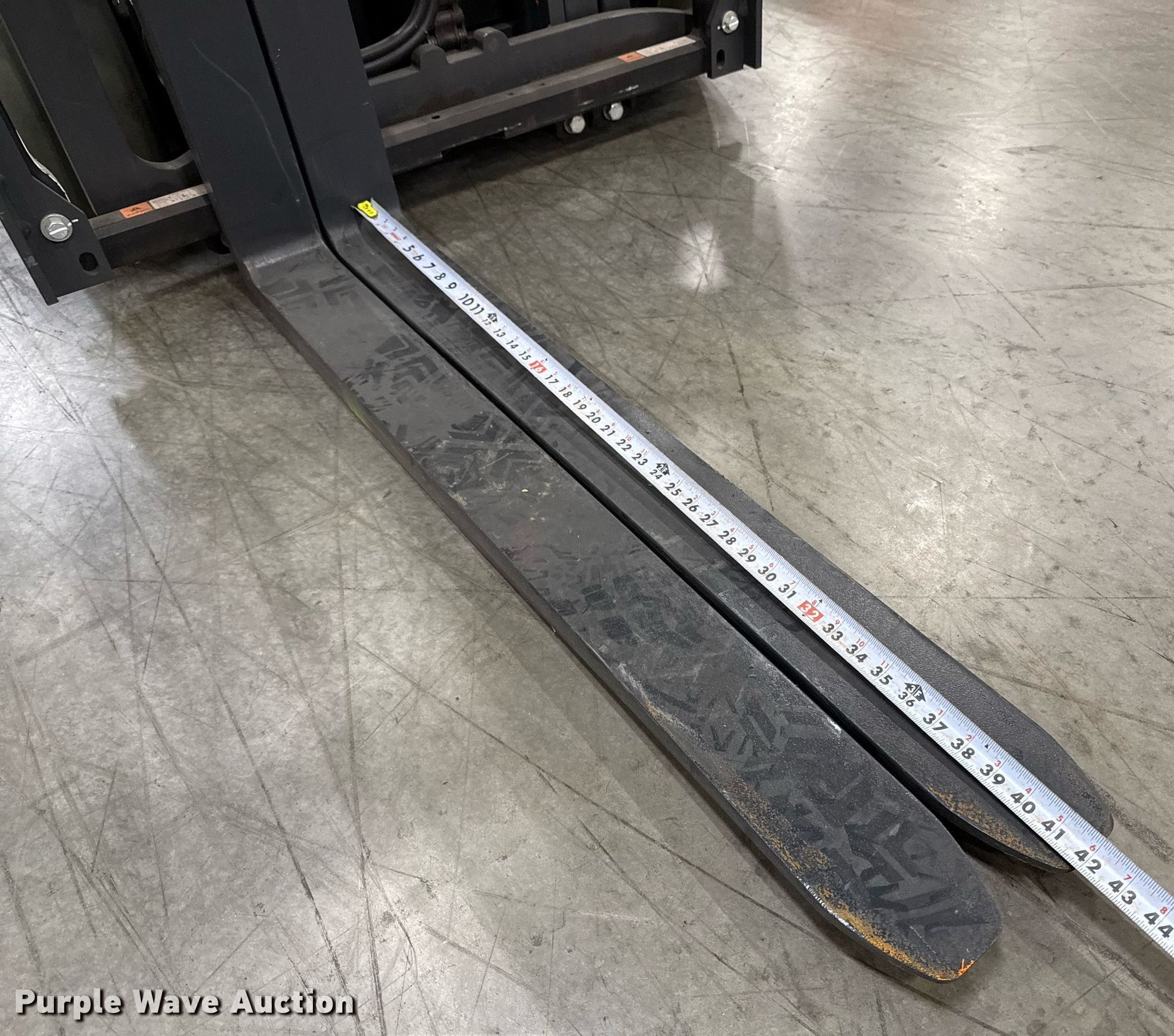 2023 Linde E18S forklift. Hours: 4 on meter, Serial: A11346M00188. Electric Motor Volts: 36, Charger: Viking Ferro Three phase, Battery: Crown 18-125LM-15 Serial 06372D3, 875AH, Water kit. Transmission Electric drive. Operators station OROPS. Features Maximum lift capacity: 3,275 lbs, Maximum lift height: 189", Collapsed mast height: 88", Mast stages: 3, Side shift, Mast tilt, Fork length: 42". Tires Front: 18x7x12 1/8, Rear: 10x5x6.5, Solid. Notes 3 year or 6,000 hour warranty valid after predelivery inspection by licensed Linde dealer is complete. Fees apply. Prologis - Linde Warranty Available. Lewisville, TX 75067