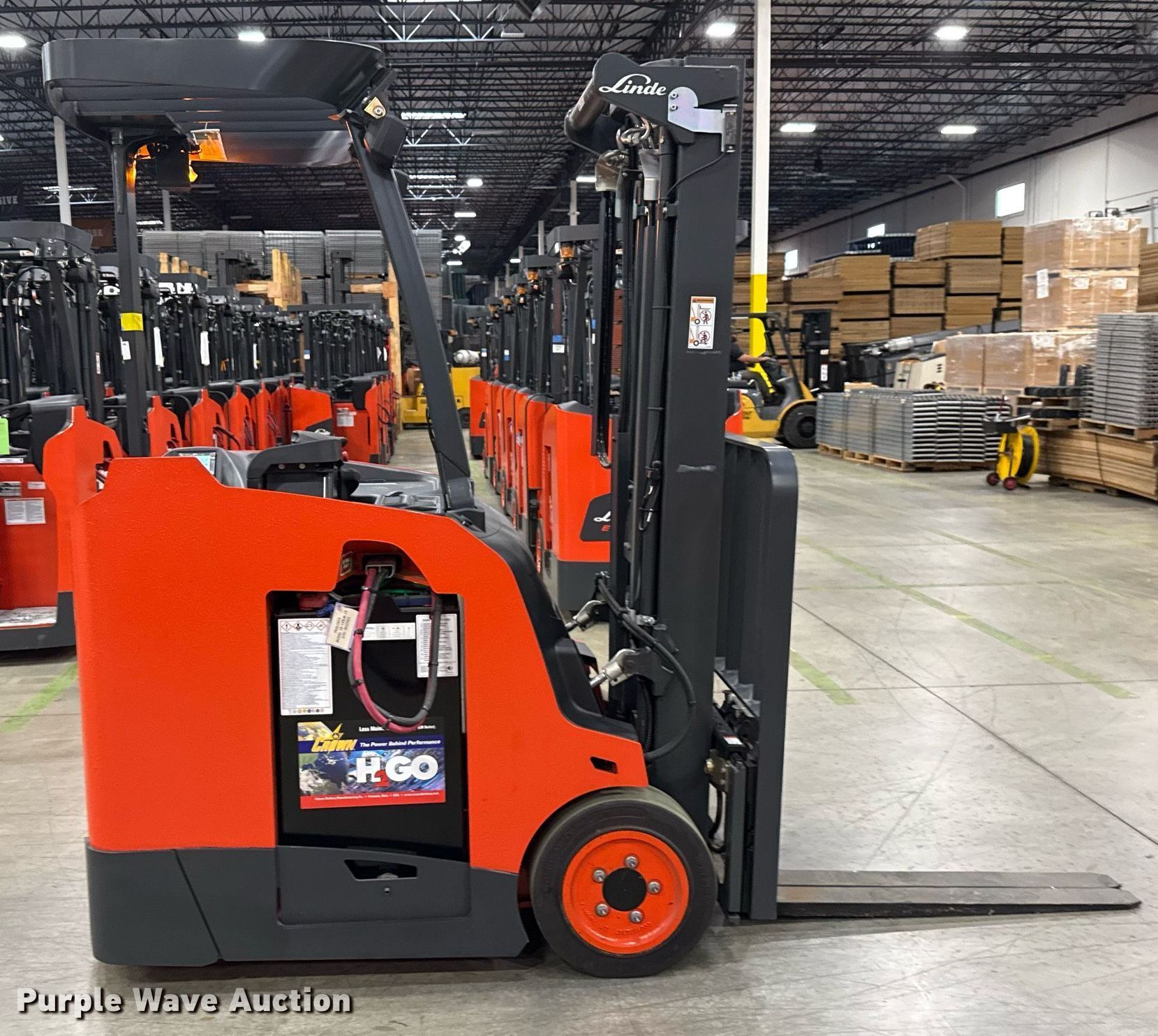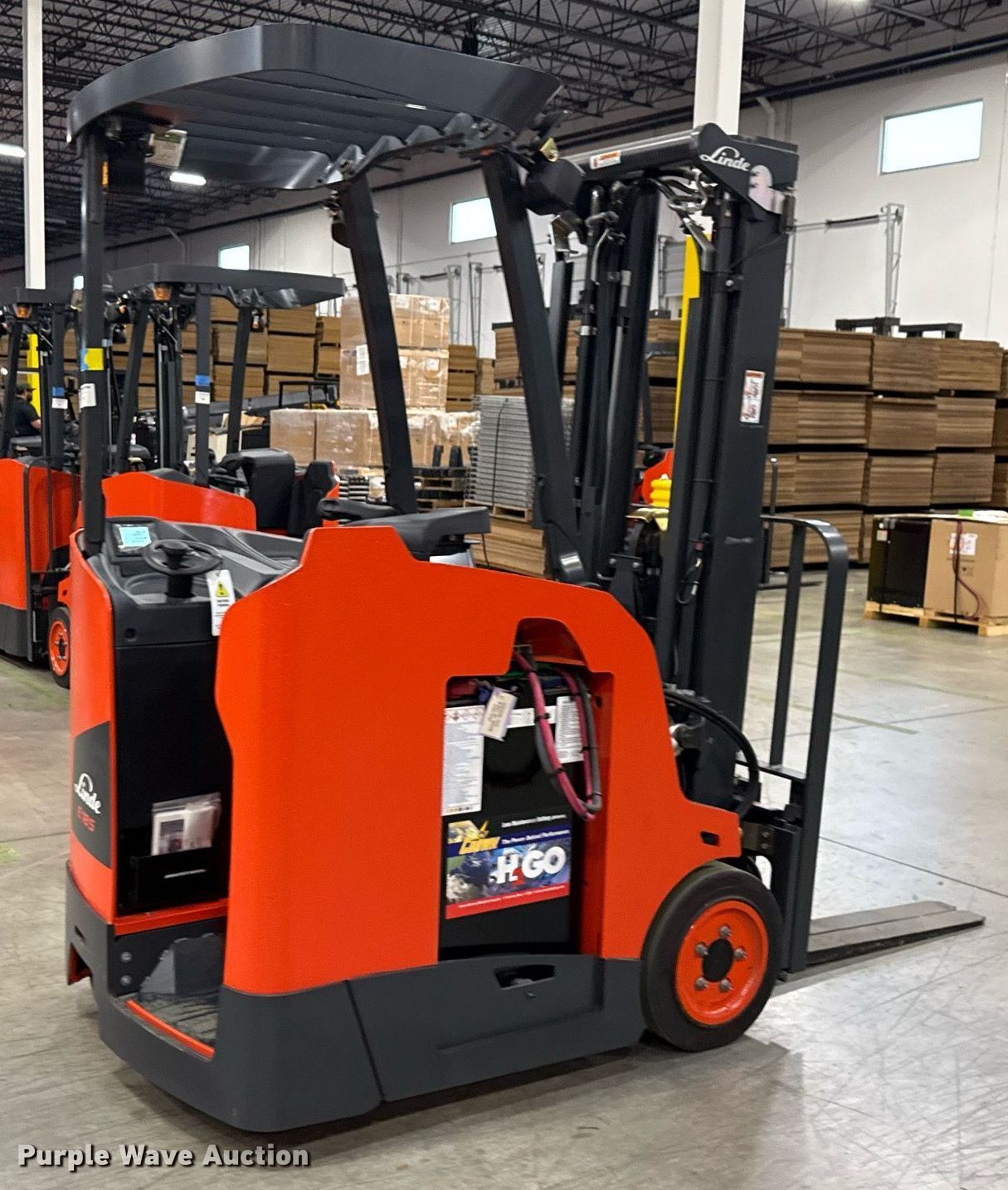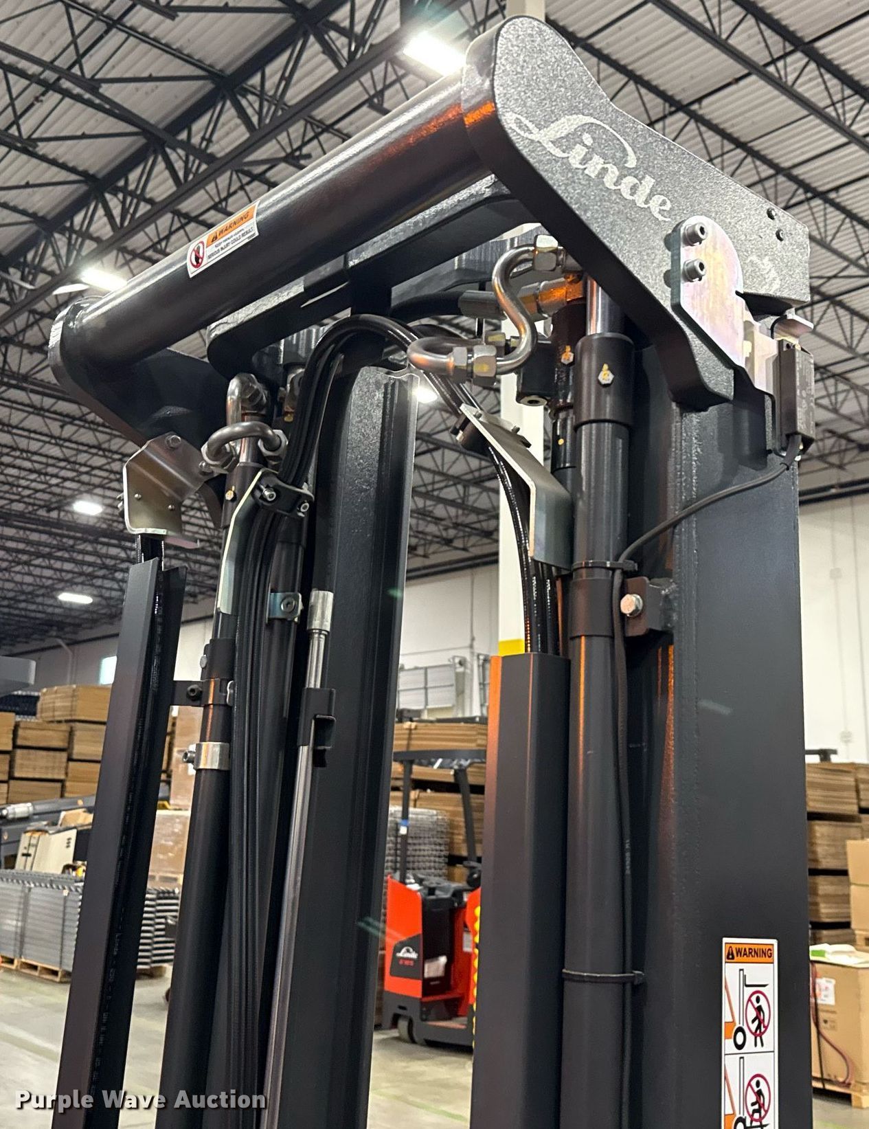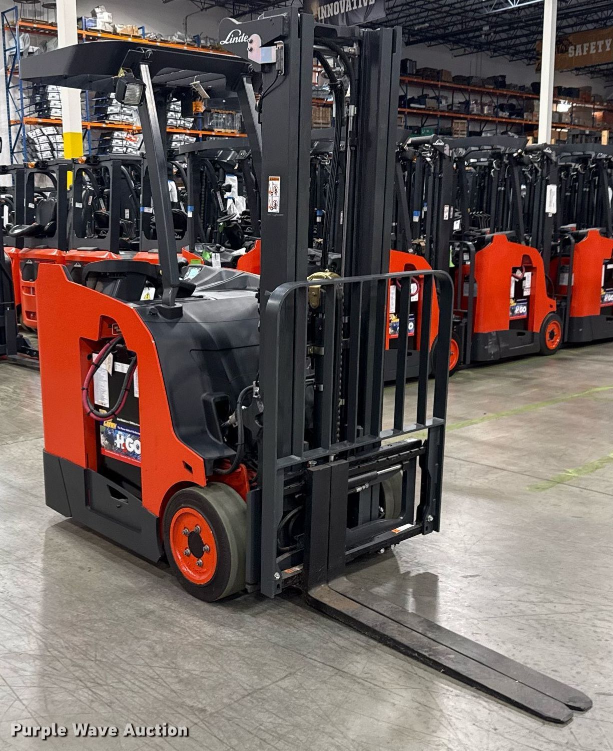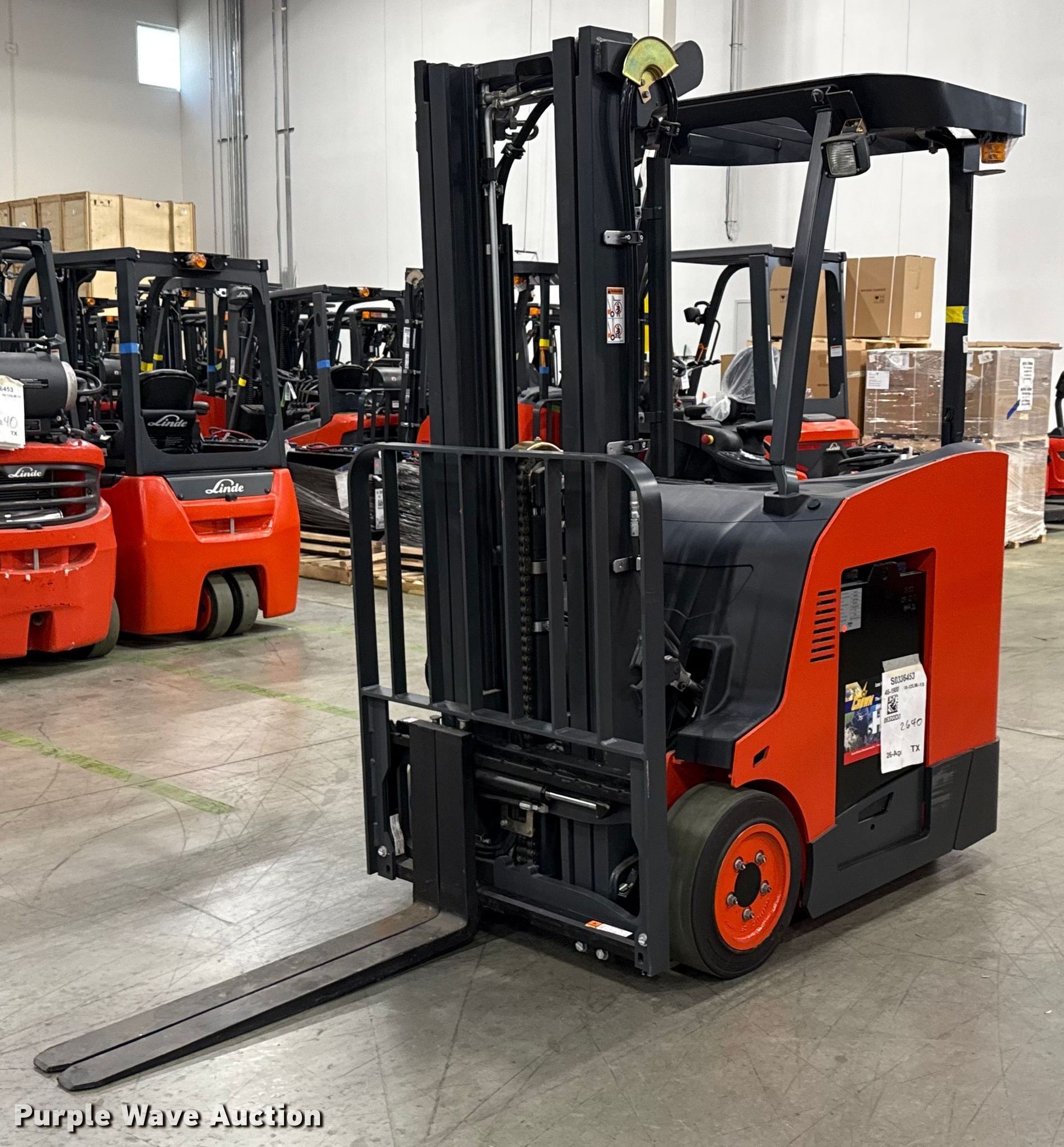 Purple Wave is selling a used Warehouse Forklift in Texas. This item is a 2023 Linde E18S forklift with the following: Hours: 7 on meter, Serial: A11346M00187