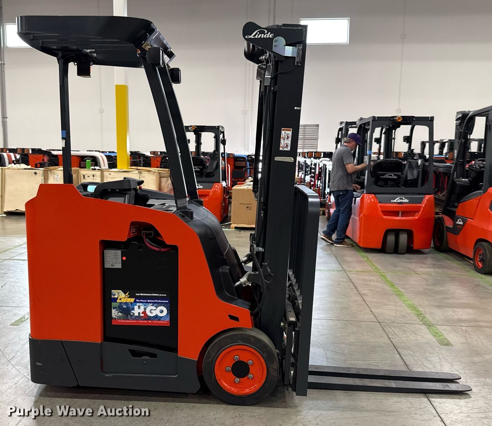 Purple Wave is selling a used Warehouse Forklift in Texas. This item is a 2023 Linde E18S forklift with the following: Hours: 3 on meter, Serial: A11346M00179