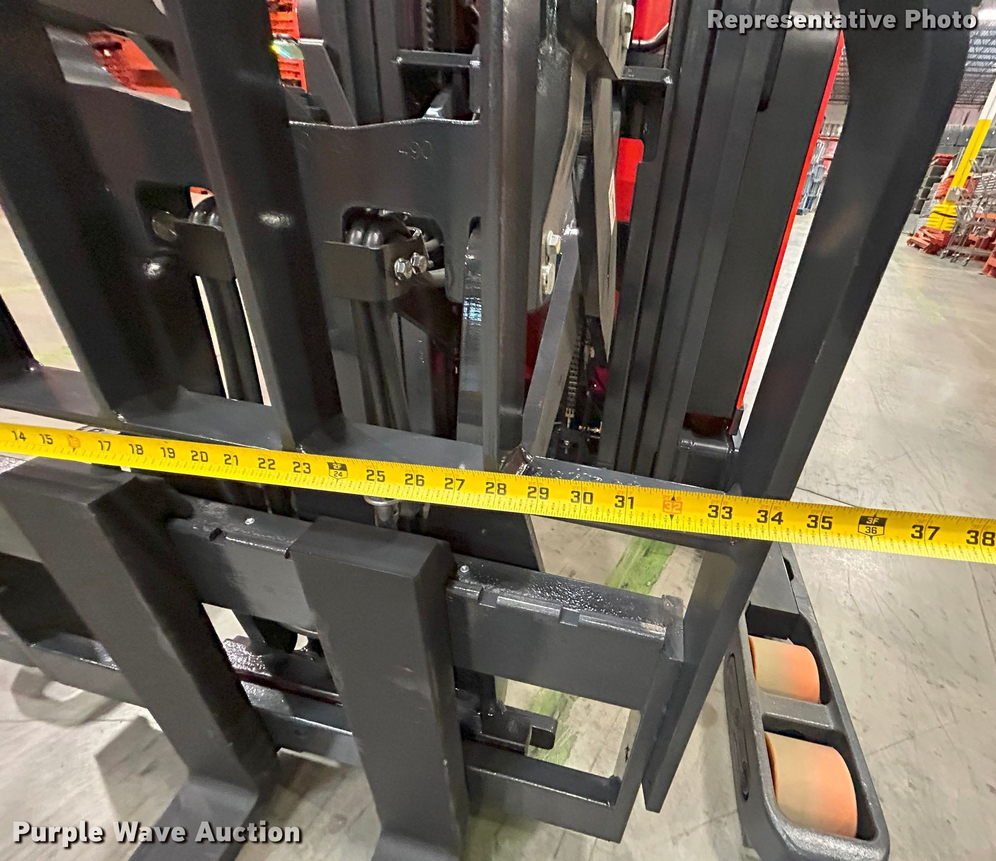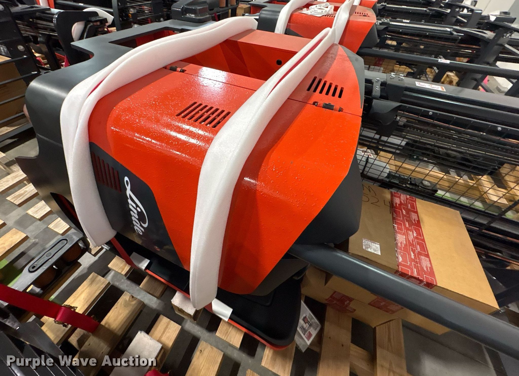 2023 Linde R17SX reach truck. Serial: C25195M00524. Electric Motor Volts: 36, Charger: Tricom Opps Phase: Three, Amps: 200, Battery: Crown 18-125LM-13 Serial: 06435A4, Amp hour: 750. Transmission Electric drive. Operators station OROPS. Features Maximum lift capacity: 3,500 lbs, Maximum lift height: 270", Collapsed mast height: 119", Mast stages: 3, Side shift, Mast tilt, Fork length: 42". Tires Solid, Non-marking. Notes Unused, 3 year or 6,000 hour warranty valid after predelivery inspection by licensed Linde dealer is complete. Fees apply. Representative photos. Prologis - Linde Warranty Available. Lewisville, TX 75067