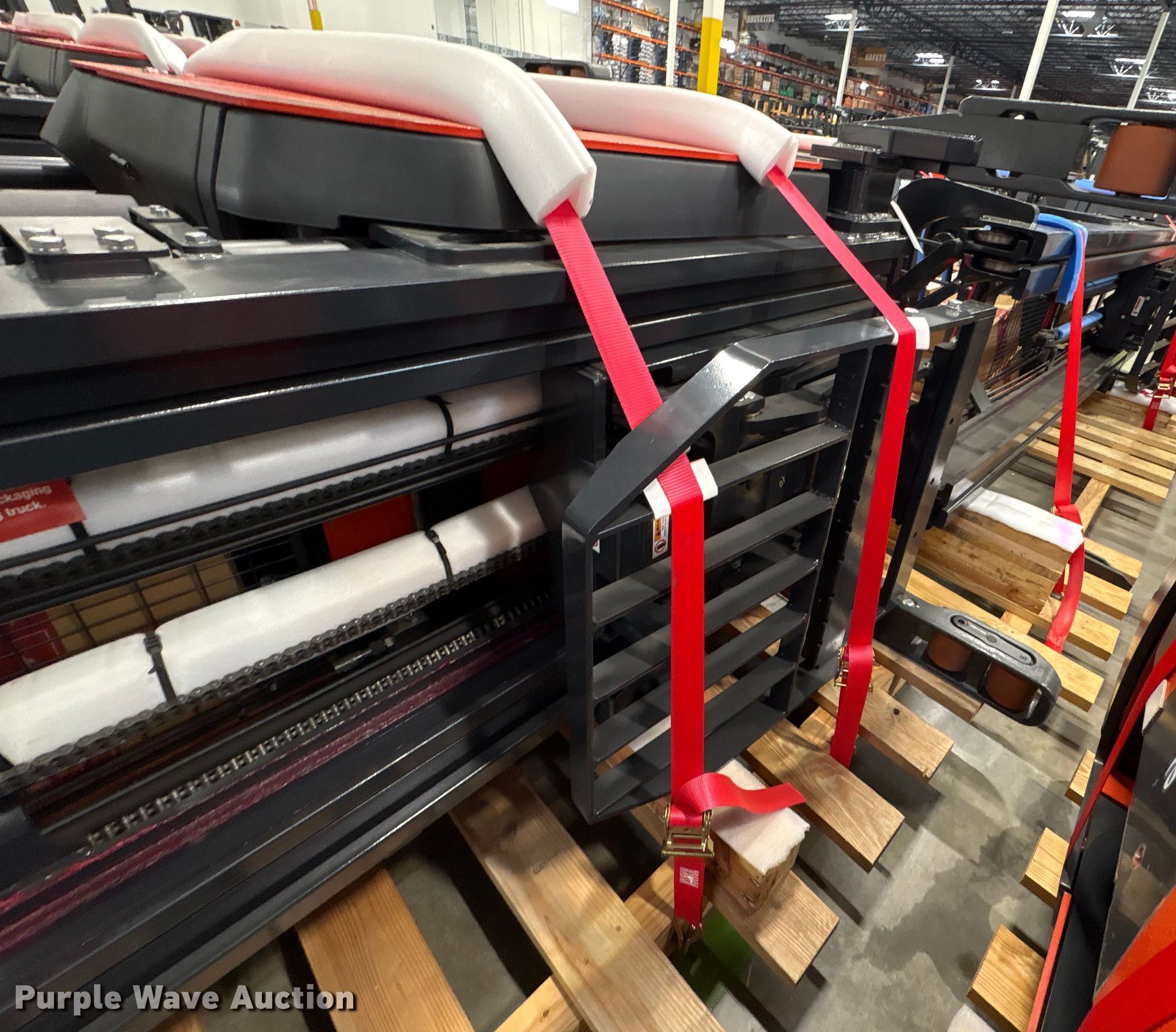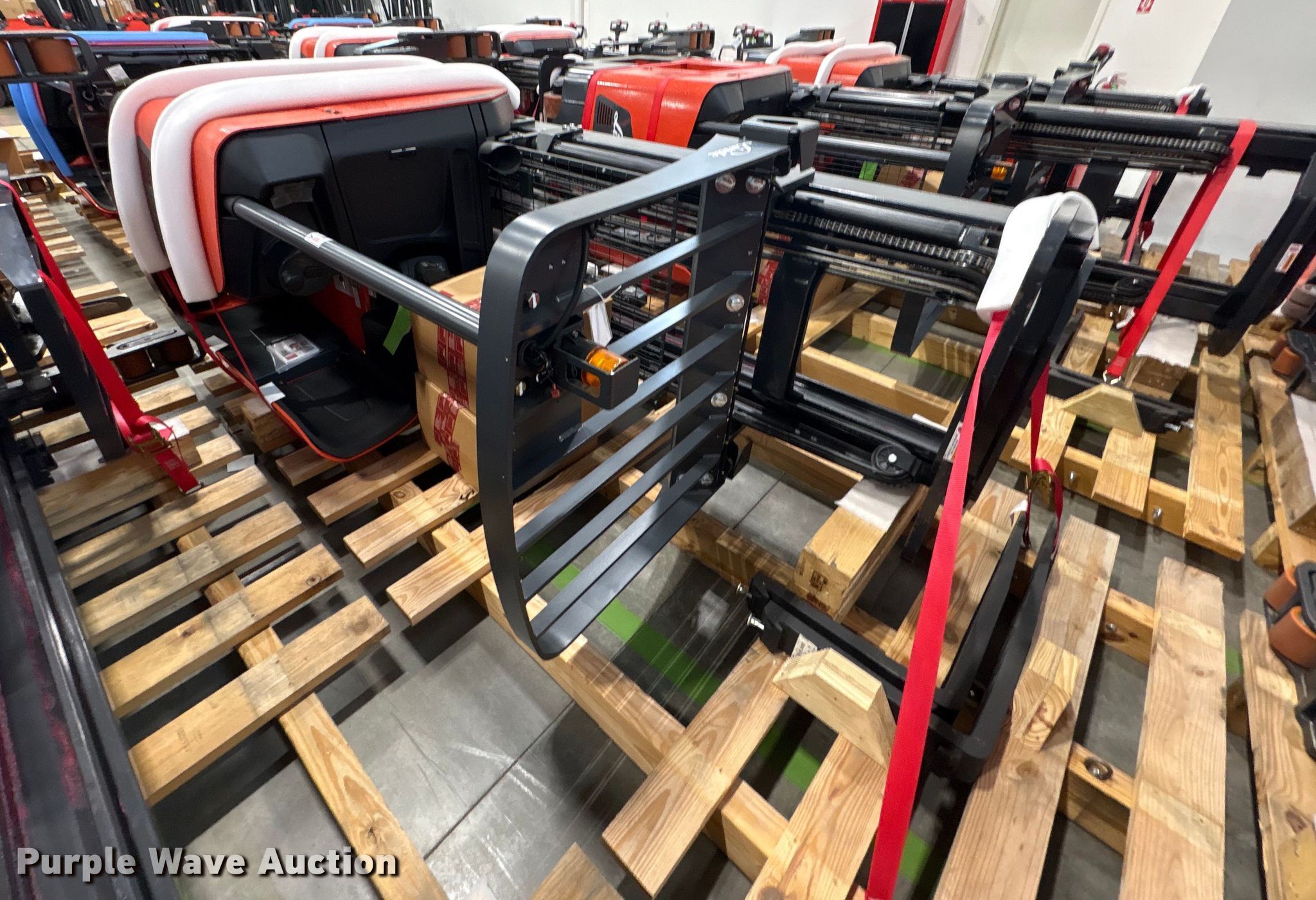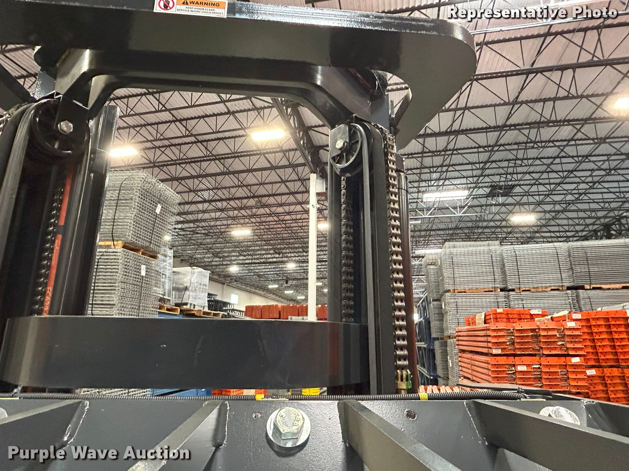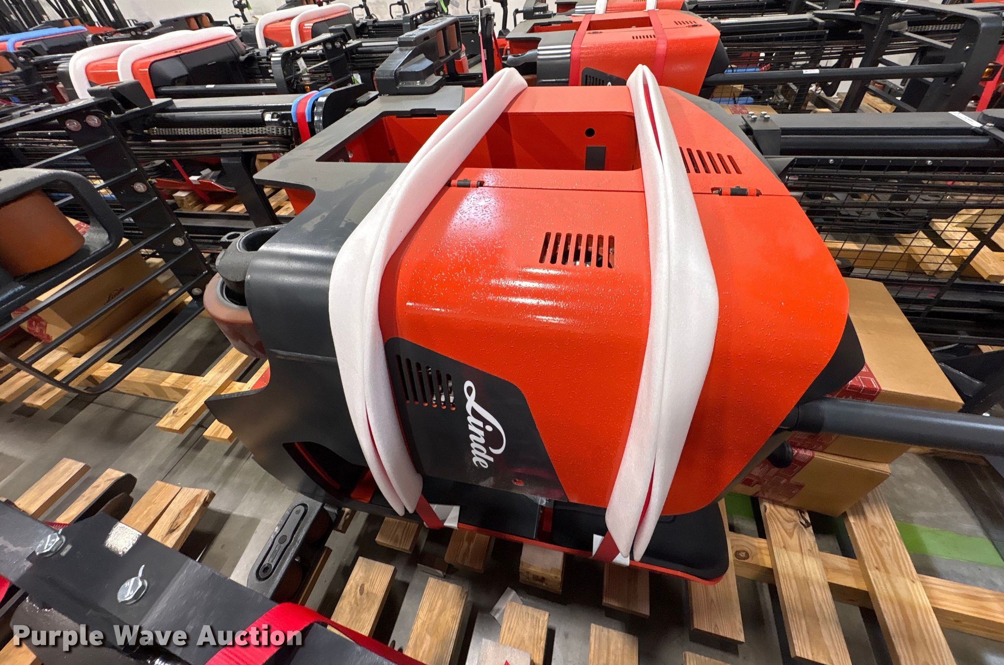 2023 Linde R17SX reach truck. Serial: C25195M00521. Electric Motor Volts: 36, Charger: Tricom Opps Phase: Three, Amps: 200, Battery: Crown 18-125LM-13 Serial: 06697E4, Amp hour: 750. Transmission Electric drive. Operators station OROPS. Features Maximum lift capacity: 3,500 lbs, Maximum lift height: 270", Collapsed mast height: 119", Mast stages: 3, Side shift, Mast tilt, Fork length: 42". Tires Solid, Non-marking. Notes Unused, 3 year or 6,000 hour warranty valid after predelivery inspection by licensed Linde dealer is complete. Fees apply. Representative photos. Prologis - Linde Warranty Available. Lewisville, TX 75067
