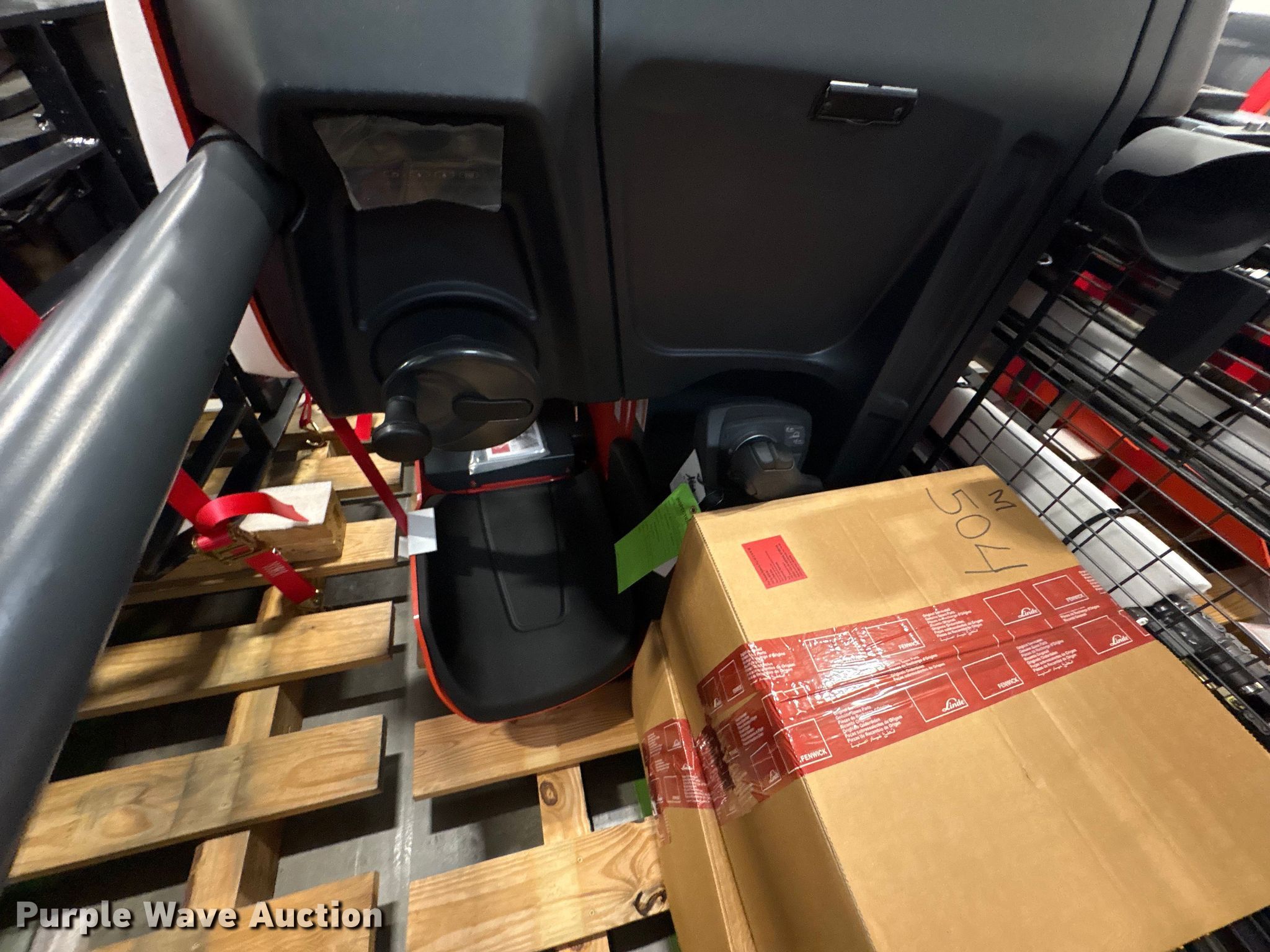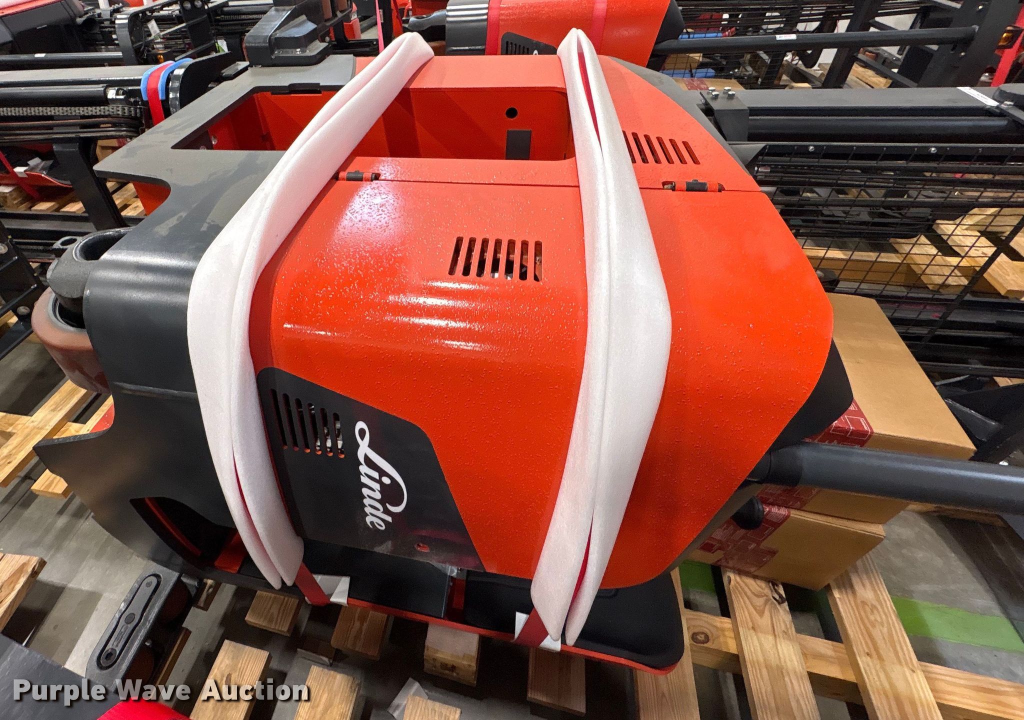 2023 Linde R17SX reach truck. Serial: C25195M00525. Electric Motor Volts: 36, Charger: Tricom Opps Phase: Three, Amps: 200, Battery: Crown 18-125LM-13 Serial: 06692E4, Amp hour: 750. Transmission Electric drive. Features Maximum lift capacity: 3,500 lbs, Maximum lift height: 270", Collapsed mast height: 119", Mast stages: 3, Side shift, Mast tilt. Tires Solid, Non-marking. Notes Unused, 3 year or 6,000 hour warranty valid after predelivery inspection by licensed Linde dealer is complete. Fees apply. Representative photos. Prologis - Linde Warranty Available. Lewisville, TX 75067