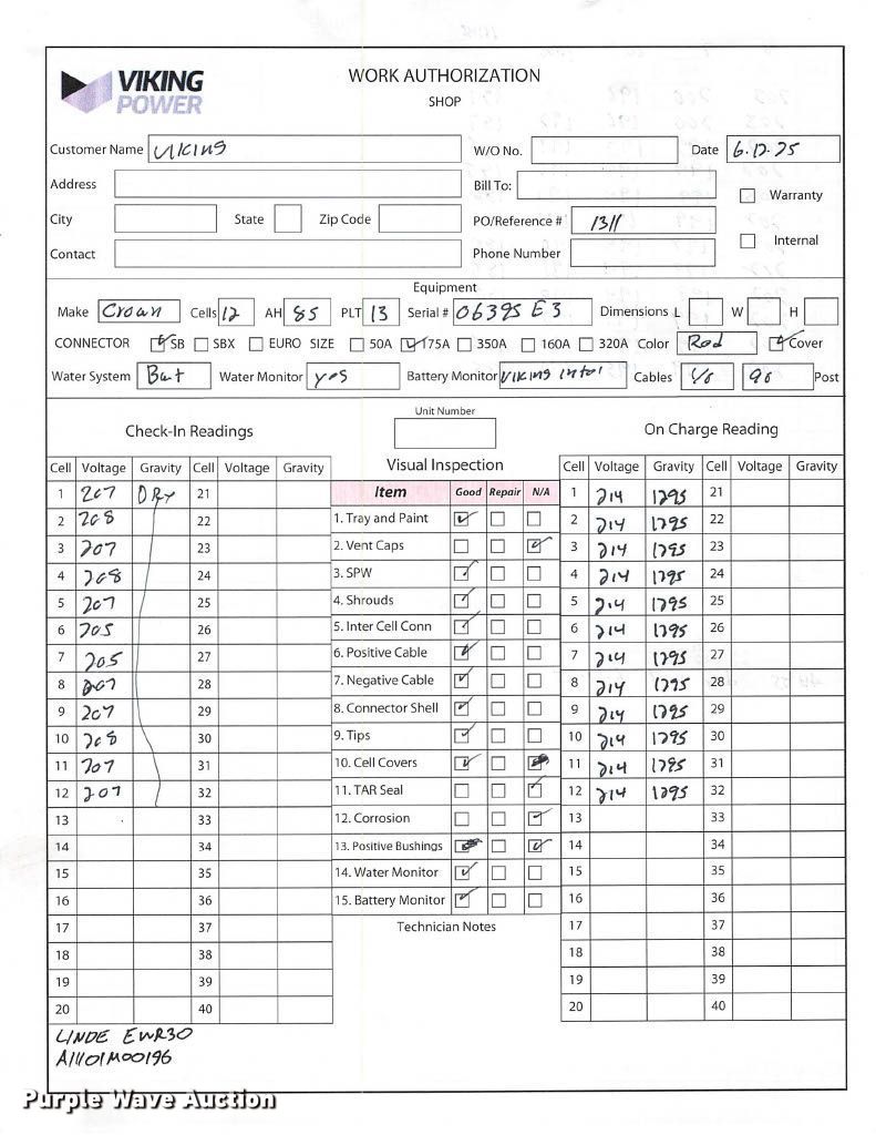 2023 Linde EWR30 pallet jack. Hours: 1 on meter, Serial: A11101M00196. Electric Motor Volts: 24, Charger: Viking Ferro Three phase, Battery: Viking 510AH, Water kit. Transmission Electric drive. Features Maximum lift capacity: 6,000 lbs, Fork length: 48". Tires Solid. Notes 2 year or 4,000 hour warranty valid after predelivery inspection by licensed Linde dealer is complete. Fees apply. Prologis - Linde Warranty Available. Lewisville, TX 75067