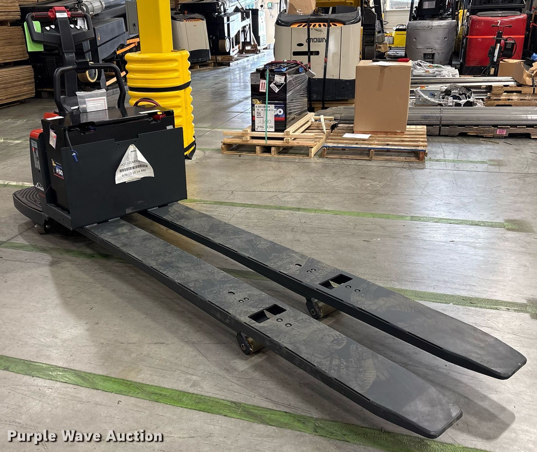 This 2023 Linde EWR40 pallet jack will sell to the highest bidder regardless of price.