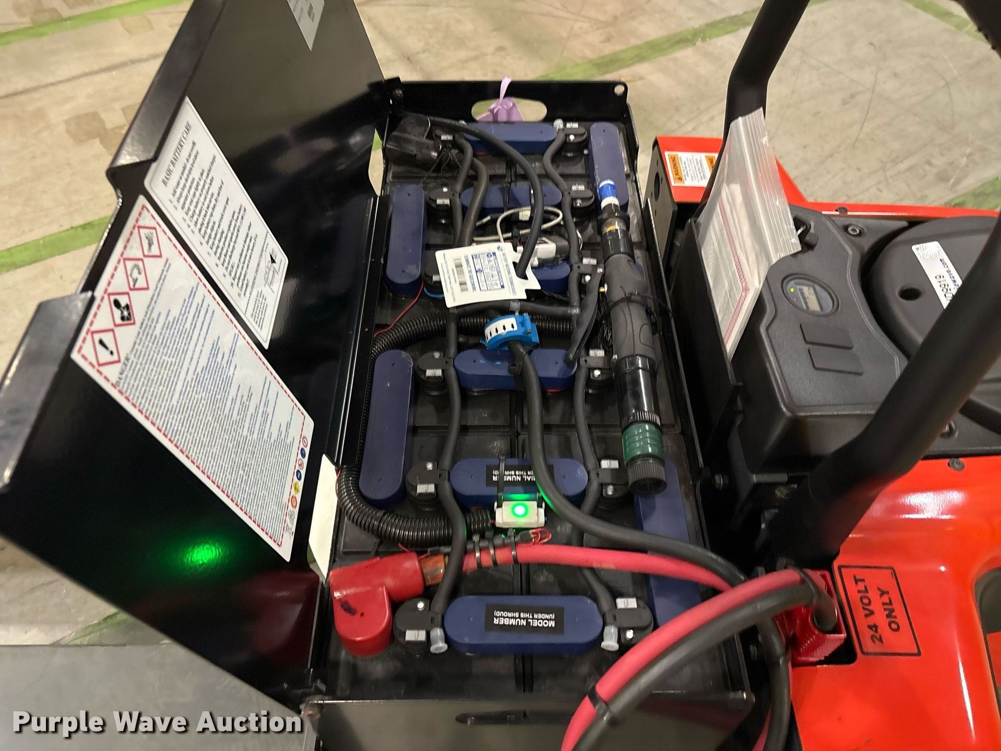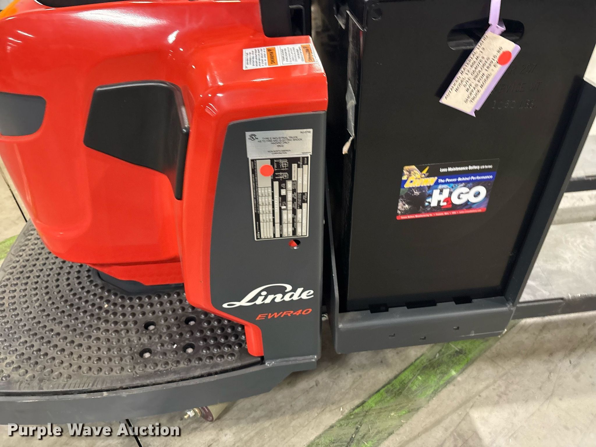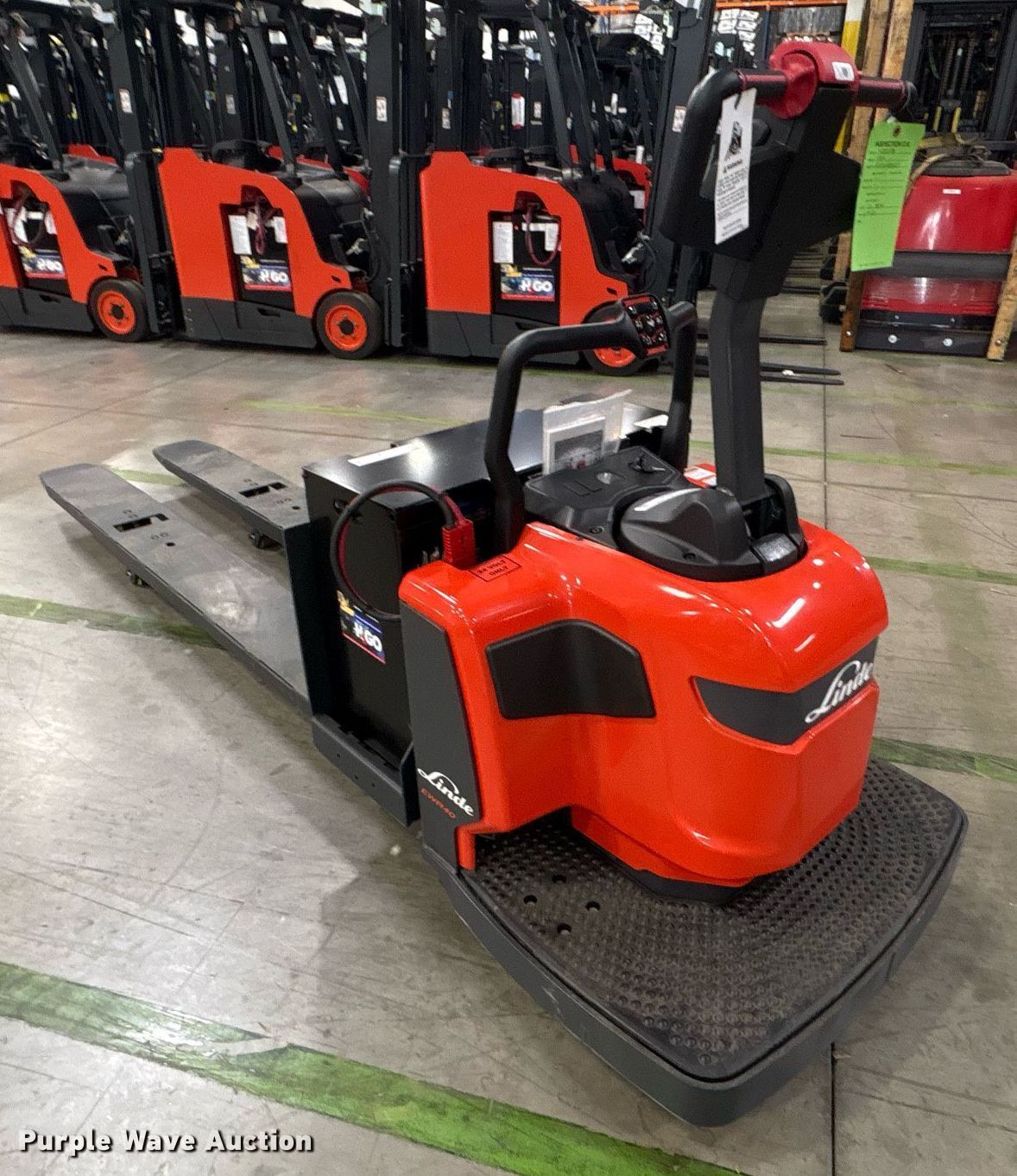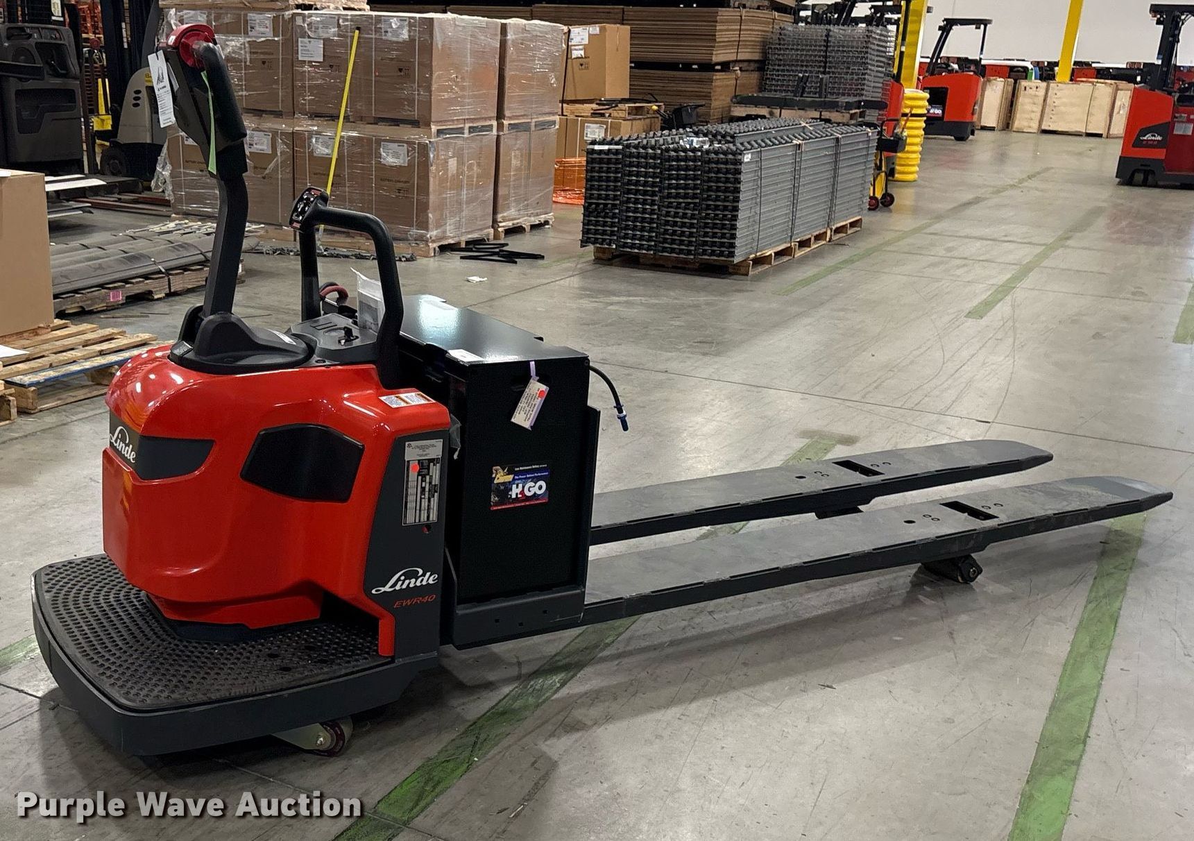 Purple Wave is selling a used Warehouse Forklift in Texas. This item is a 2023 Linde EWR40 pallet jack with the following: Hours: 1 on meter, Serial: A11101M00219