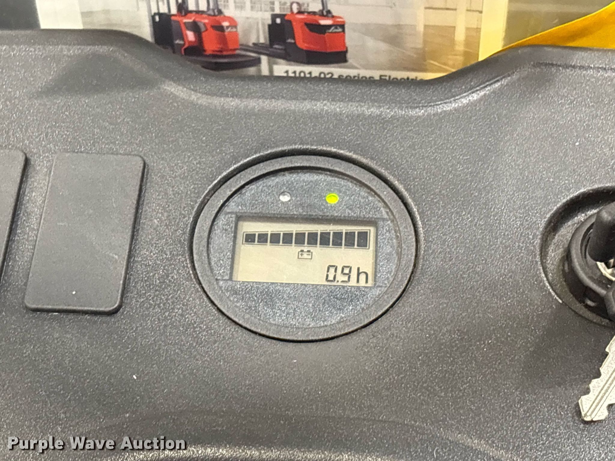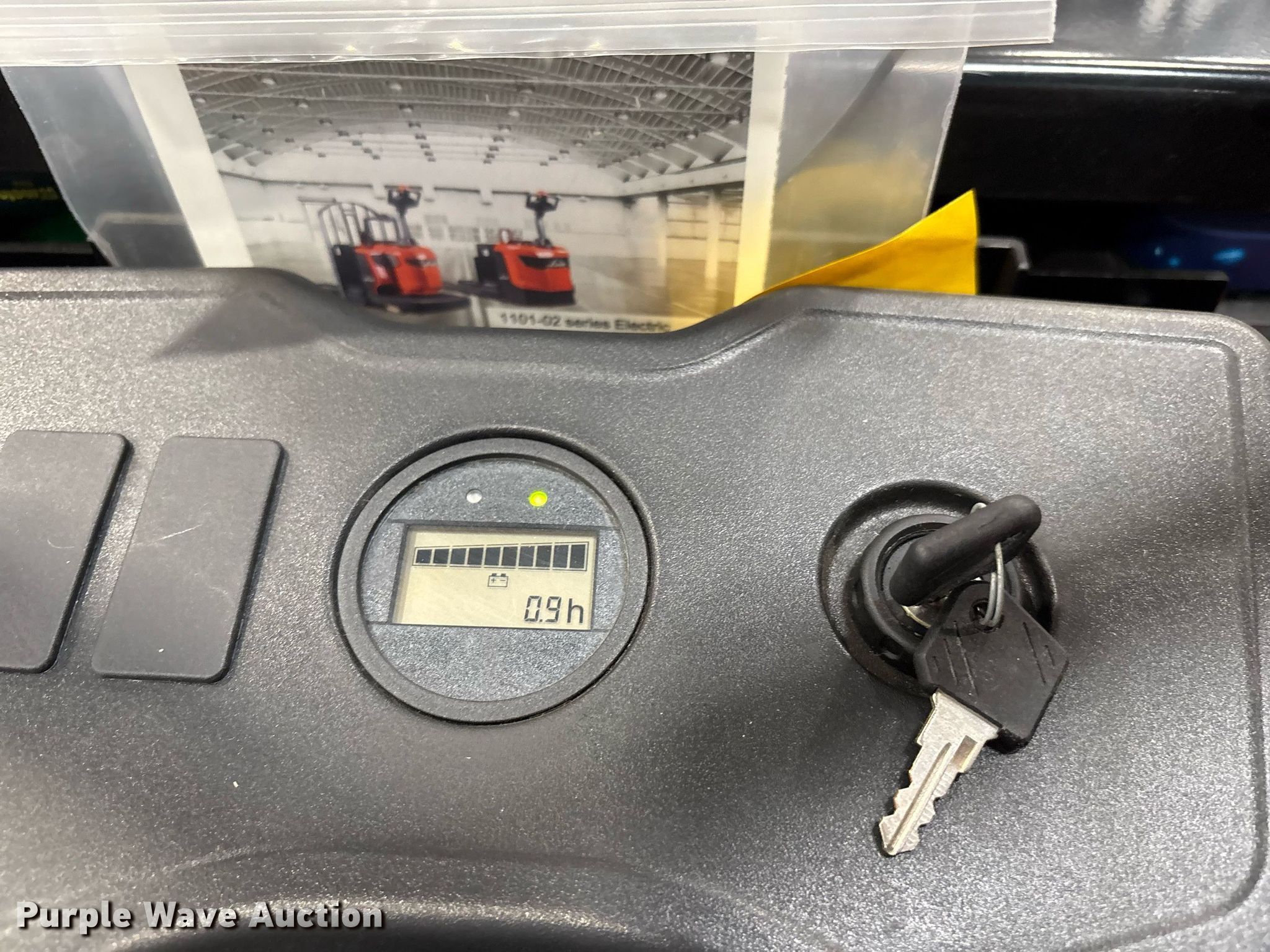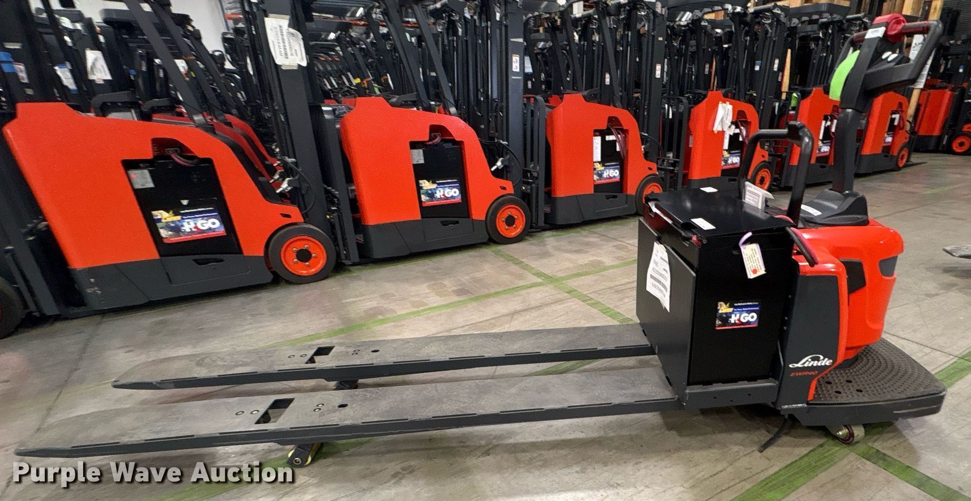 Purple Wave is selling a used Warehouse Forklift in Texas. This item is a 2023 Linde EWR40 pallet jack with the following: Hours: 1 on meter, Serial: A11101M00215