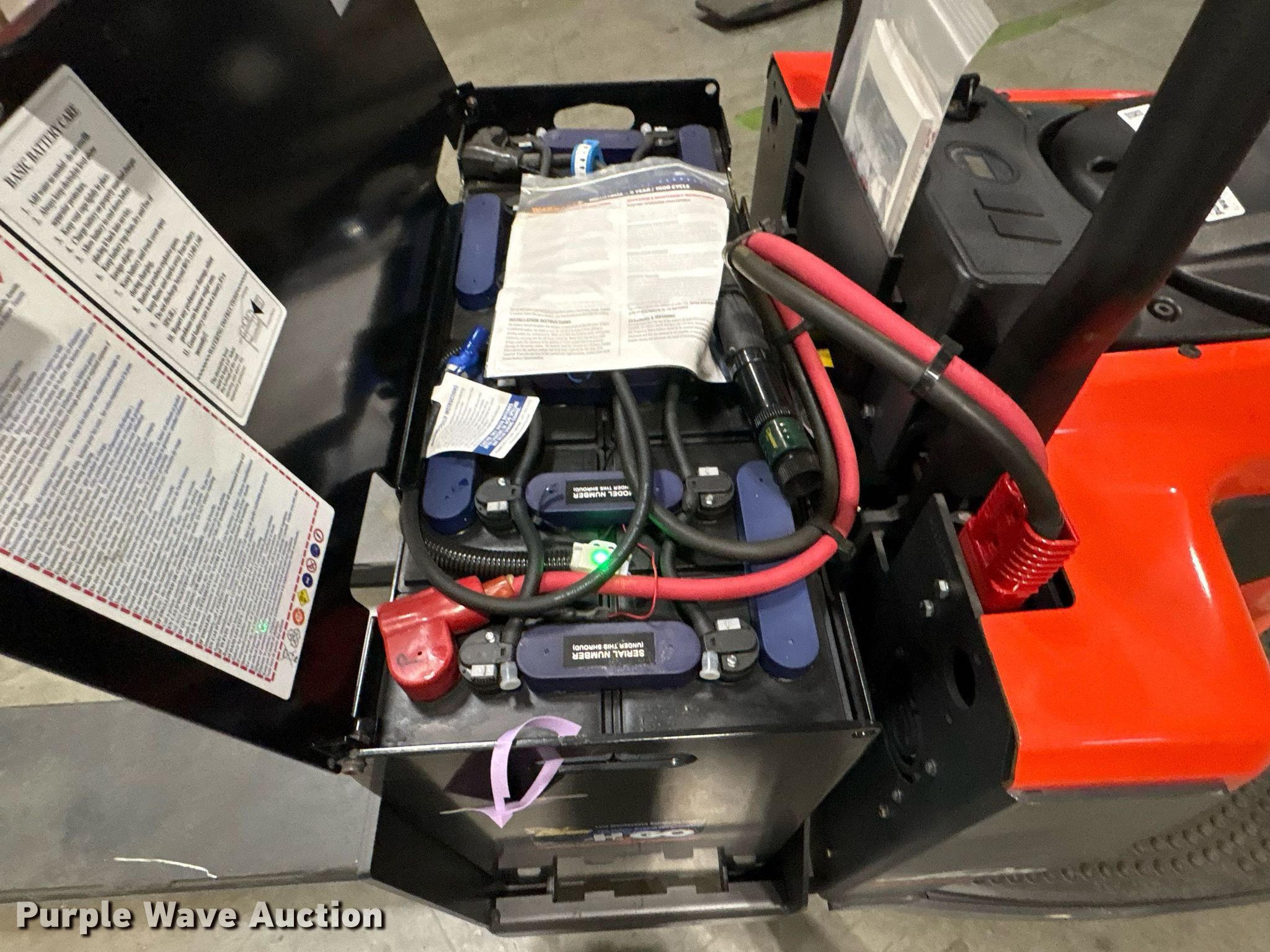 Purple Wave is selling a used Warehouse Forklift in Texas. This item is a 2023 Linde EWR40 pallet jack with the following: Hours: 1 on meter, Serial: A11101M00210