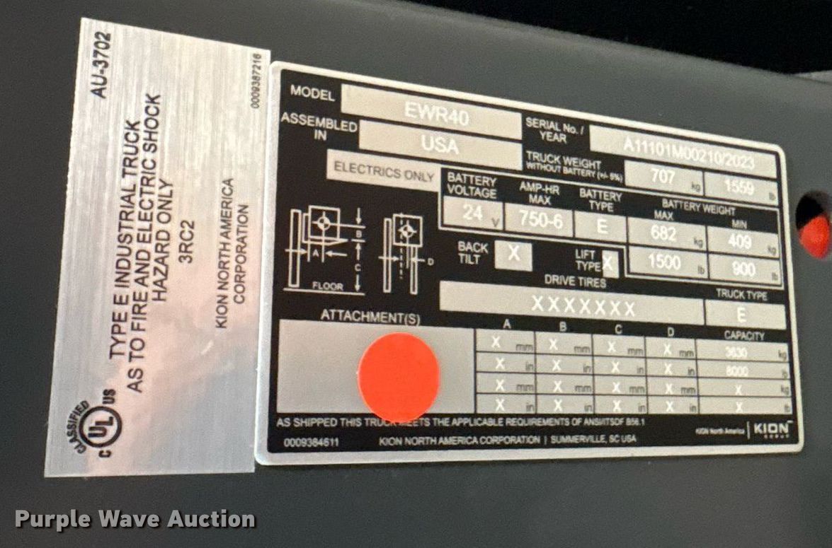 This 2023 Linde EWR40 pallet jack will sell to the highest bidder regardless of price.