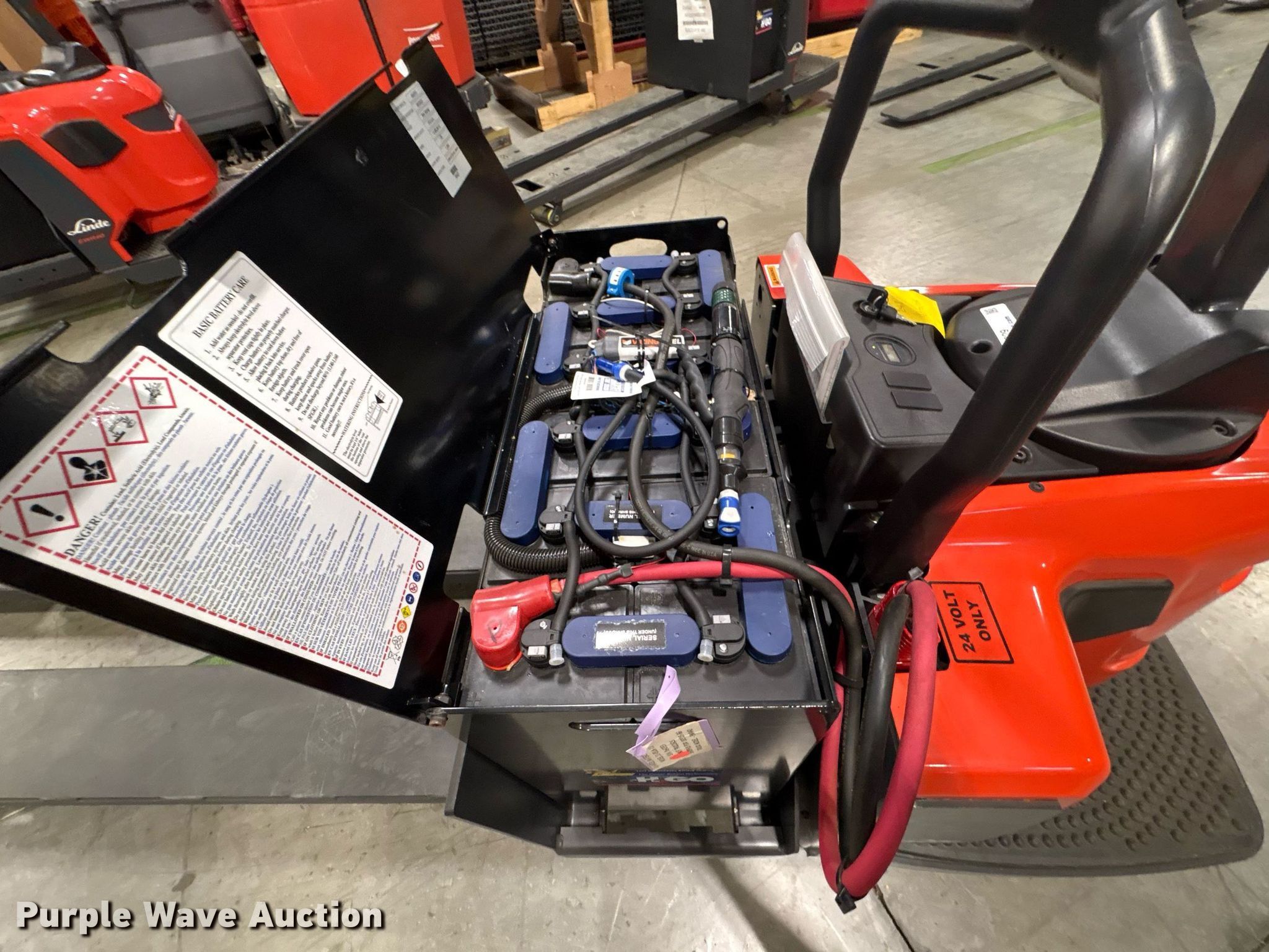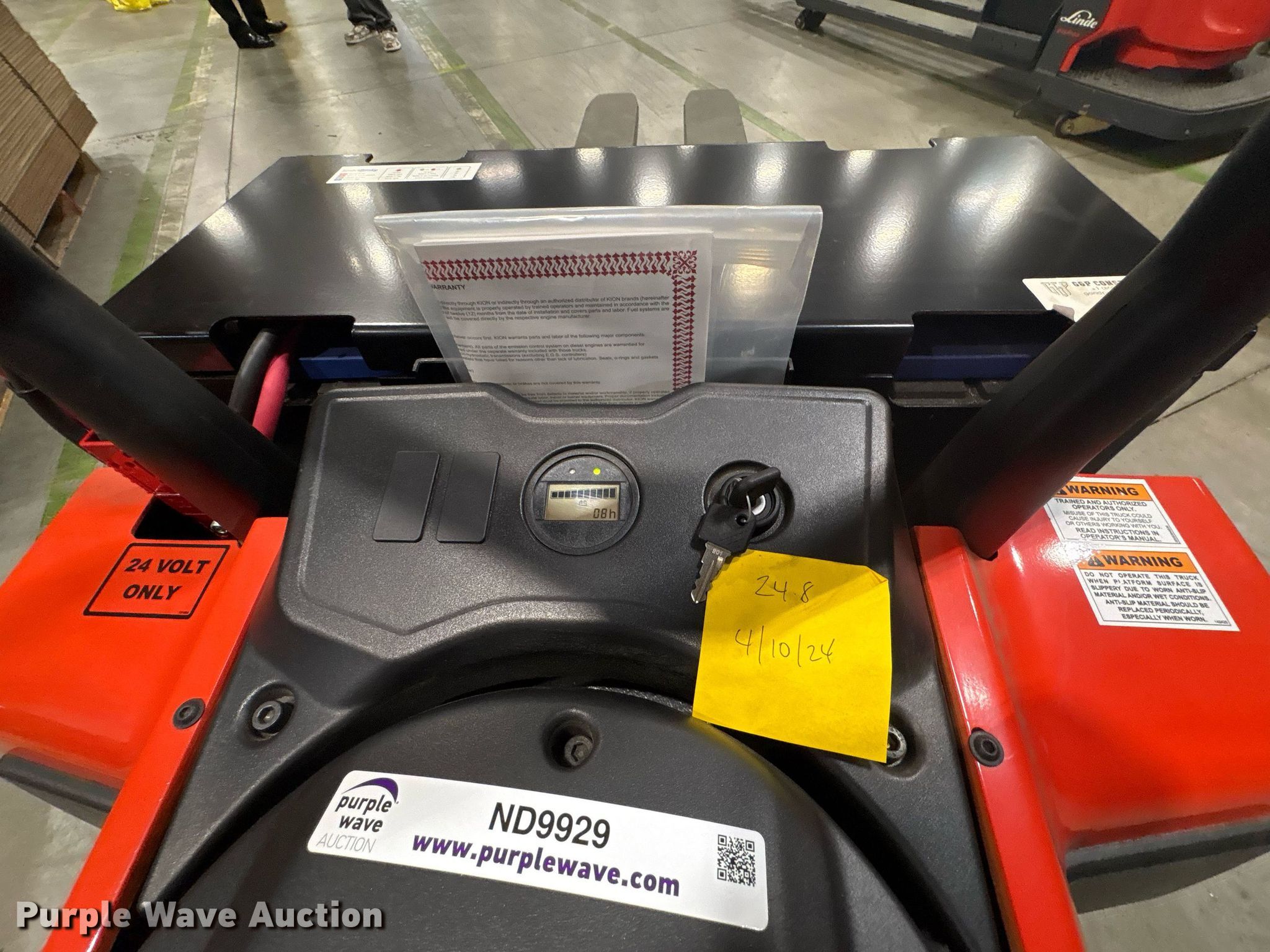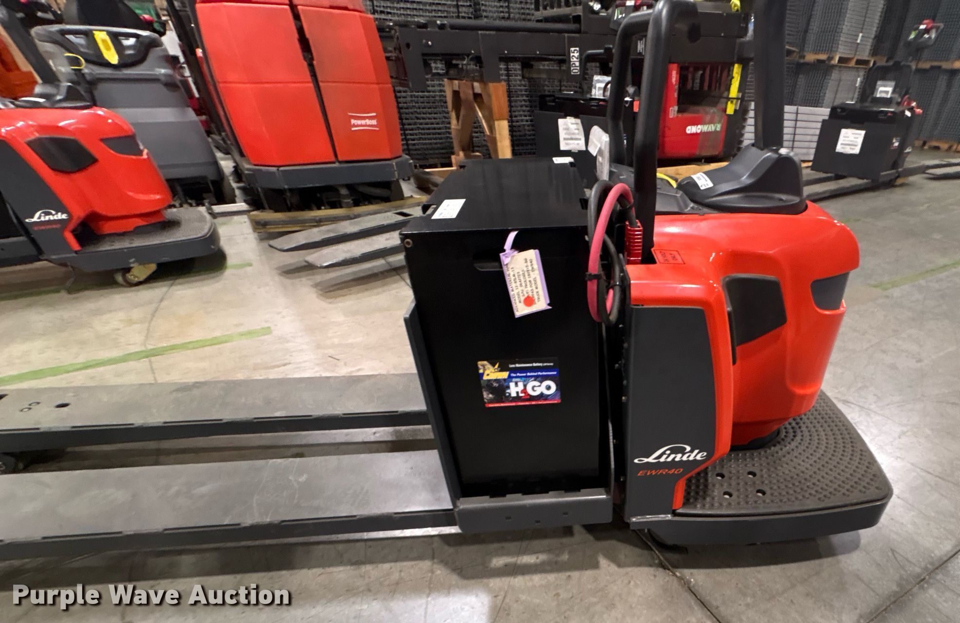 Purple Wave is selling a used Warehouse Forklift in Texas. This item is a 2023 Linde EWR40 pallet jack with the following: Hours: 1 on meter, Serial: A11101M00214