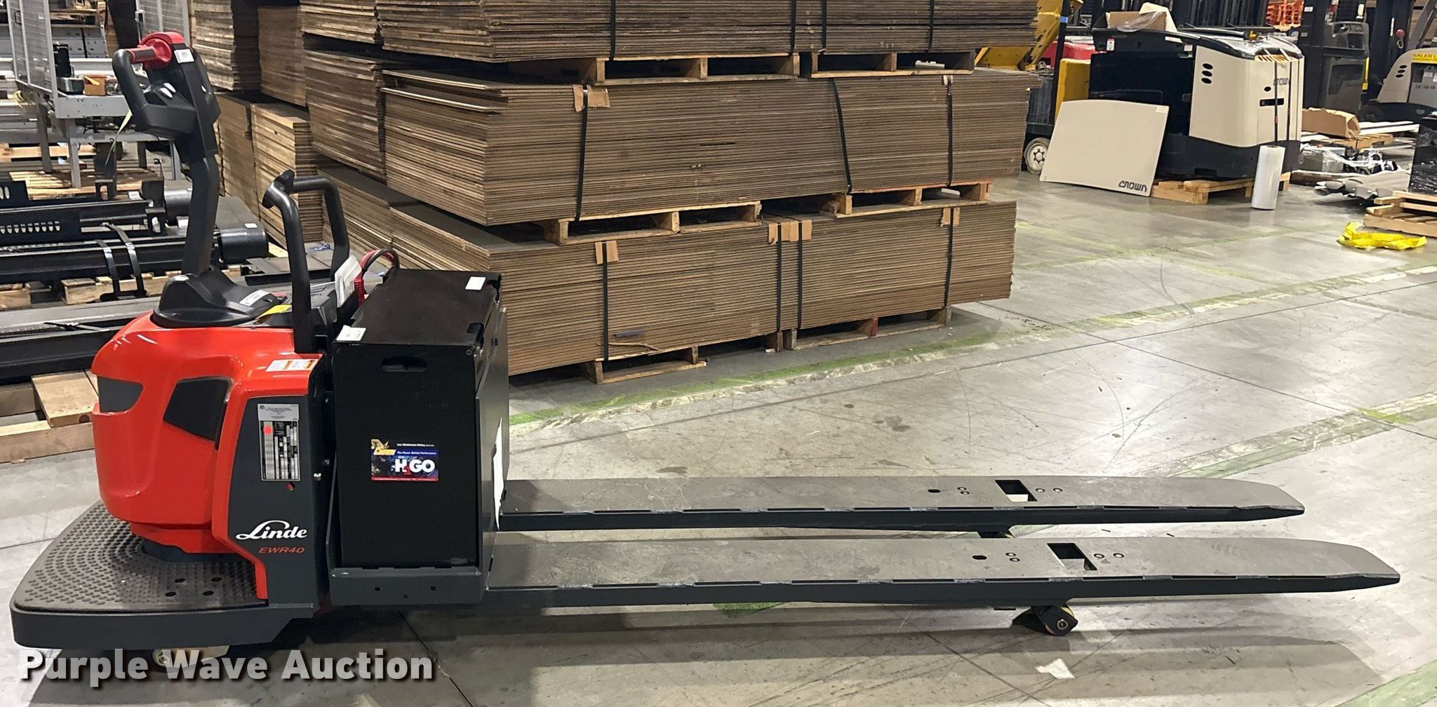 This 2023 Linde EWR40 pallet jack will sell to the highest bidder regardless of price.