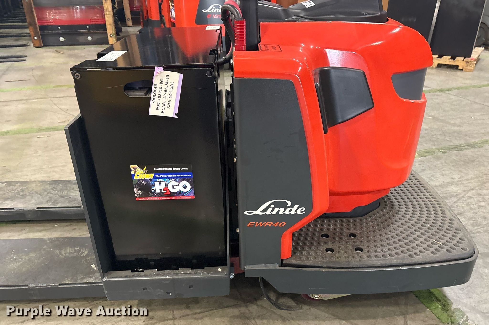 Purple Wave is selling a used Warehouse Forklift in Texas. This item is a 2023 Linde EWR40 pallet jack with the following: Hours: 1 on meter, Serial: A11101M00224