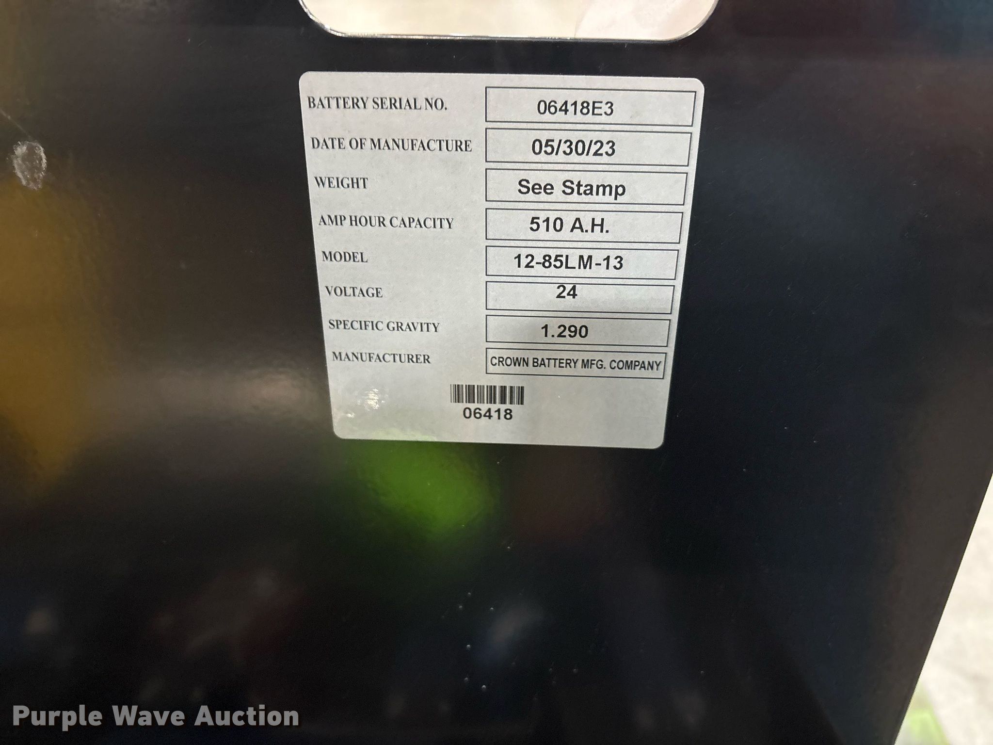 - Battery: Crown 12-85-LM-13