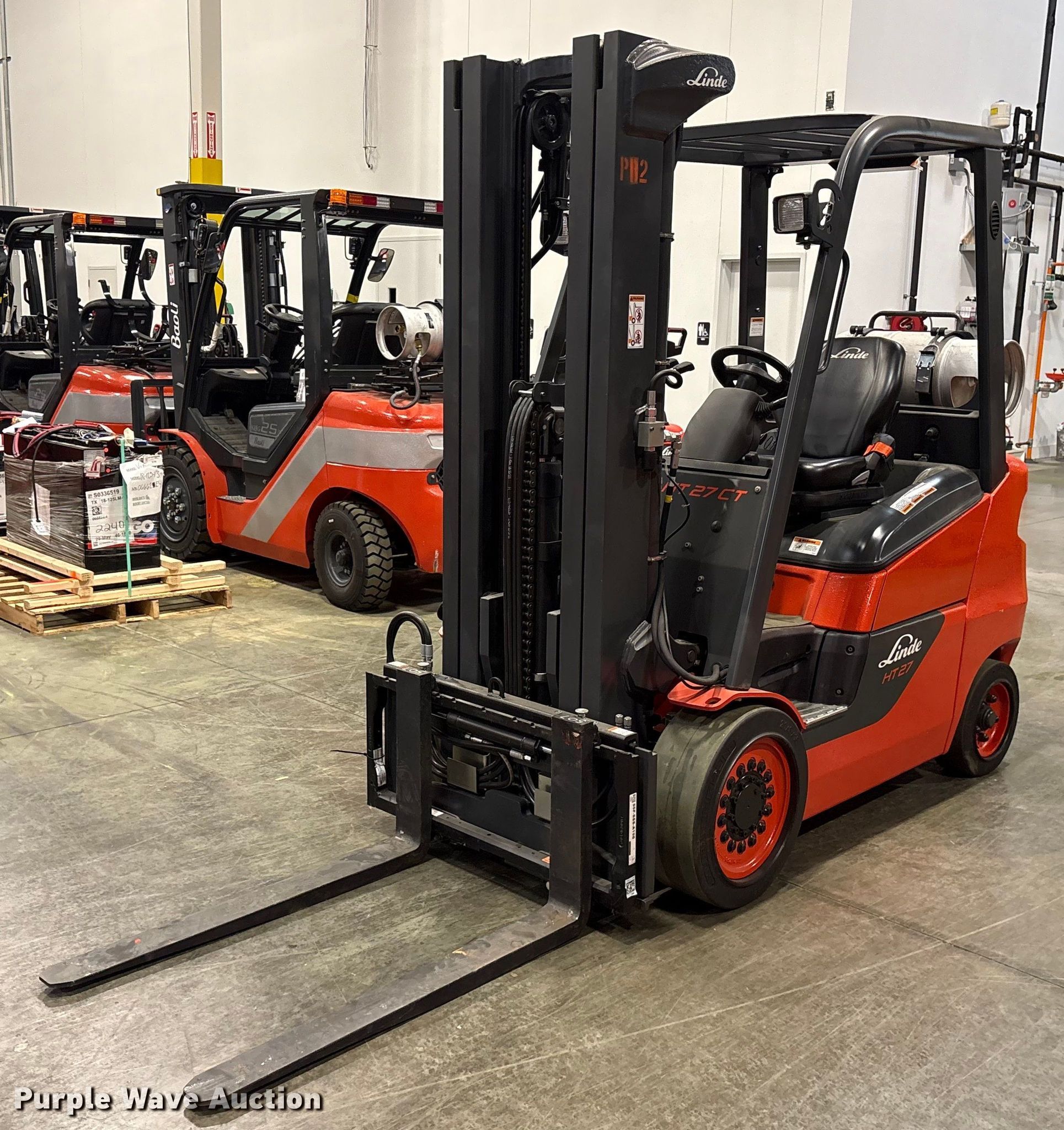 Purple Wave is selling a used Warehouse Forklift in Texas. This item is a 2023 Linde HT27CT forklift with the following: Hours: 3 on meter, Serial: A11319M00033