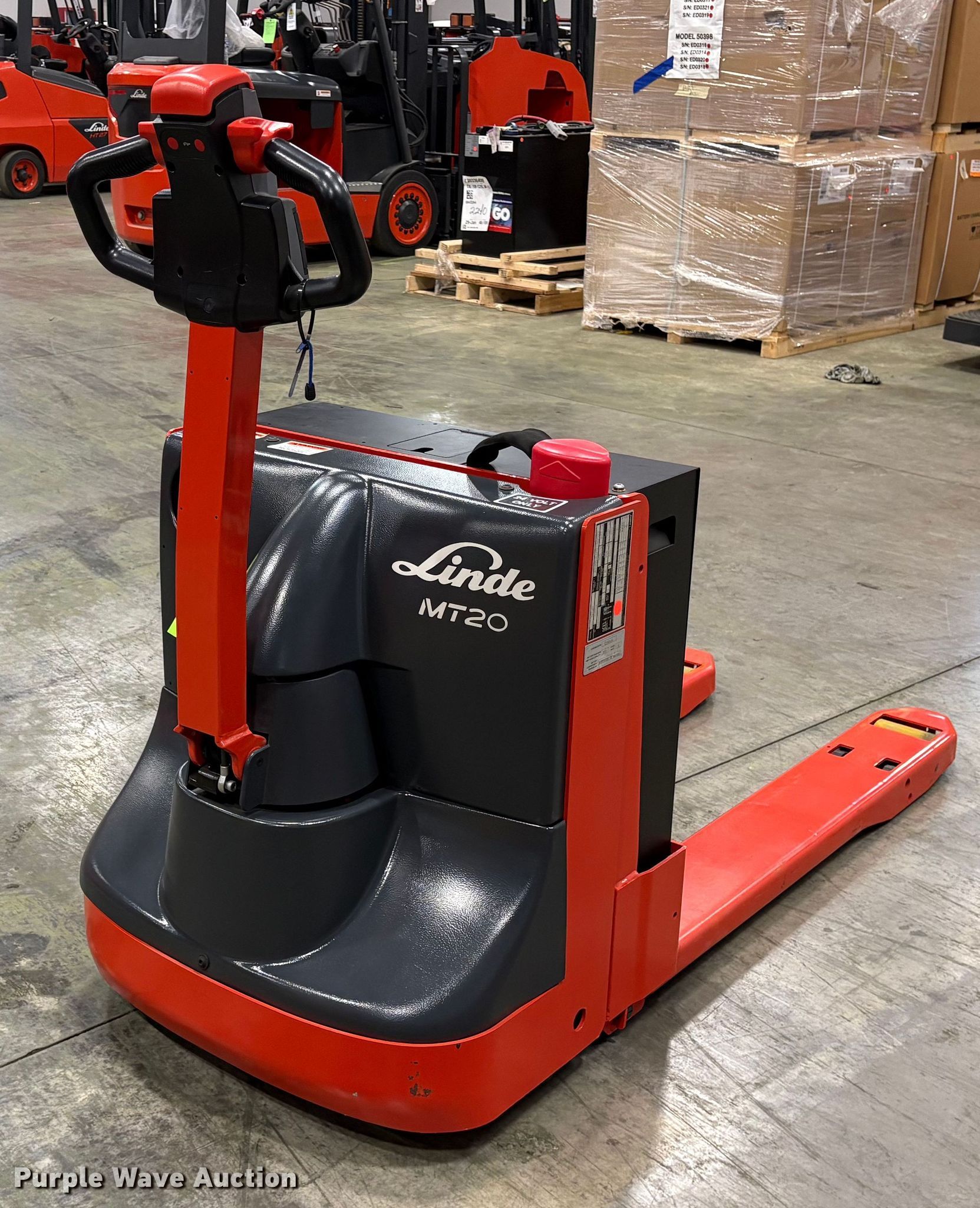Purple Wave is selling a used Warehouse Forklift in Texas. This item is a 2023 Linde MT20 pallet jack with the following: Serial: AT8903L00236