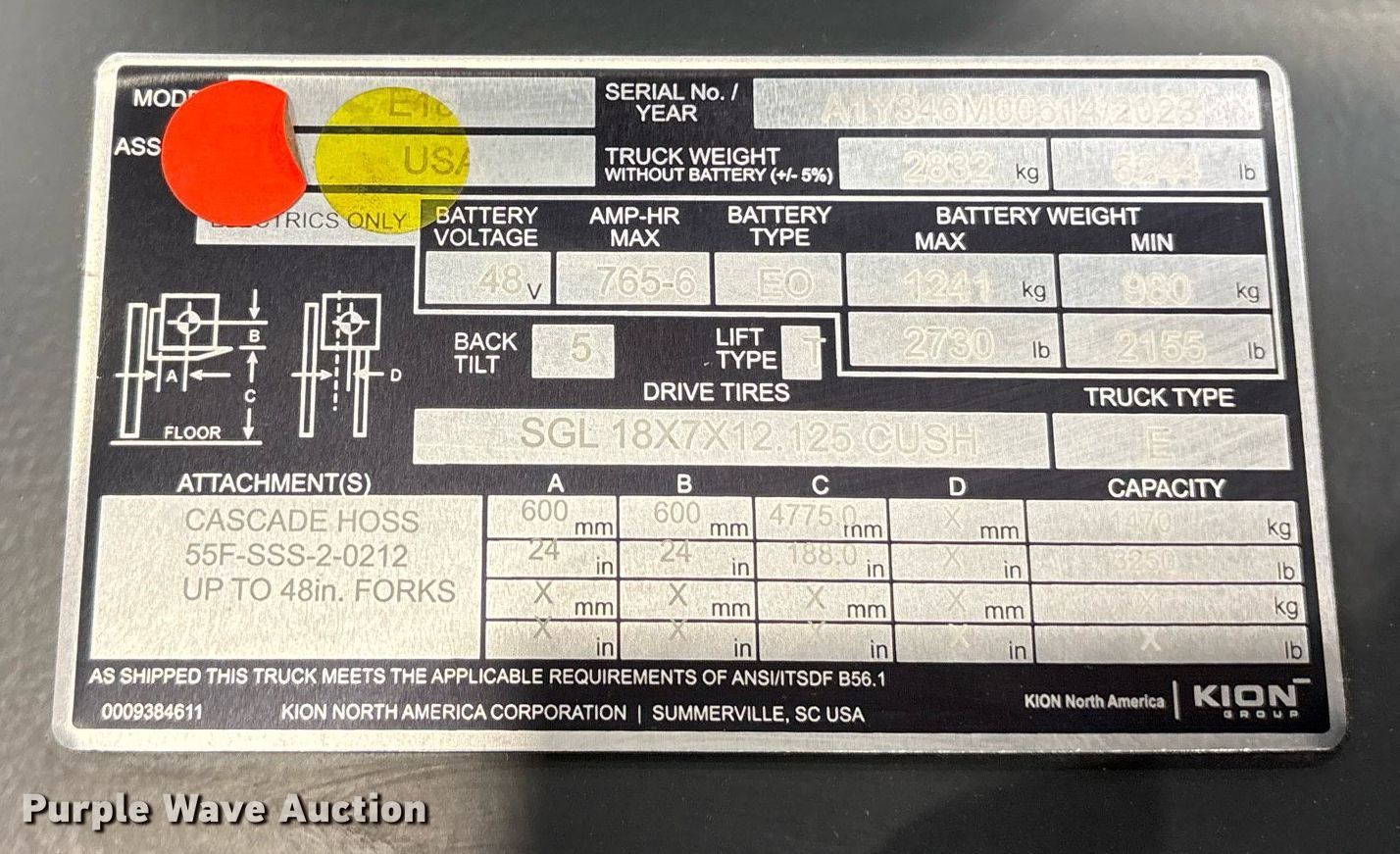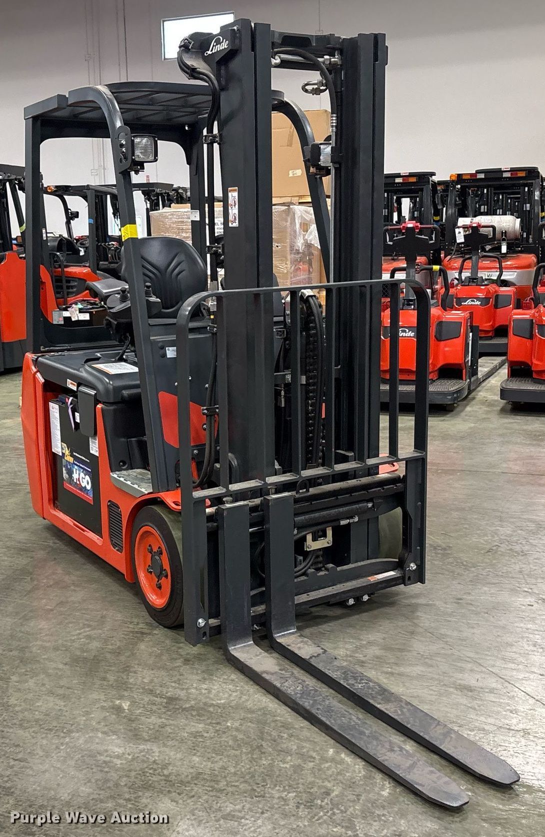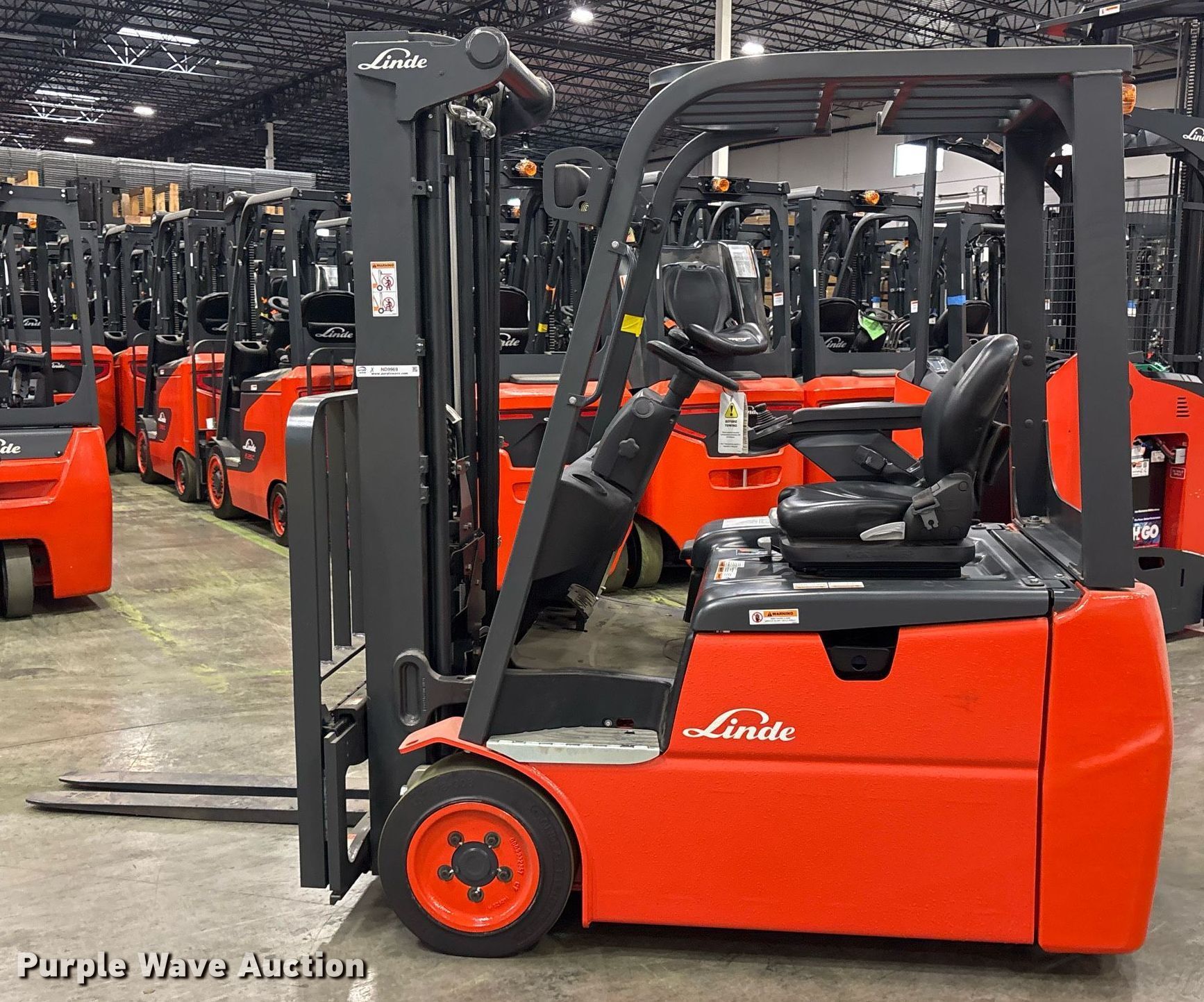Purple Wave is selling a used Warehouse Forklift in Texas. This item is a 2023 Linde E18 forklift with the following: Hours: 1 on meter, Serial: A1Y346M00614