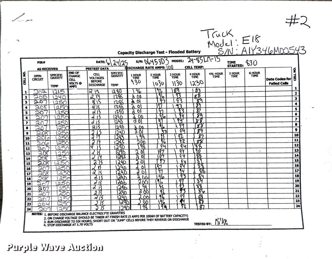2023 Linde E18 forklift. Hours: 4 on meter, Serial: A1Y346M00543. Electric Motor Volts: 48, Phase: Three, Charger: Viking Ferro Phase: Three, Battery: Viking Intel Amp hour: 595. Transmission Electric drive. Operators station OROPS. Features Maximum lift capacity: 3,250 lbs, Maximum lift height: 188", Collapsed mast height: 84", Mast stages: 3, Side shift, Mast tilt, Fork length: 42". Tires Front: 18x7x12 1/8, Rear: 15x5x11 1/4, Solid. Notes 3 year or 6,000 hour warranty valid after predelivery inspection by licensed Linde dealer is complete Fees apply. Prologis - Linde Warranty Available. Lewisville, TX 75067