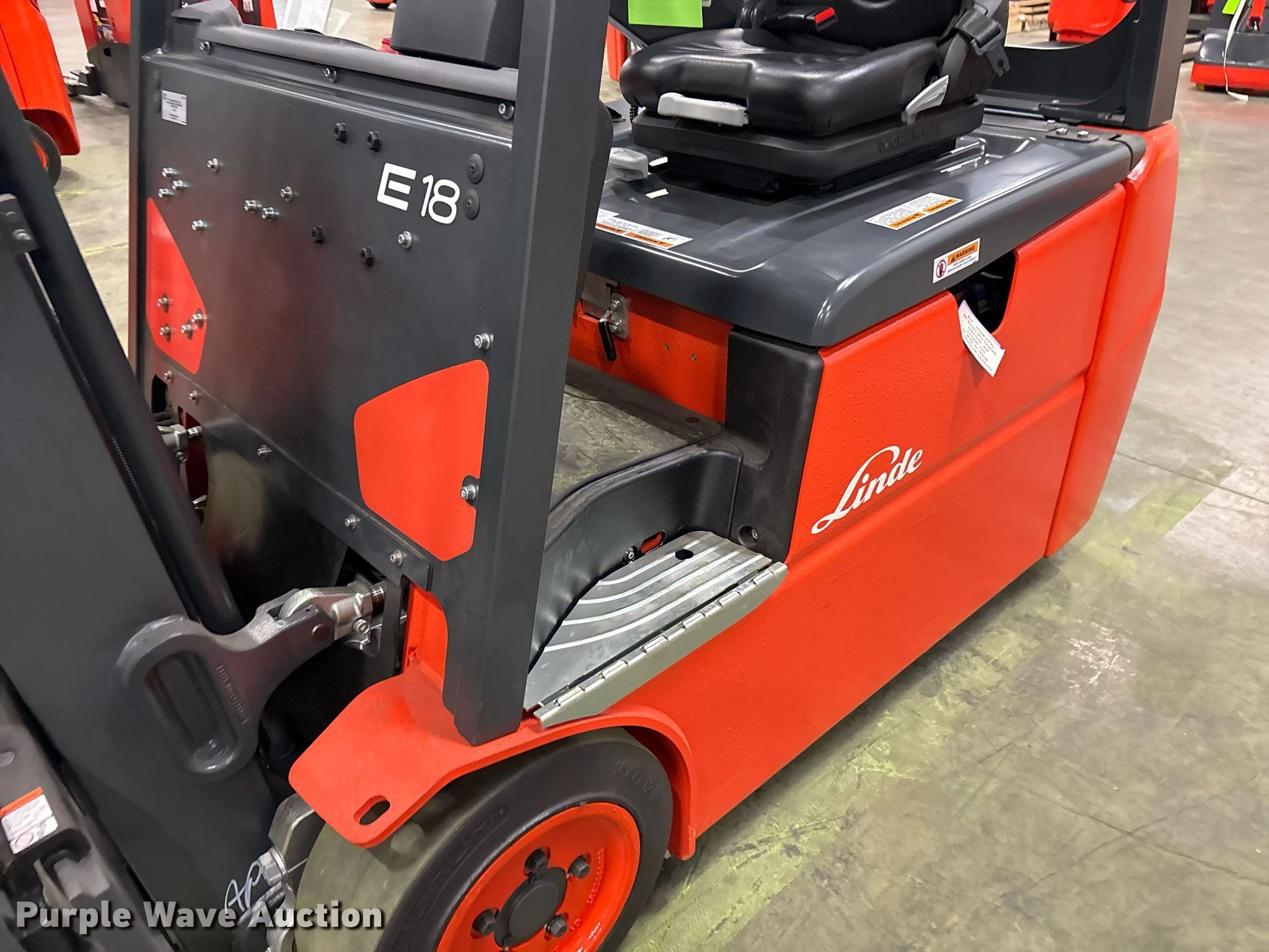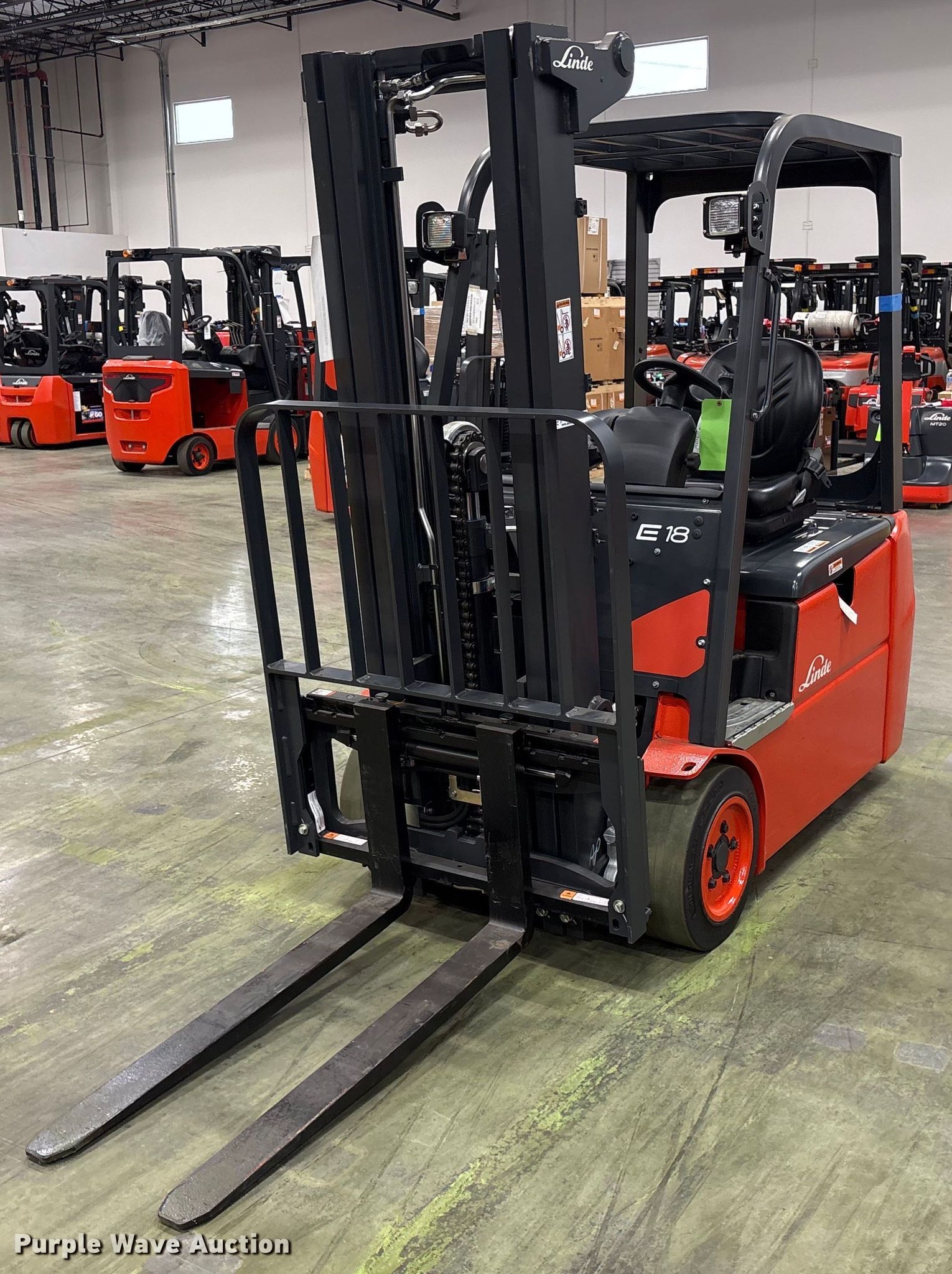 Purple Wave is selling a used Warehouse Forklift in Texas. This item is a 2023 Linde E18 forklift with the following: Hours: 1 on meter, Serial: A1Y346M00528