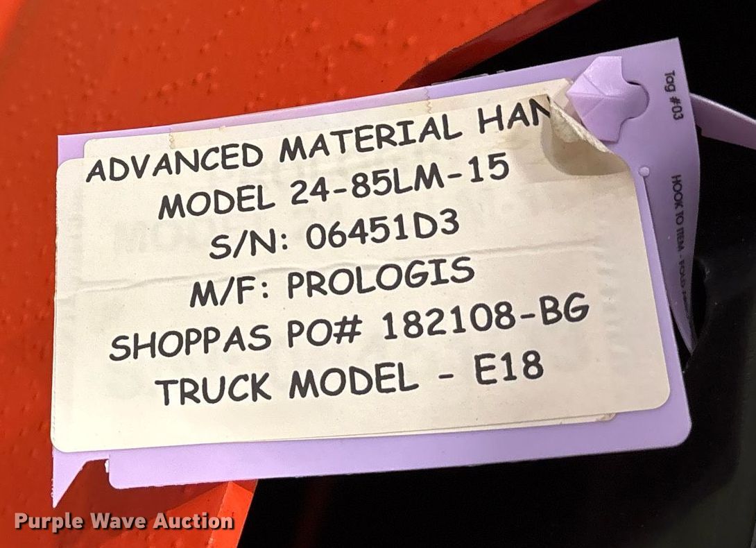 2023 Linde E18 forklift. Hours: 1 on meter, Serial: A1Y346M00528. Electric Motor Volts: 48, Phase: Three, Charger: Viking Ferro Phase: Three, Battery: Viking Intel Amp hour: 595. Transmission Electric drive. Operators station OROPS. Features Maximum lift capacity: 3,250 lbs, Maximum lift height: 188", Collapsed mast height: 84", Mast stages: 3, Side shift, Mast tilt, Fork length: 42". Tires Front: 18x7x12 1/8, Rear: 15x5x11 1/4, Solid. Notes 3 year or 6,000 hour warranty valid after predelivery inspection by licensed Linde dealer is complete Fees apply. Prologis - Linde Warranty Available. Lewisville, TX 75067
