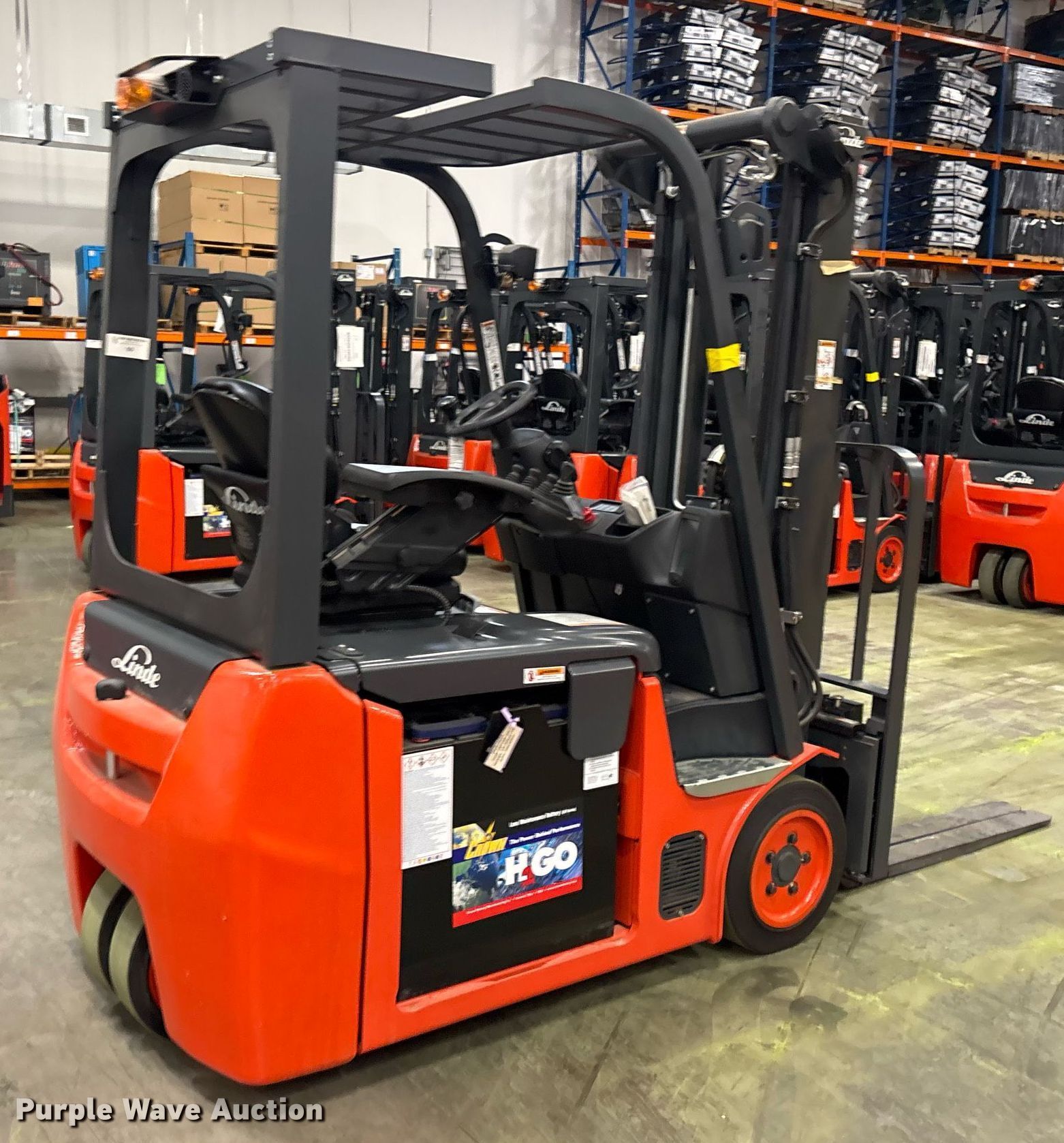 Purple Wave is selling a used Warehouse Forklift in Texas. This item is a 2023 Linde E18 forklift with the following: Hours: 1 on meter, Serial: A1Y346M00544