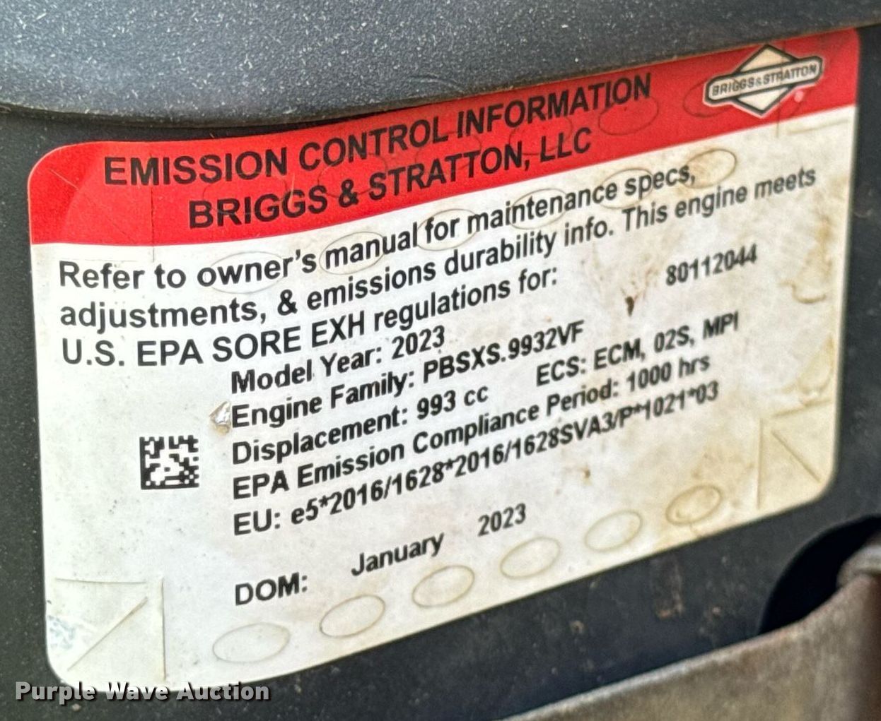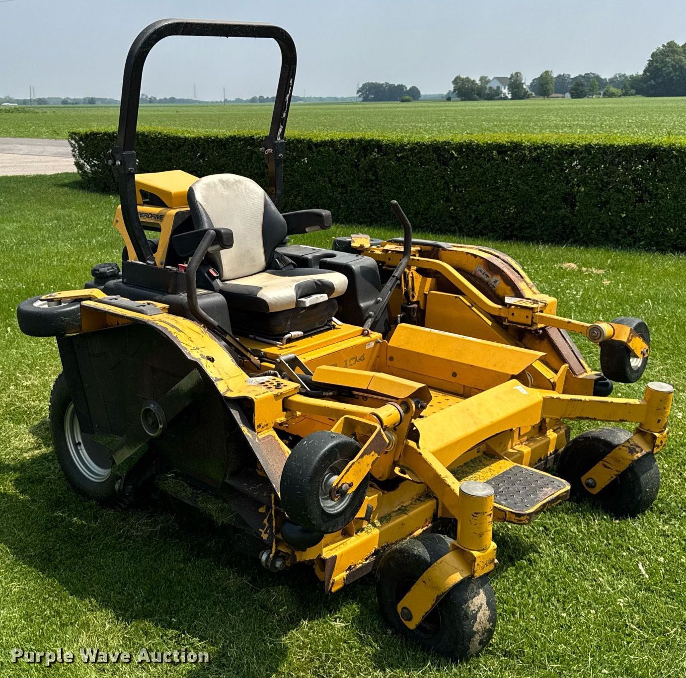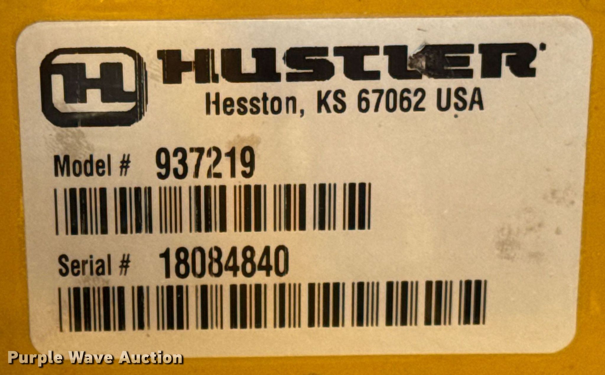 2018 Hustler 937219 ZTR lawn mower. Hours: 4,795 on meter, Cutting width: 104", Serial: 18084840. Engine Vanguard EFI 37, Cylinders: 2, Fuel type: Gas. Transmission Hydrostatic. Operators station OROPS. Features Mower deck Width: 104", Hydraulic fold decks, Hydraulic front deck lift. Tires Front: 15x6.00-6/4.50, Rear: 26x12.00-12. Notes Left hydraulic drive issues, weak. Mishawaka, IN 46544
