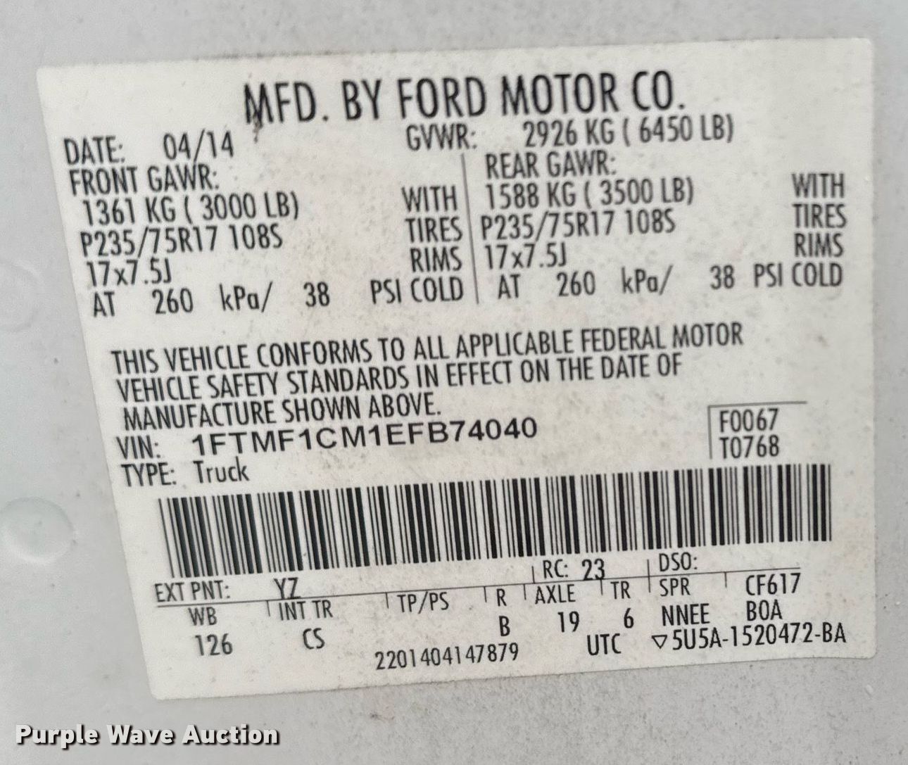 - VIN: 1FTMF1CM1EFB74040