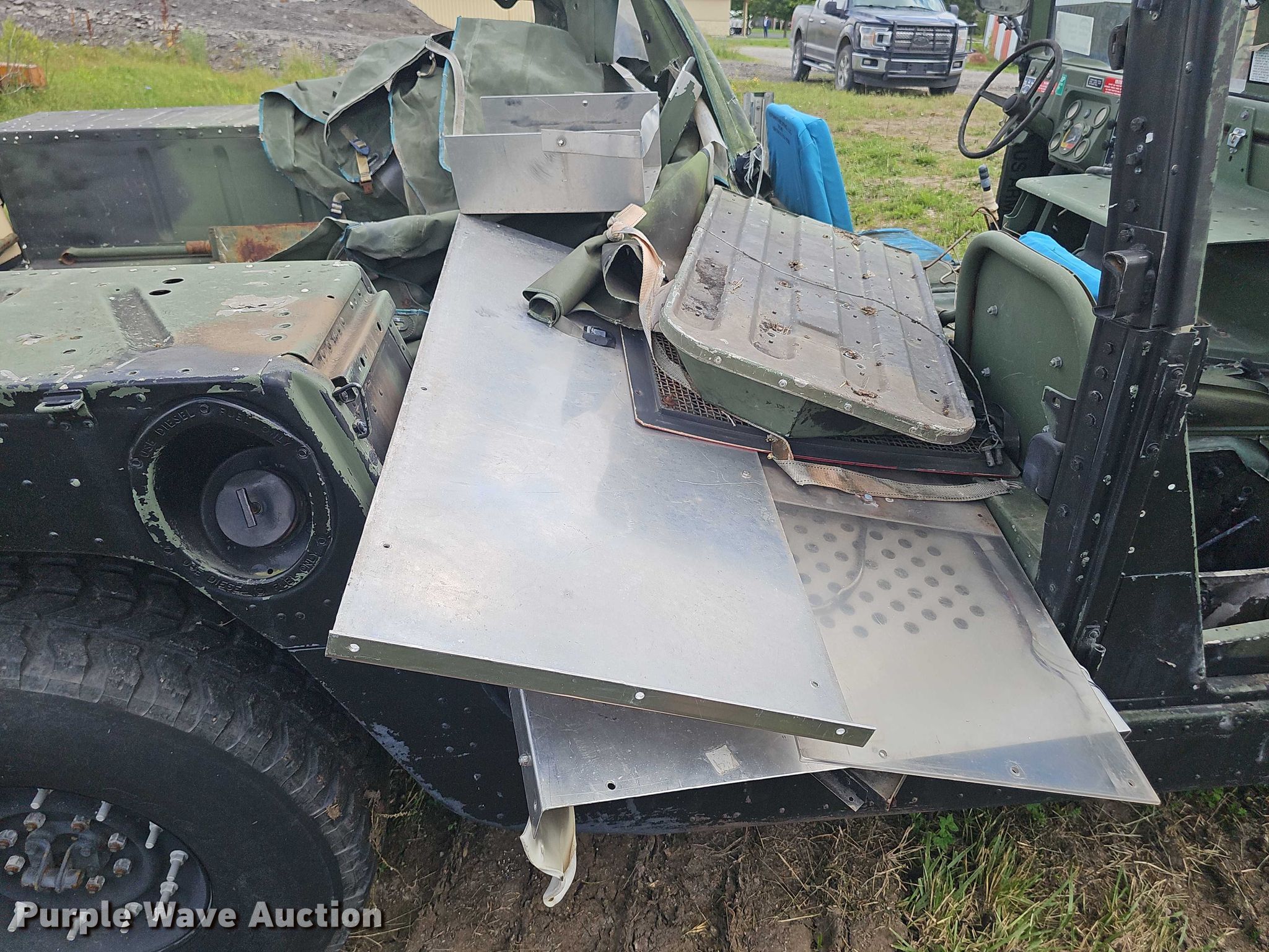 1991 AM General M1038 SUV. Miles: 40,520 on odometer, VIN: 117515. Engine Cylinders: 8, Fuel type: Diesel. Transmission Automatic, Four wheel drive. Interior Heat. Tires Size: 37x12.50R16.5LT. Notes Fire damage, Doors missing, Tailgate hinge issues, broken, Non-operational unit Unit must be towed or hauled. Kickapoo Tribe of Kansas Title. Title distribution may be delayed up to 14 days from verification of funds. Kickapoo Nation. Whiting, KS 66552