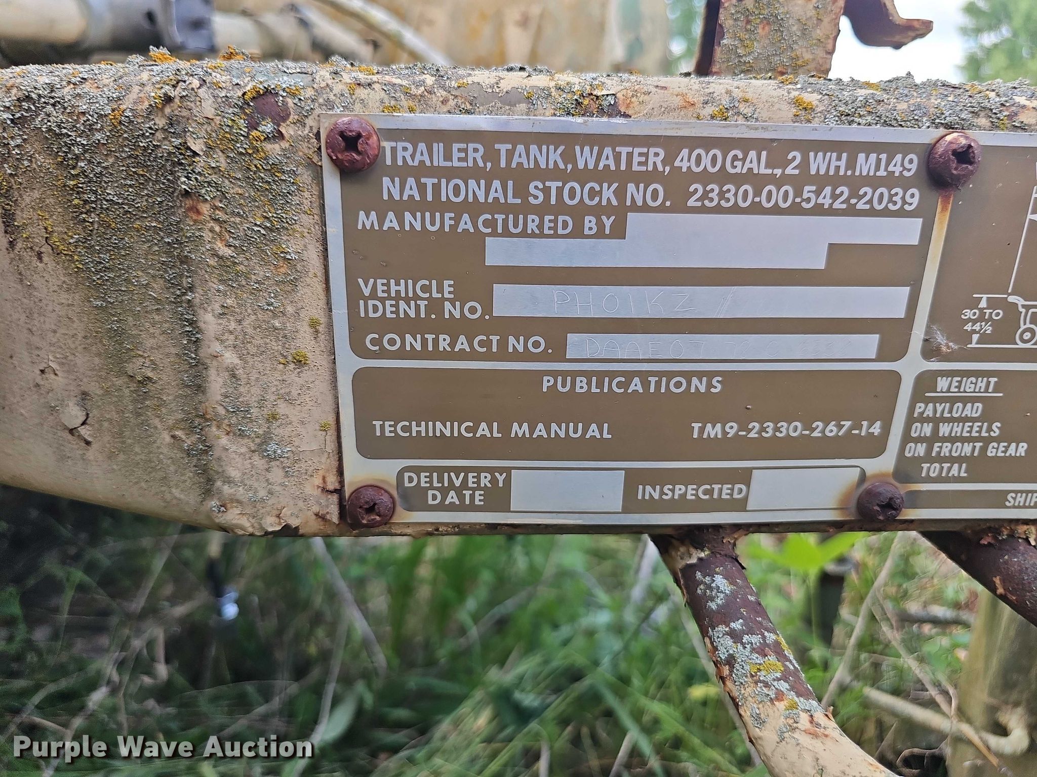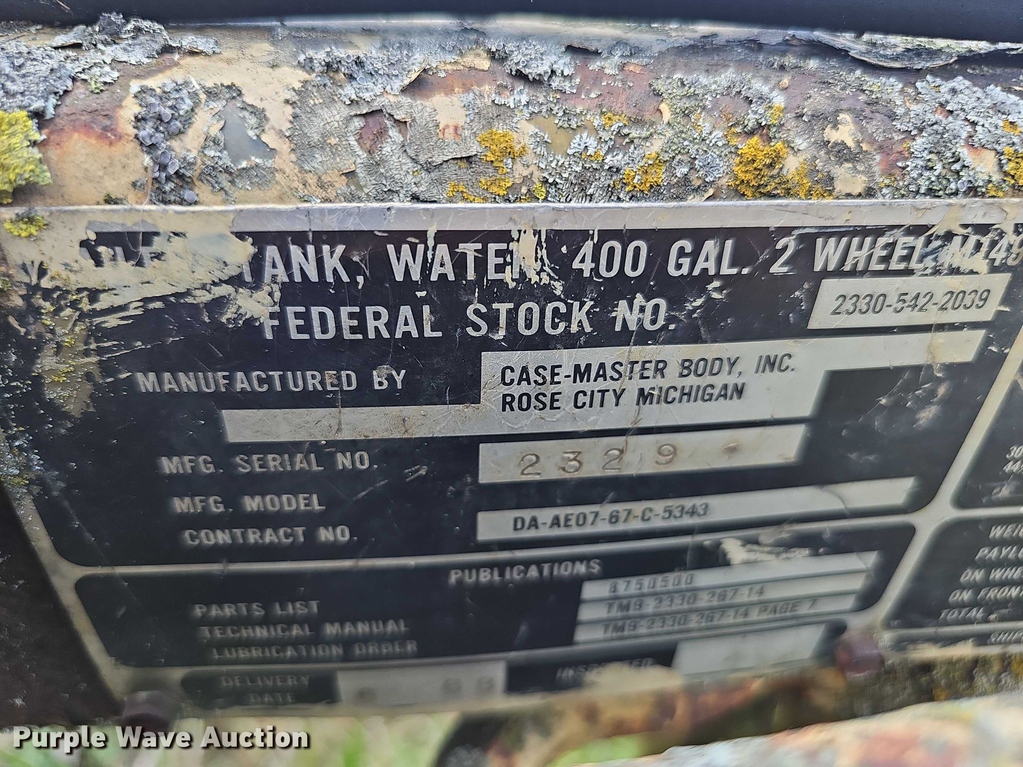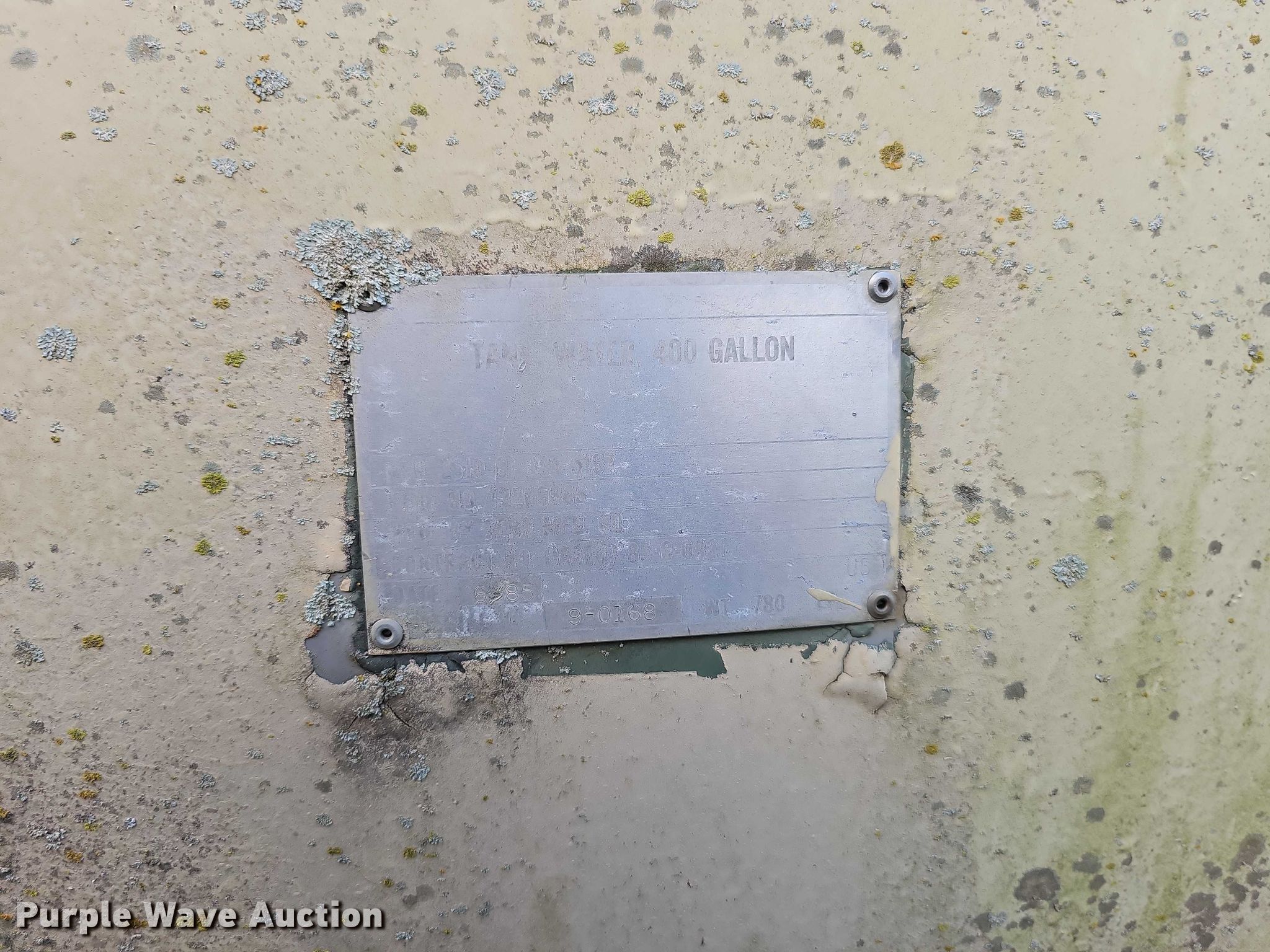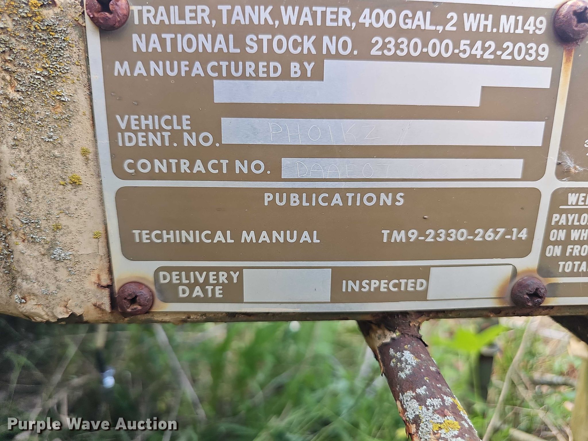 (3) tank trailers. Serials PHU25H-M149-0788, 2329, PH01KZ. Dimensions Overall: 14' L x 82" W. Features Tank type: Stainless steel Capacity: 400 gallons, Outlet valves: 2, No. of manways/manholes: 1. Chassis Hitch: Pintle, Landing gear: Single, Suspension: Spring, Brakes: Air. Tires Steel wheels, Size: 9.00-20. Notes Middle trailer has used oil in it, Middle trailer issues, missing air line hoses. This is worksite support equipment and will not come with a title. Transfer of ownership documentation will be a bill of sale. Kickapoo Nation. Whiting, KS 66552