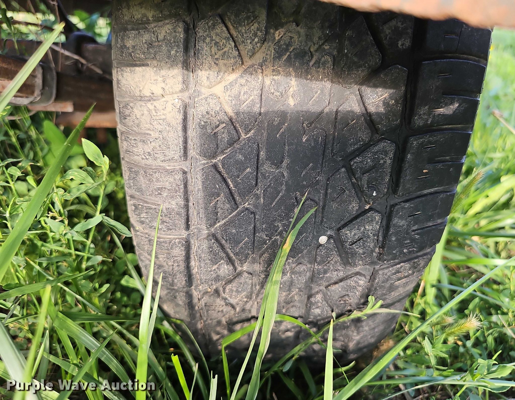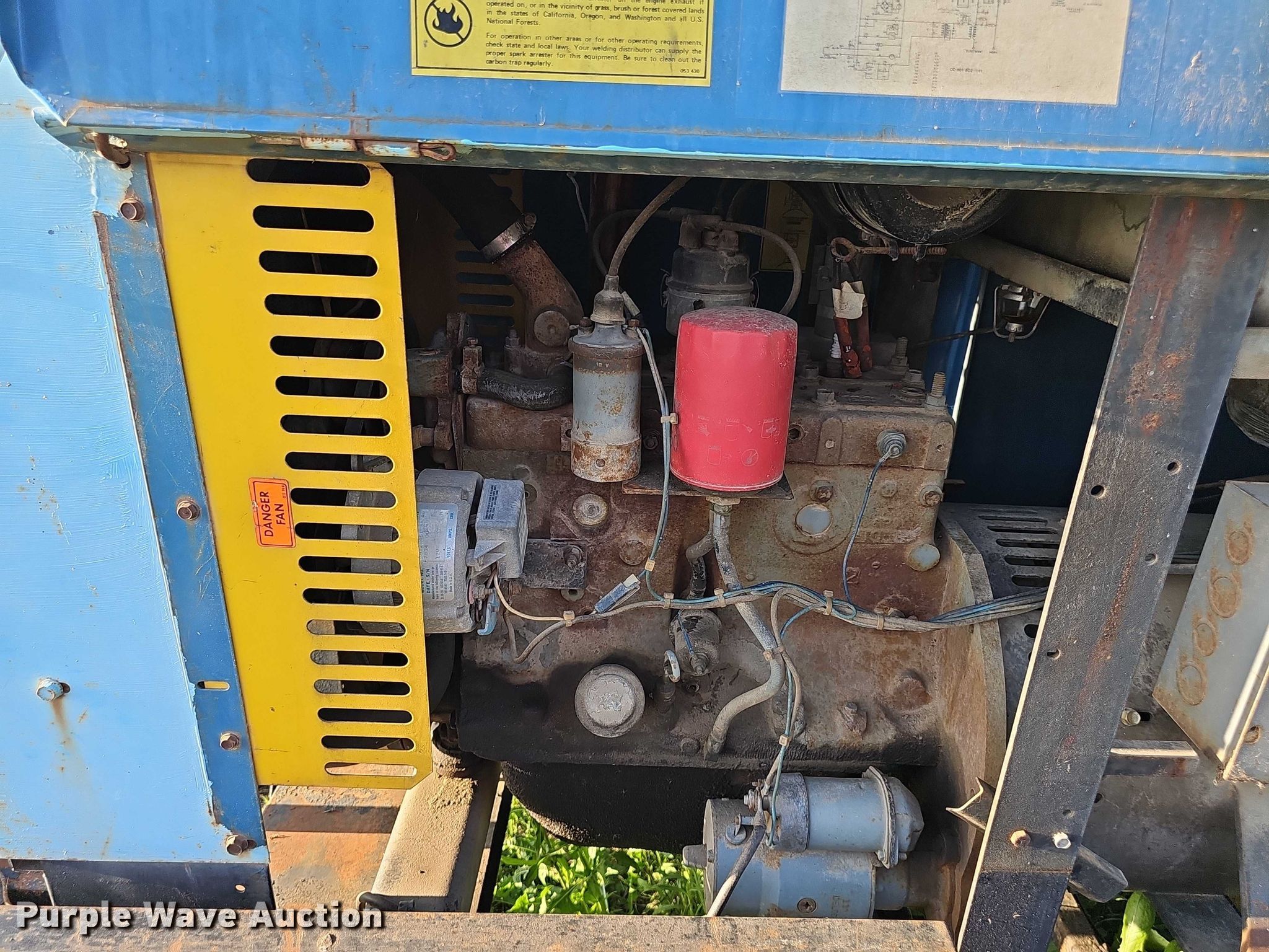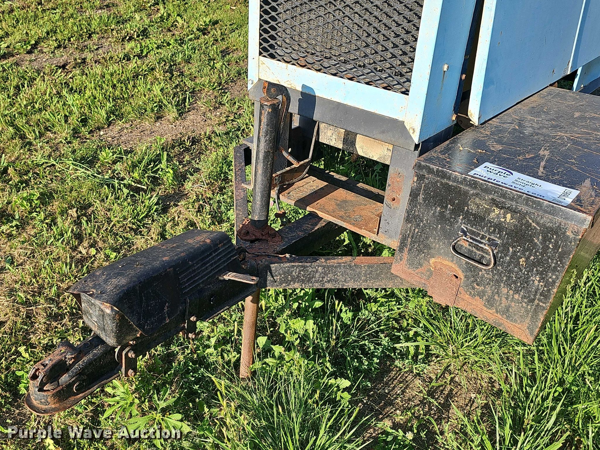 Miller Trailblazer welder/generator. Serial: 000294. Engine Cylinders: 4, Fuel type: Gas. Features Welder Leads, Fuel tank, Trailer mounted, Generator 120V outlets: 2. Trailer 9' L x 68" W, Ball hitch size: 2", Suspension: Spring, Axles: Single, Tire size: P225/60R15. Notes Flat tires, Non-operational unit. Kickapoo Tribe. Horton, KS 66439