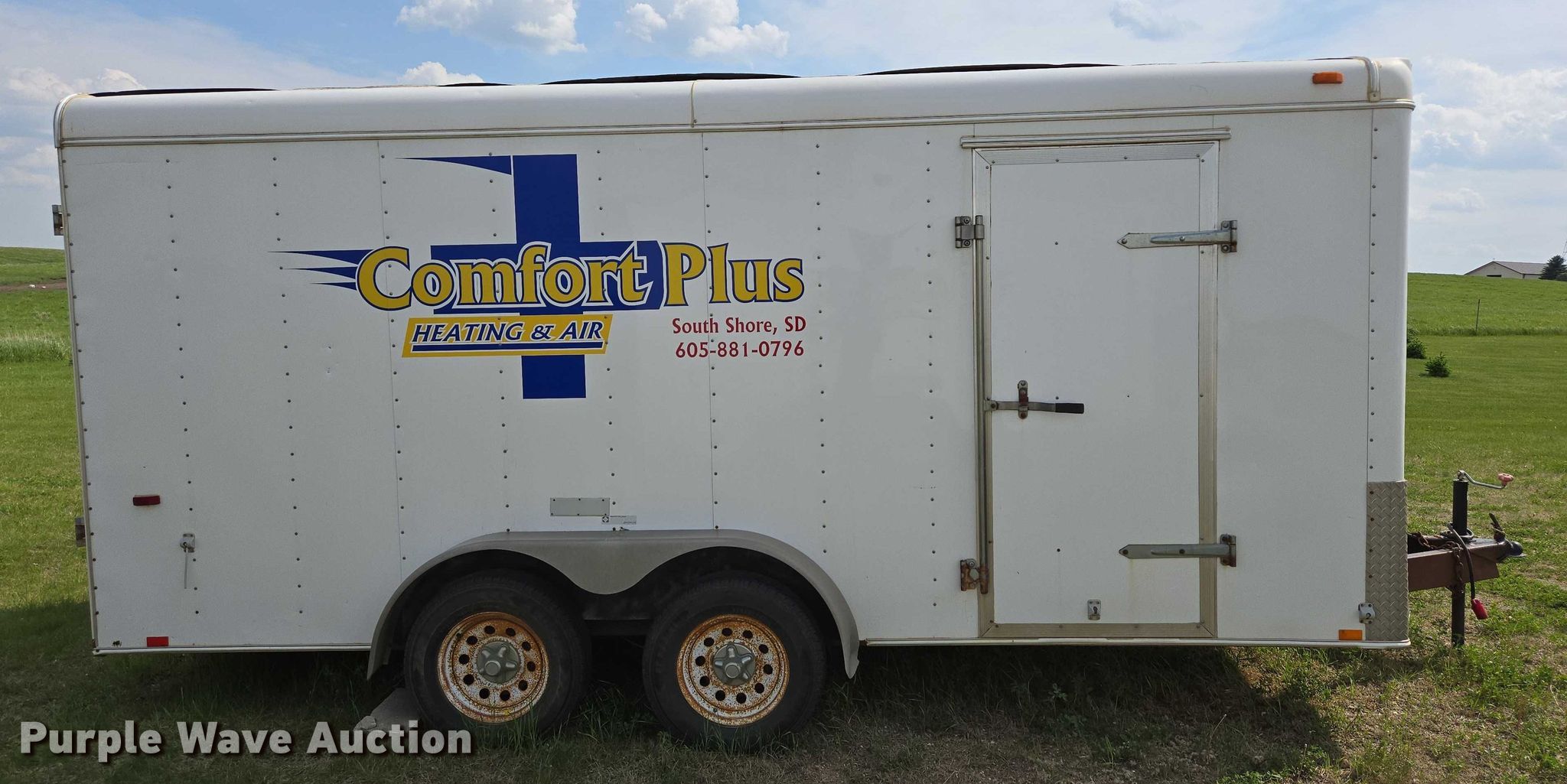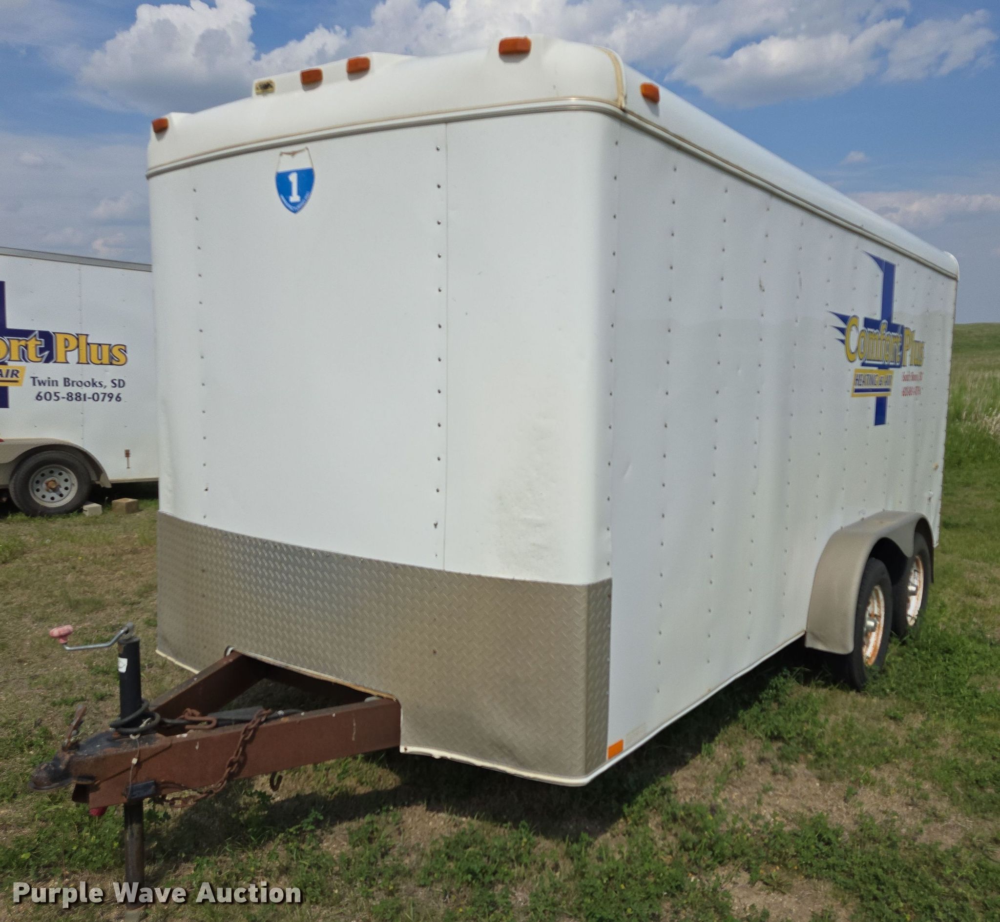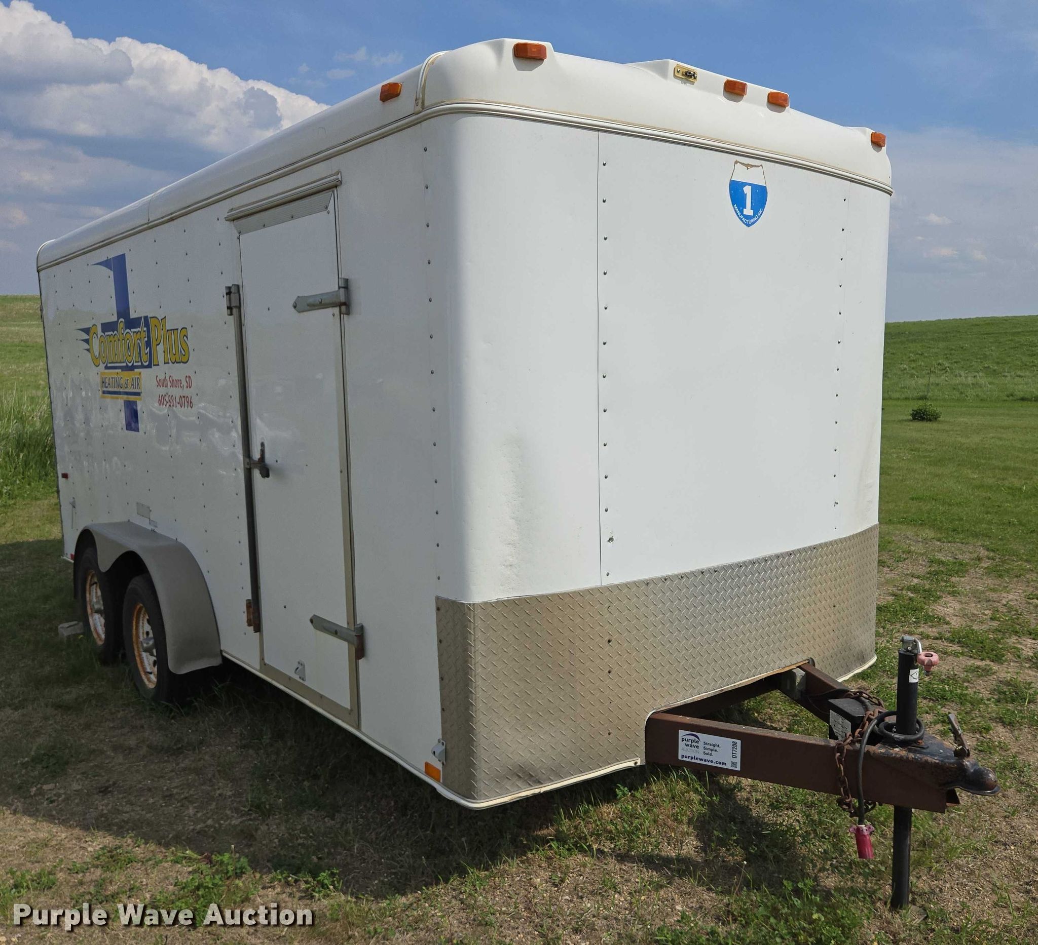 2005 Interstate enclosed cargo trailer. VIN: 1UK500G2X51055923. Dimensions Overall: 19' 6" L x 102" W, Body: 16' 4" L x 84" W. Features Deck type: Wood. Chassis Ball hitch: 2 5/16", Landing gear: Single, Suspension: Torsion, Brakes: Electric, Axles: Tandem. Tires Steel wheels, Size: ST205/75R15. South Dakota title. Title distribution may be delayed up to 14 days from verification of funds. Twin Brooks, SD 57269