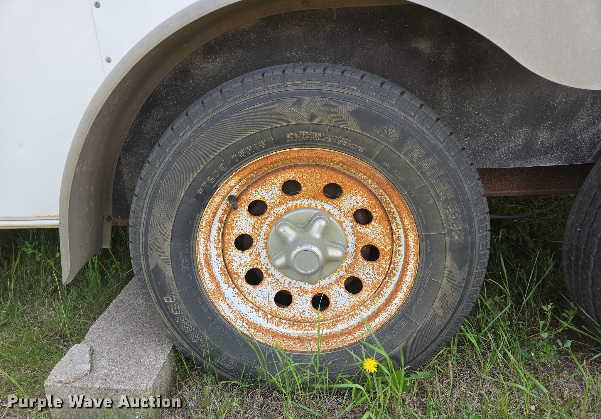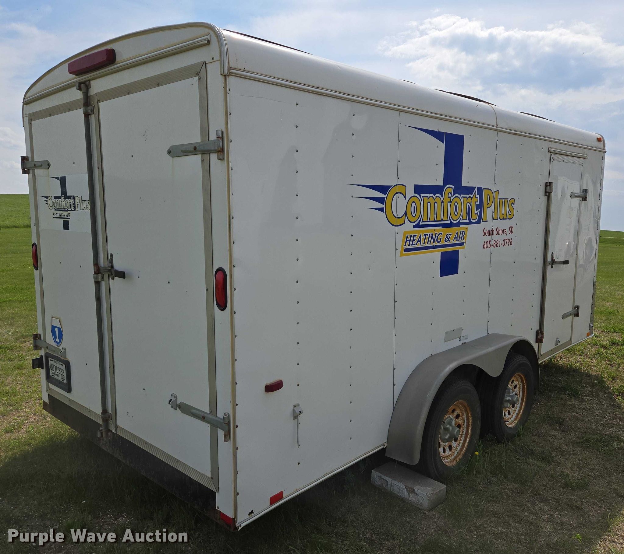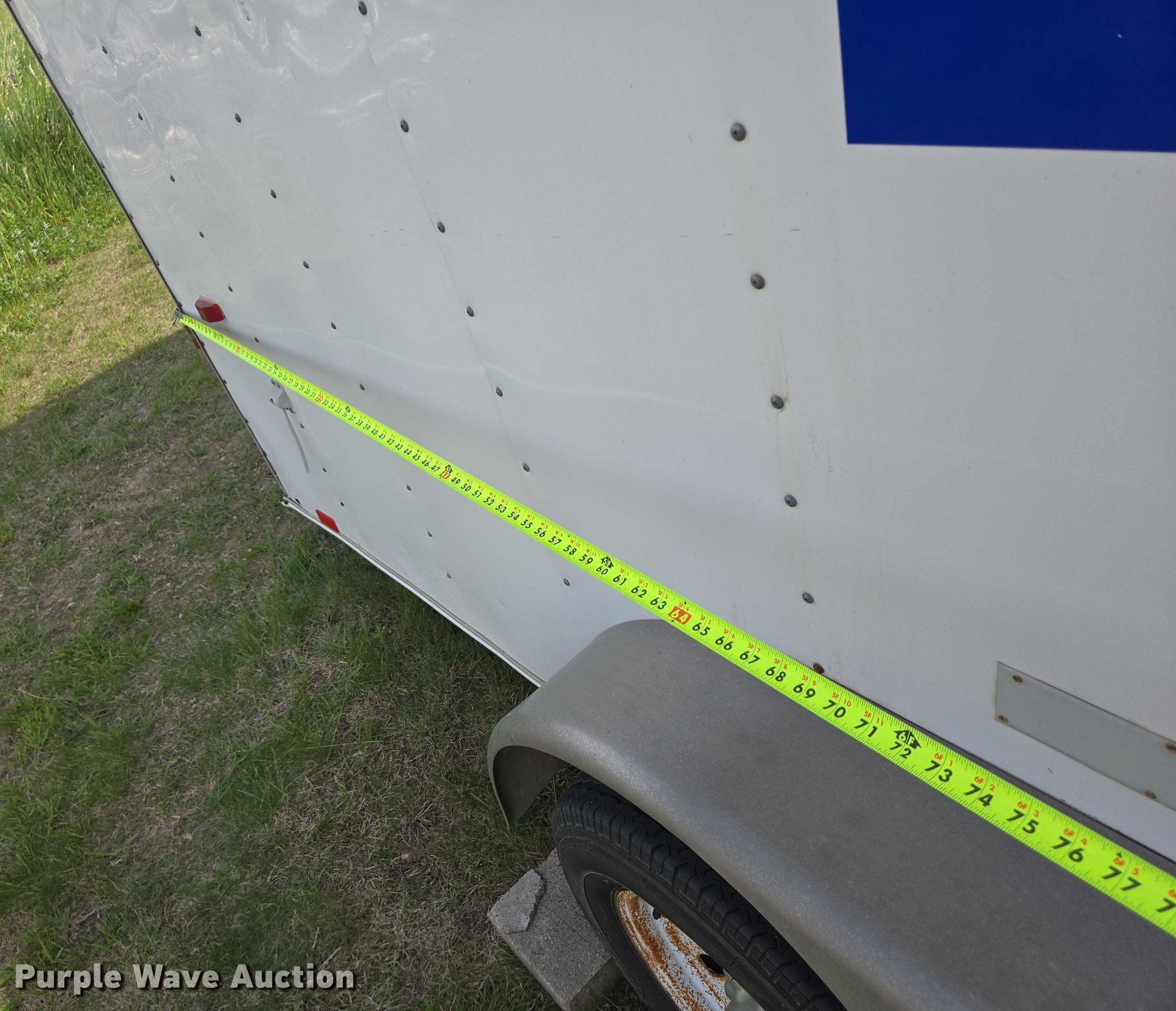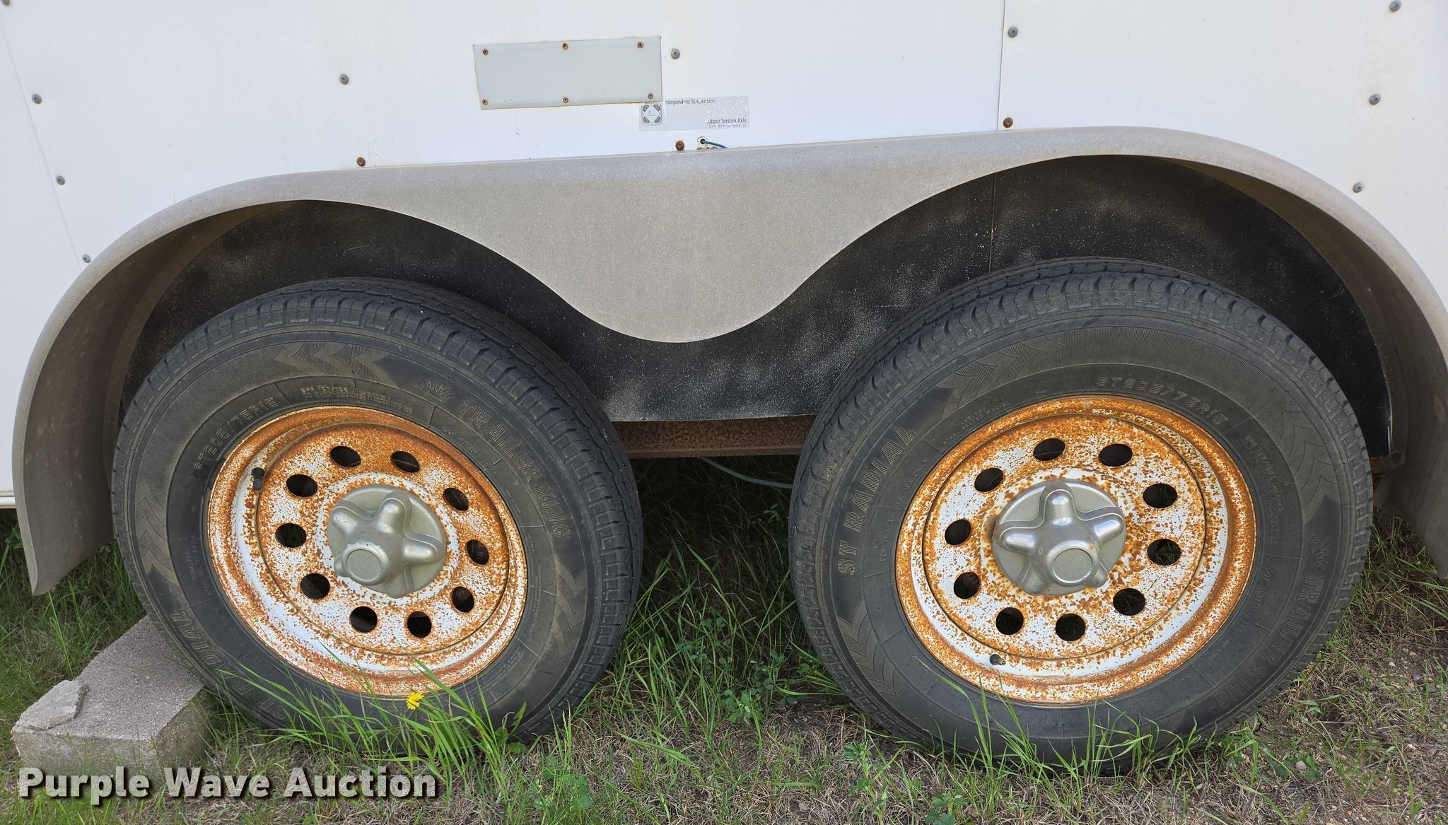 2005 Interstate enclosed cargo trailer. VIN: 1UK500G2X51055923. Dimensions Overall: 19' 6" L x 102" W, Body: 16' 4" L x 84" W. Features Deck type: Wood. Chassis Ball hitch: 2 5/16", Landing gear: Single, Suspension: Torsion, Brakes: Electric, Axles: Tandem. Tires Steel wheels, Size: ST205/75R15. South Dakota title. Title distribution may be delayed up to 14 days from verification of funds. Twin Brooks, SD 57269