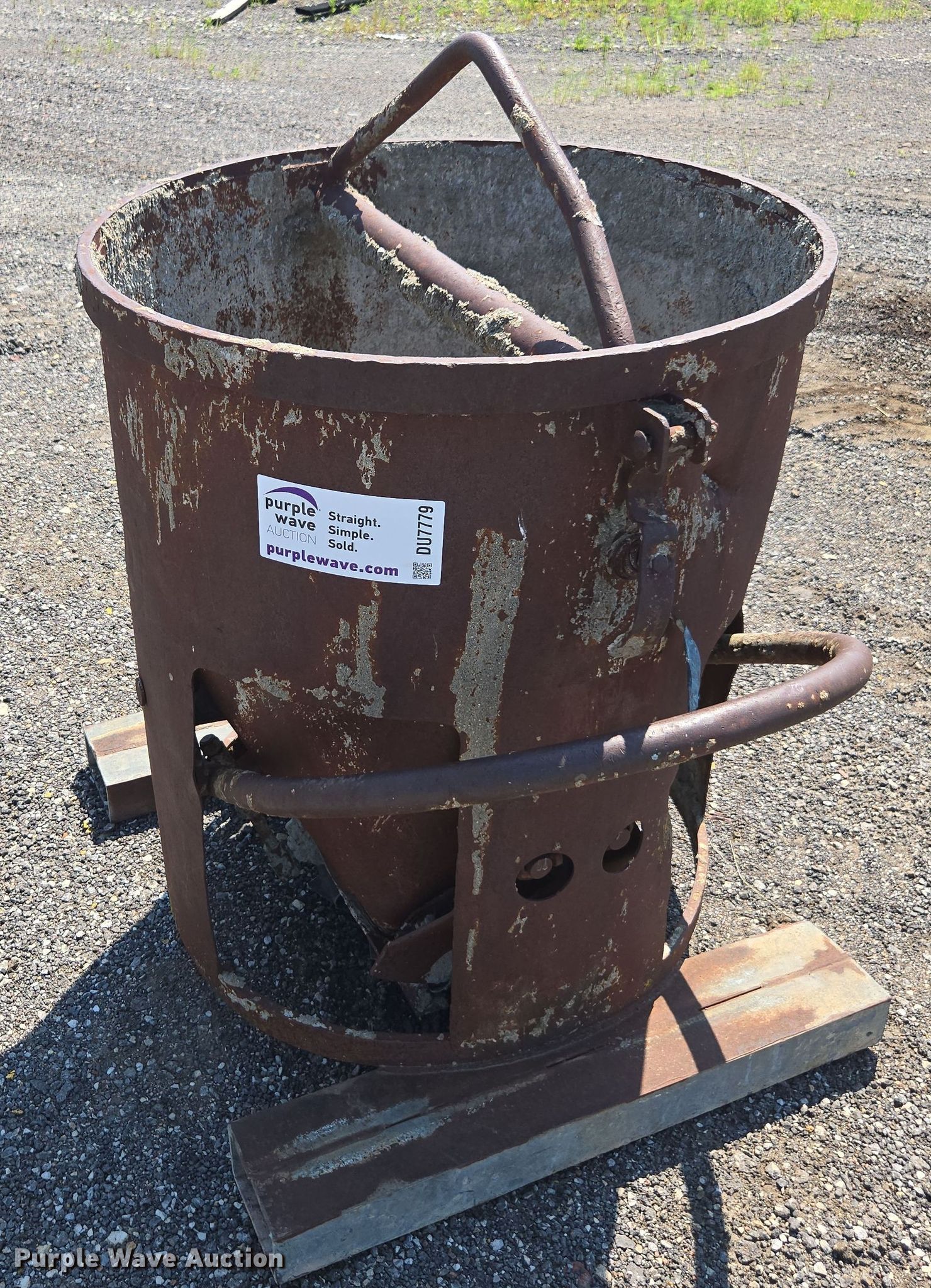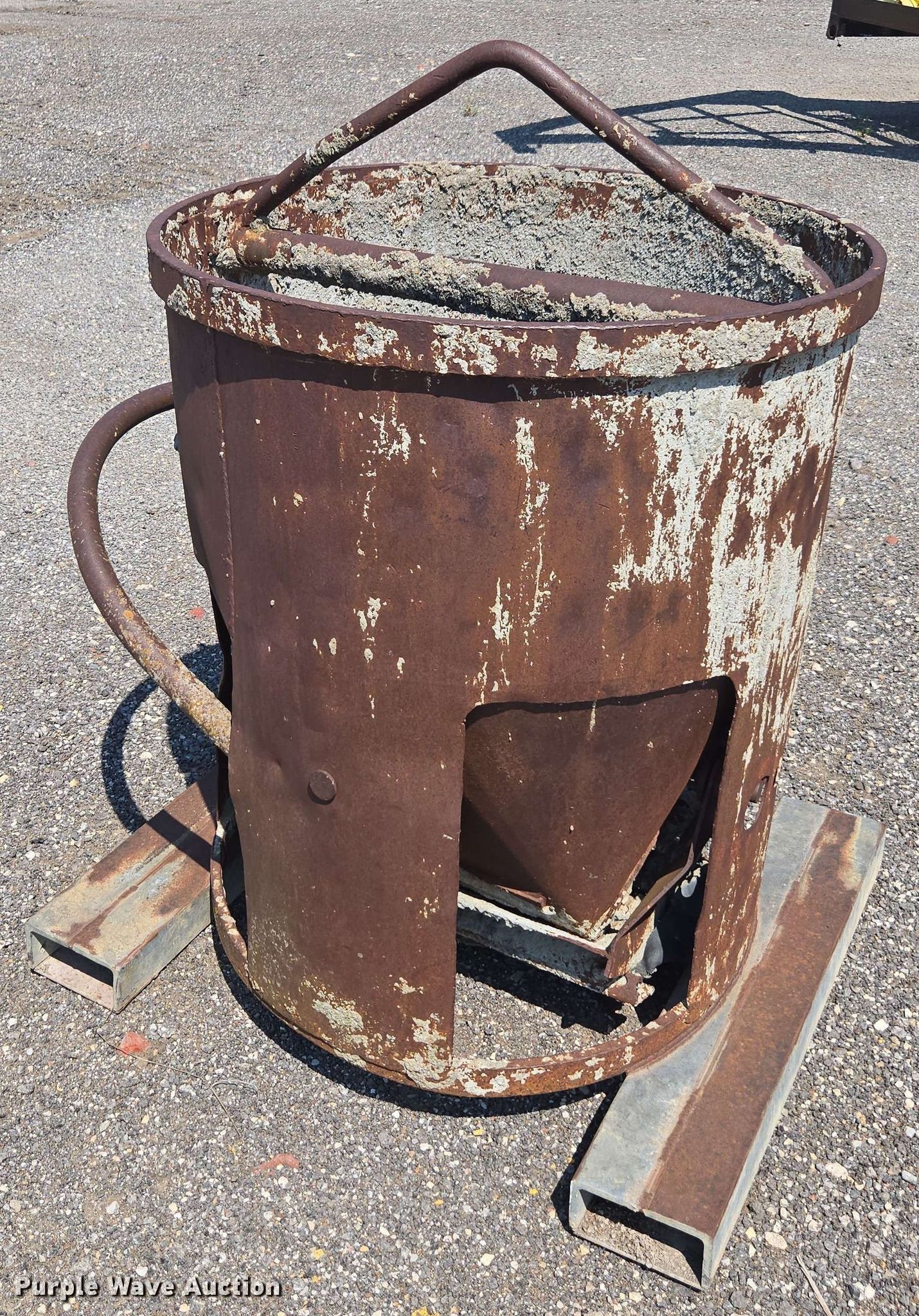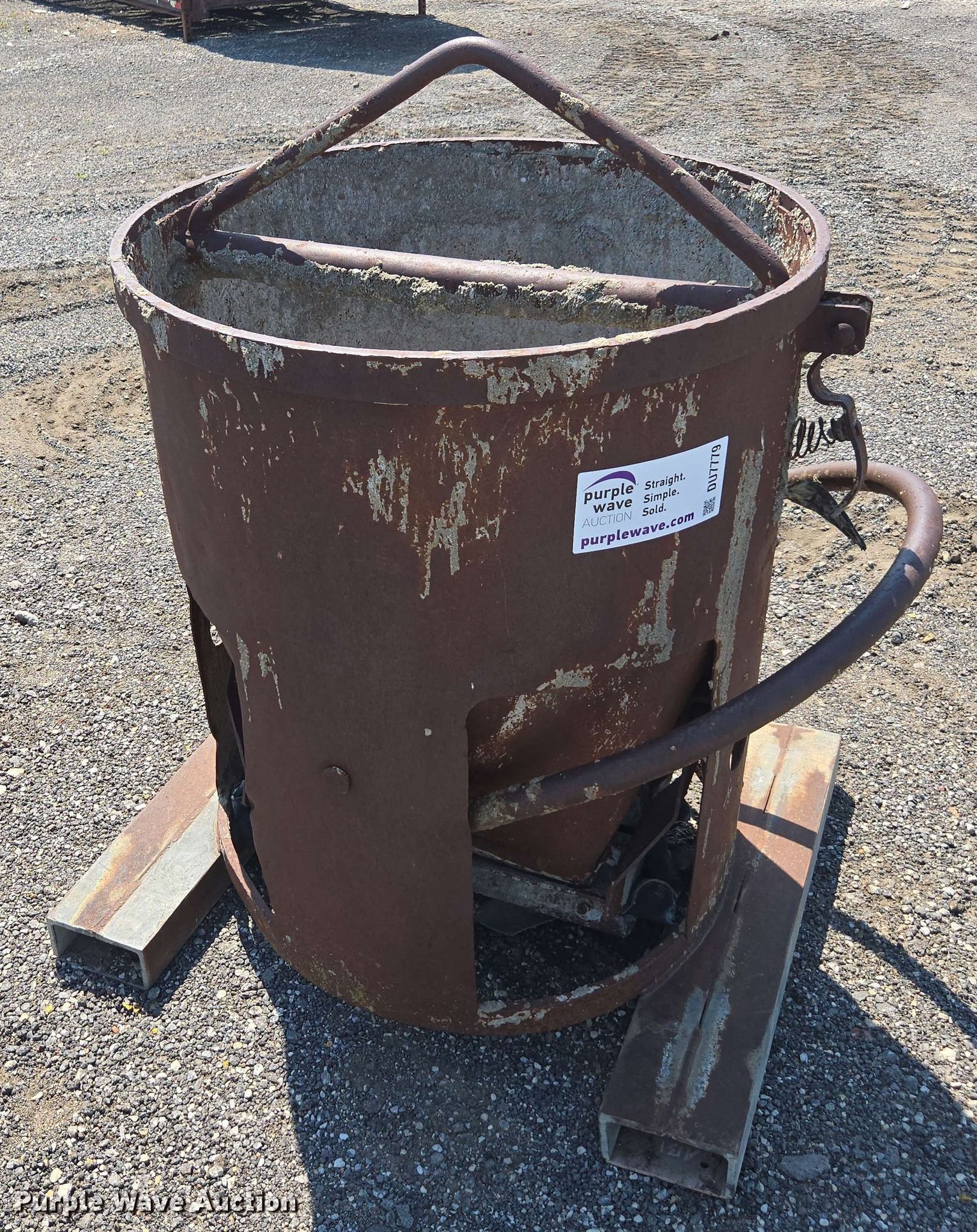Purple Wave is selling a used Concrete Dispenser in Kansas. This item is a Concrete bucket with the following: Approximately capacity: 1/2 yard