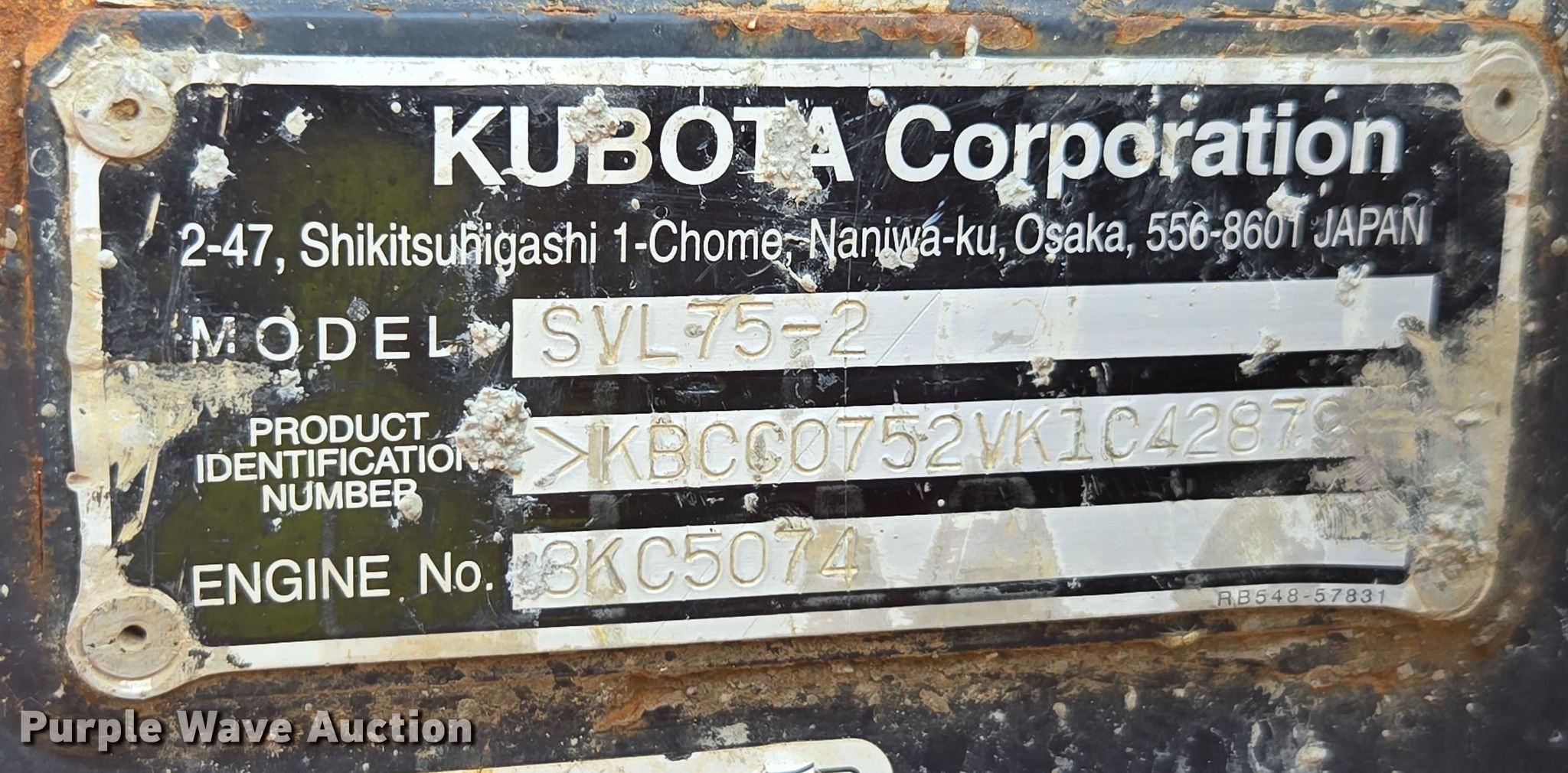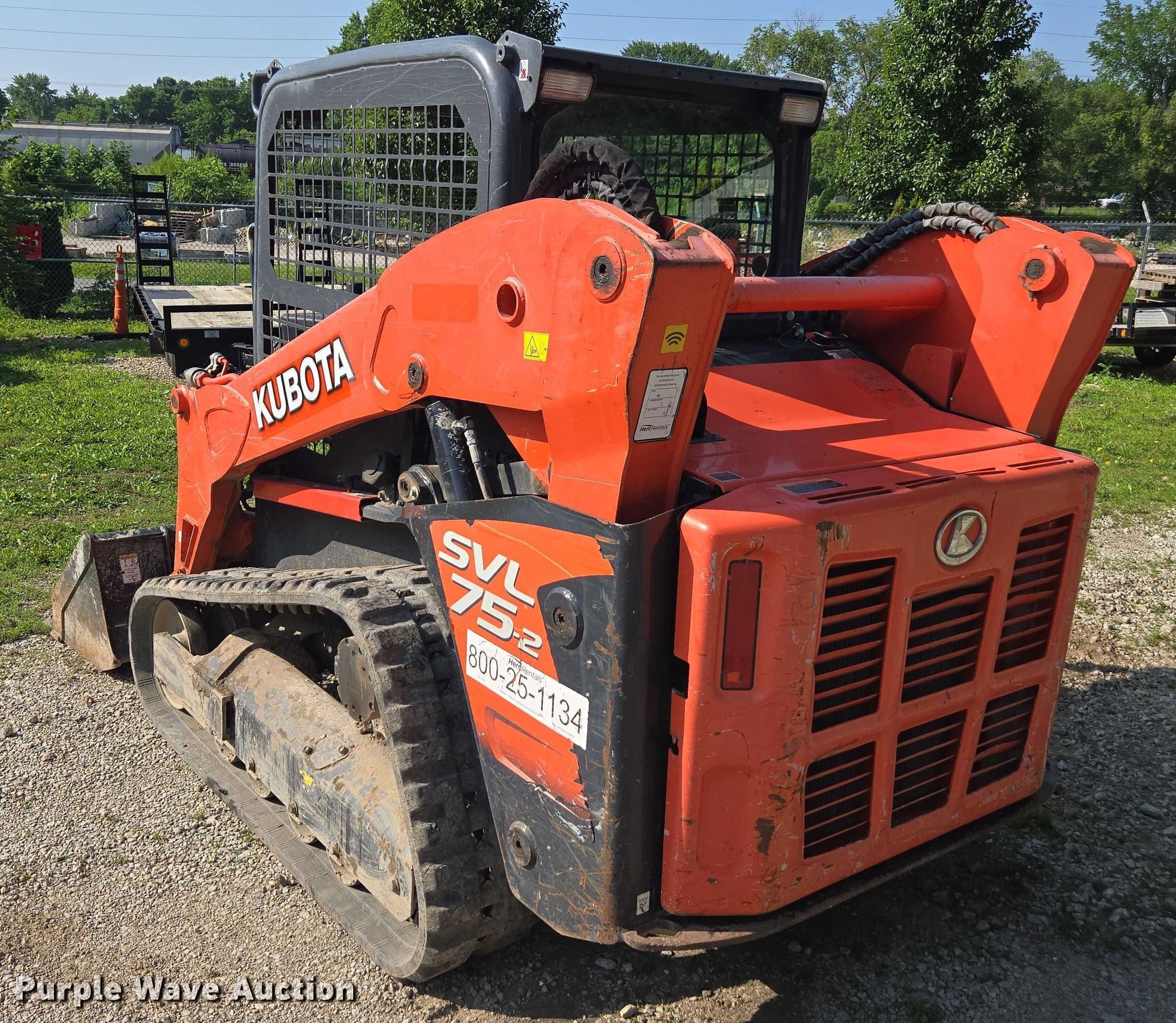 Purple Wave is selling a used Tracked Skid Steer Loader in Kansas. This item is a 2019 Kubota SVL75-2 tracked skid steer loader with the following: Hours: 1,909 on meter, Serial: 42879