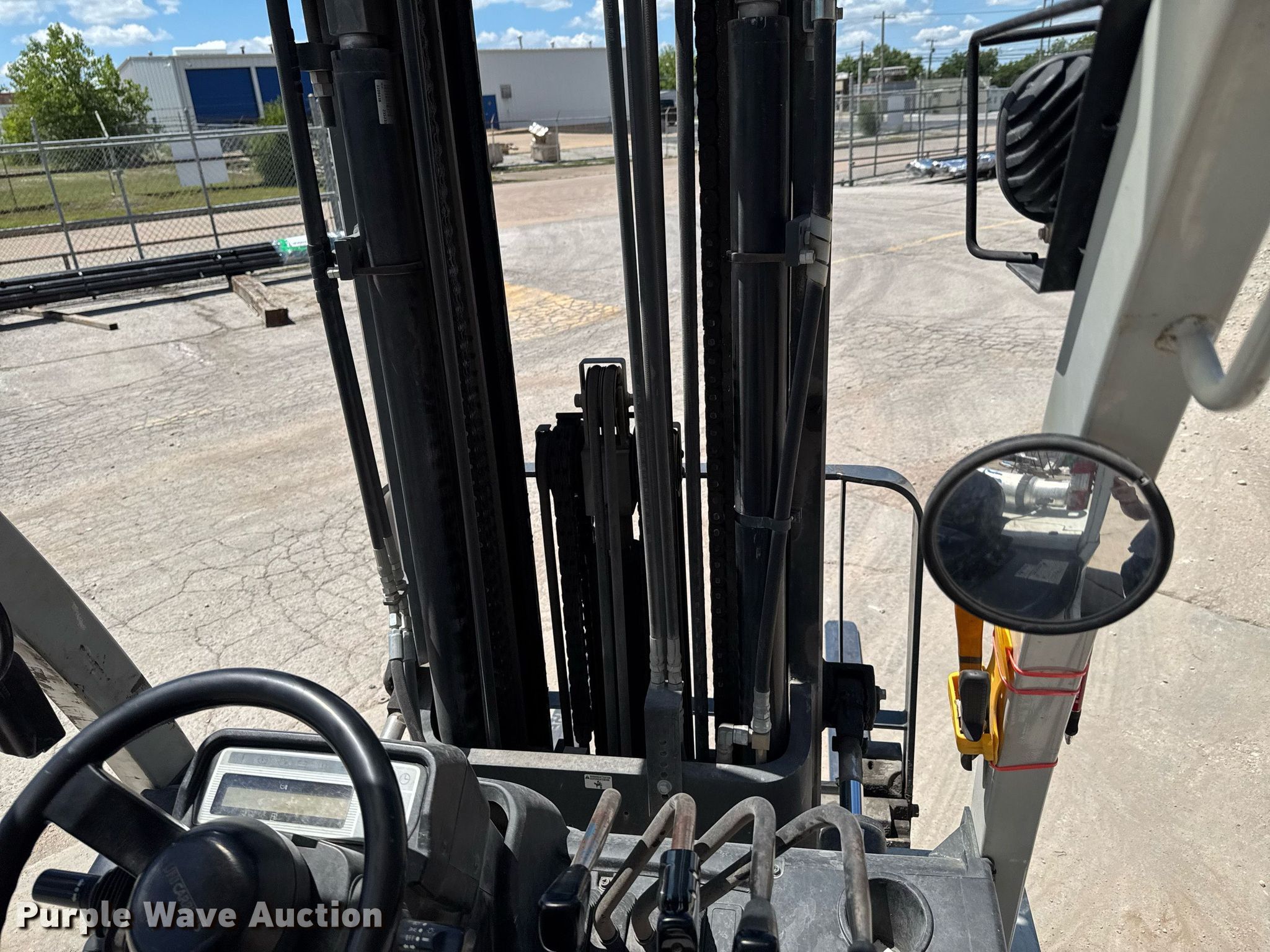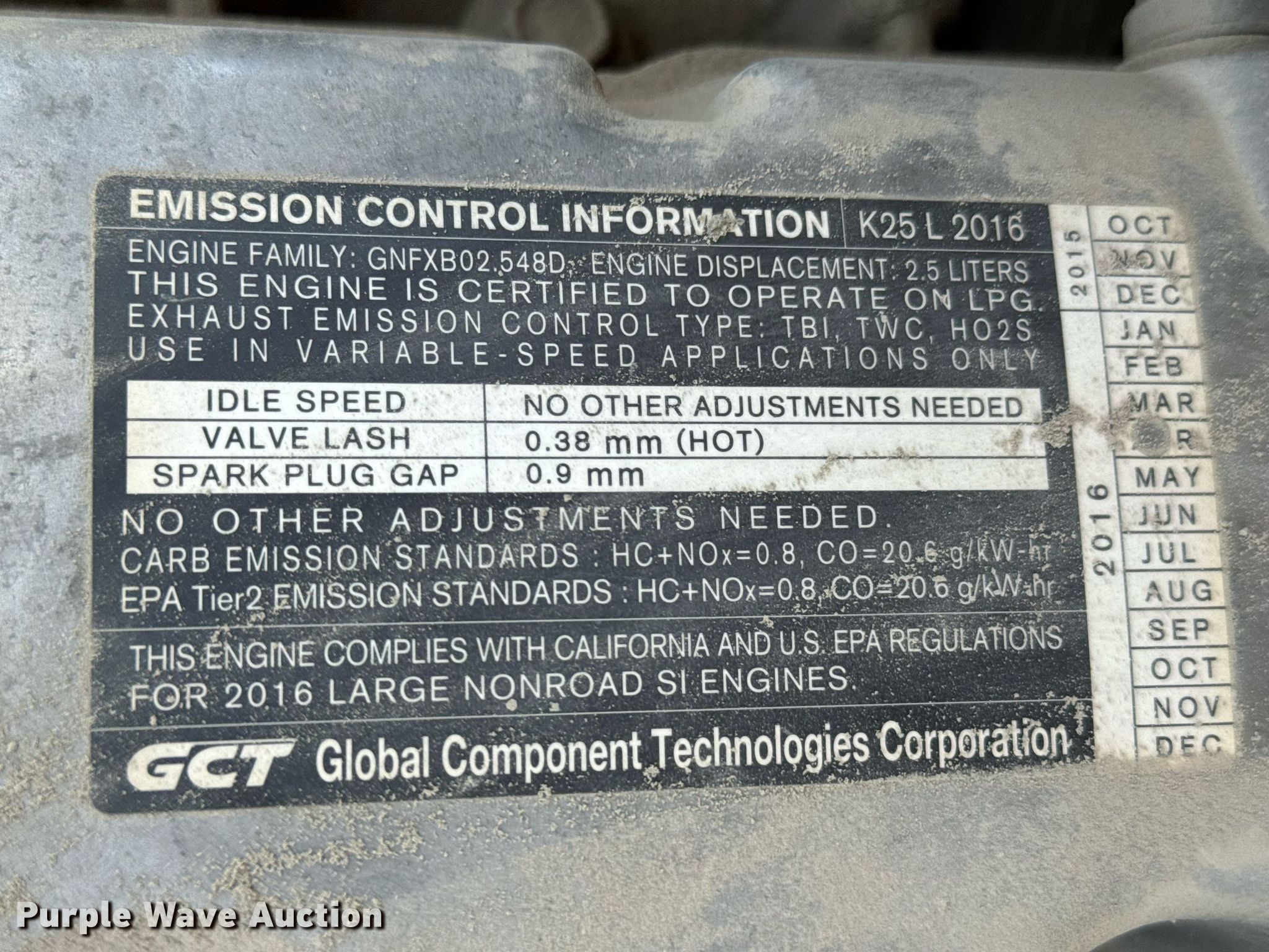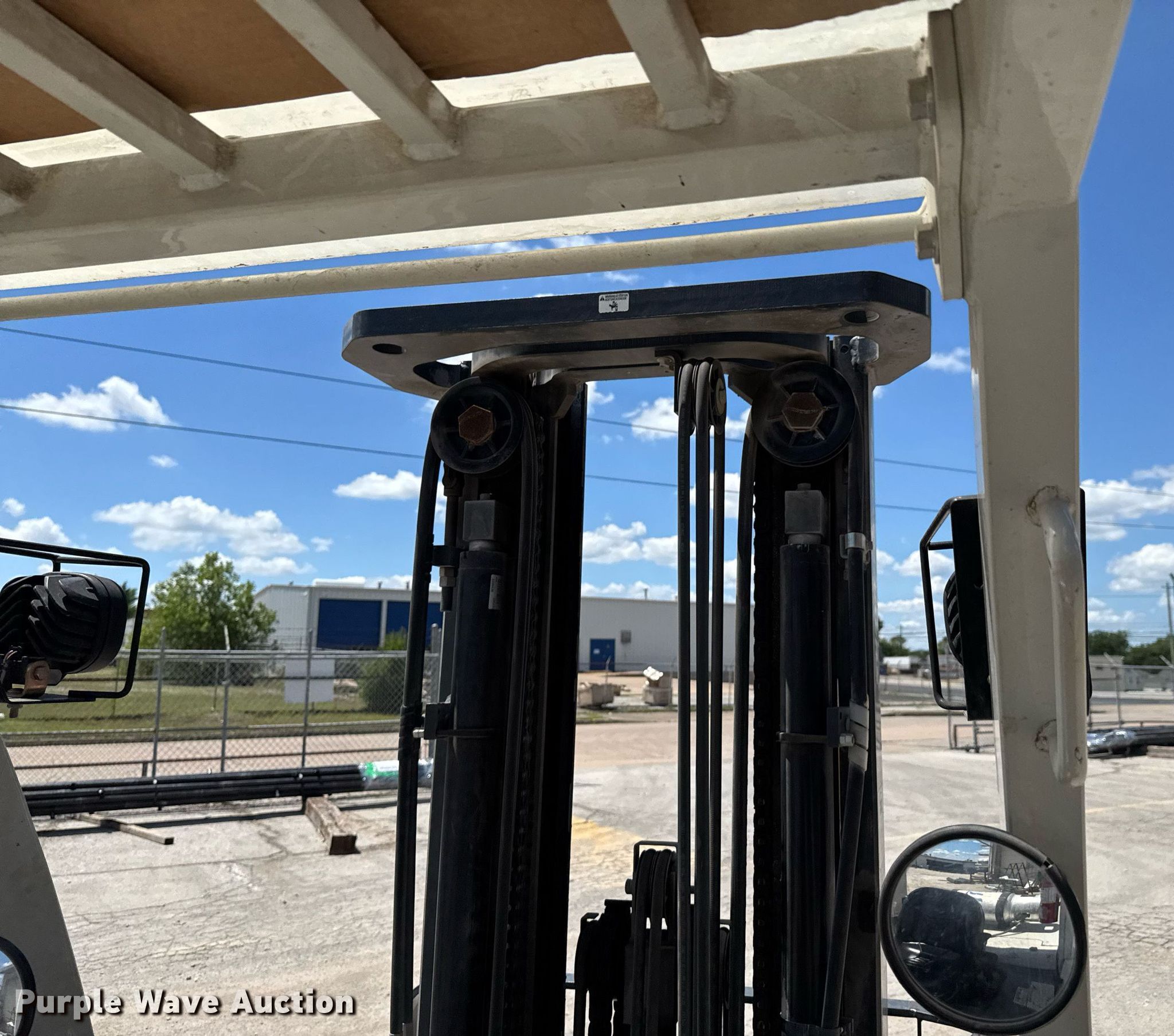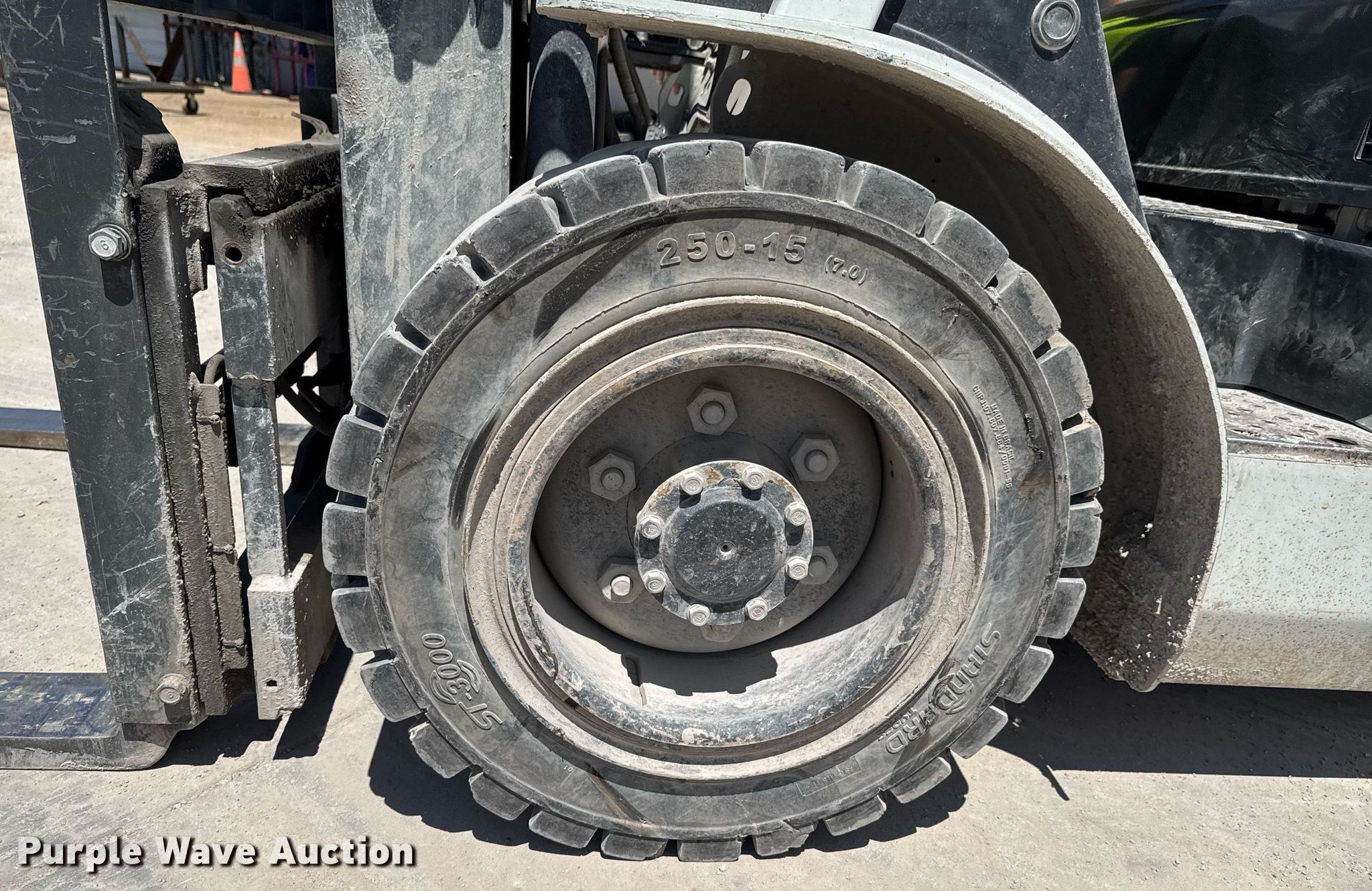 2016 UniCarriers PF70 forklift. Hours: 2,742 on meter, Serial: UG1F2-9L20606. Engine GCT, Displacement: 2.5L, Cylinders: 4, Fuel type: LPG LP bottle: Not included. Transmission Automatic. Operators station OROPS, Canopy. Features Maximum lift capacity: 6,025 lbs, Maximum lift height: 191", Mast stages: 3, Side shift, Mast tilt, Fork positioner, Fork length: 60". Tires Front: 250-15, Rear: 6.50-10. Ferguson. Tulsa, OK 74112