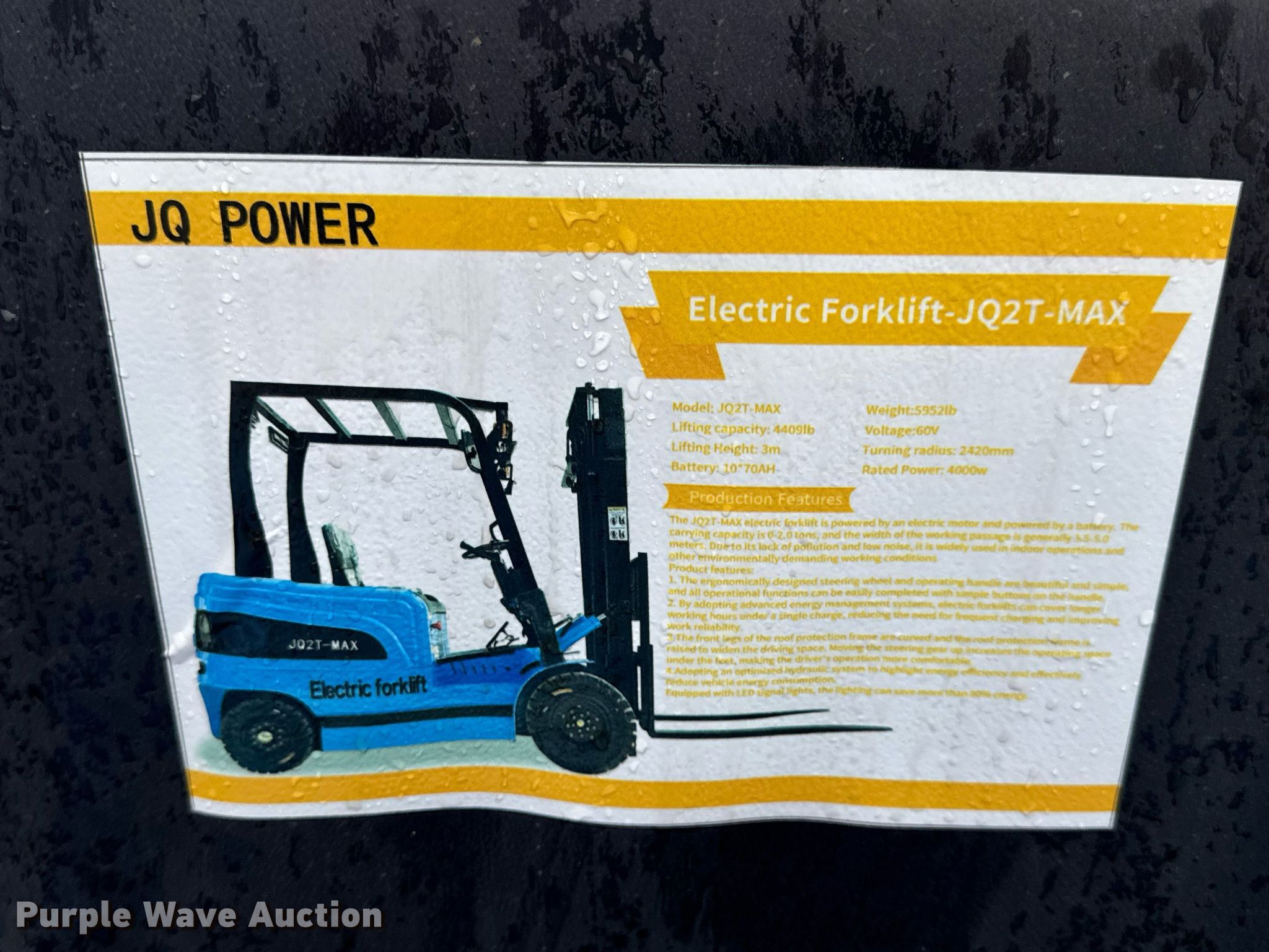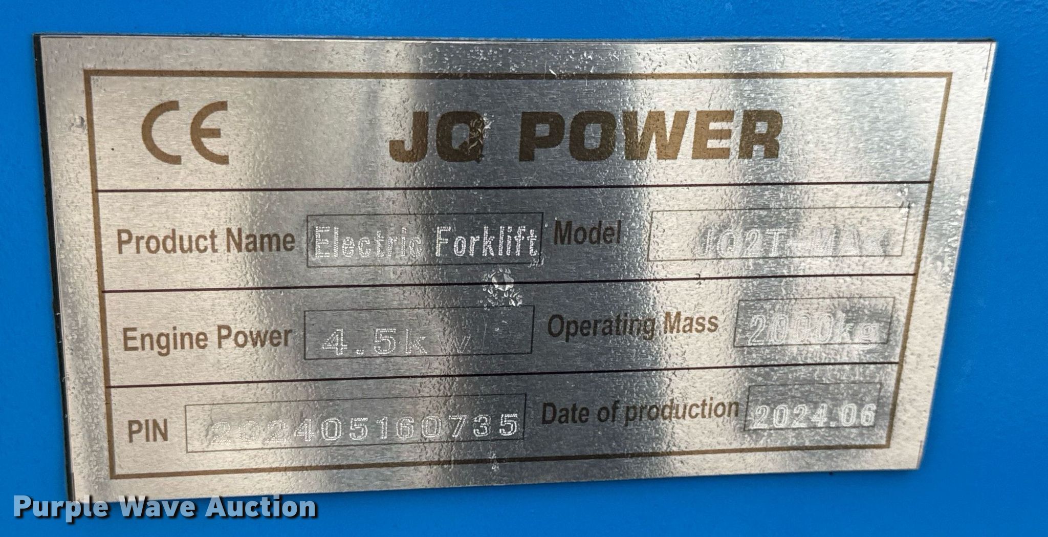 This 2024 JQ Power JQ2T-MAX forklift will sell to the highest bidder regardless of price.