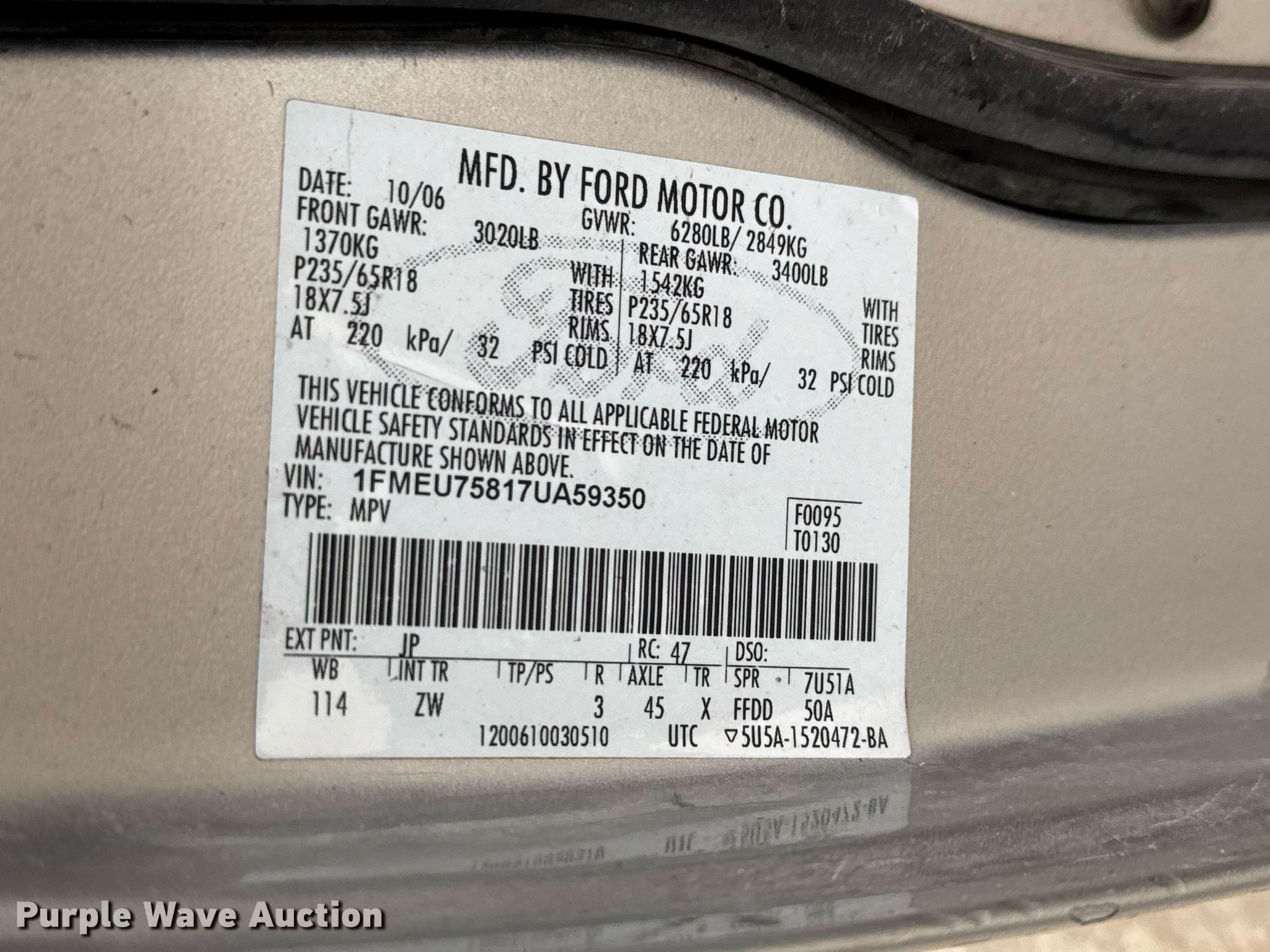 - VIN: 1FMEU75817UA59350