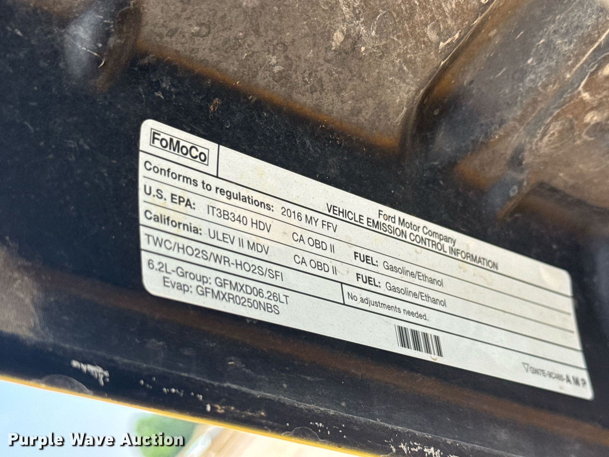 2016 Ford F250 Super Duty Crew Cab utility bed pickup truck. Miles: 150,432 on odometer, Hours: 8,831 on meter, VIN: 1FT7W2A66GEB35492. Engine Displacement: 6.2L V8 OHV, Cylinders: 8, Fuel type: Gas. Transmission Automatic. Interior AC, Heat, Heated mirrors, Power windows, Power locks, Cruise control, Backup camera, Auxiliary controls, Brake controller. Features Utility bed Reading SS098S21211, 8' 2" L x 78" W. Tires Size: 265/70R17. Notes Dash warning indicator: Airbag, Windshield chipped or cracked, Unknown operating condition of backup camera. Kansas title. Title distribution may be delayed up to 14 days from verification of funds. King Construction Company. Hesston, KS 67062