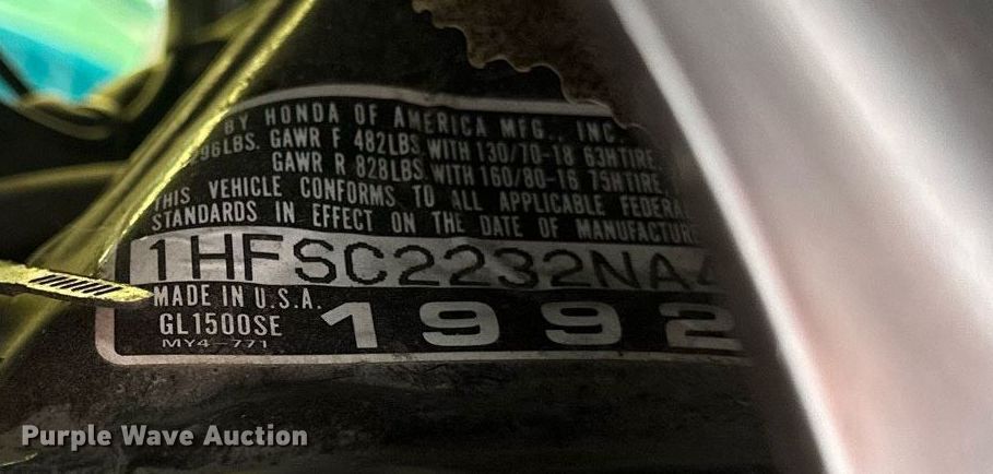 Purple Wave is selling a used Motorcycle in North Dakota. This item is a 1992 Honda GL1500SE motorcycle with the following: Miles: 120,658 on odometer, VIN: 1HFSC2232NA401186