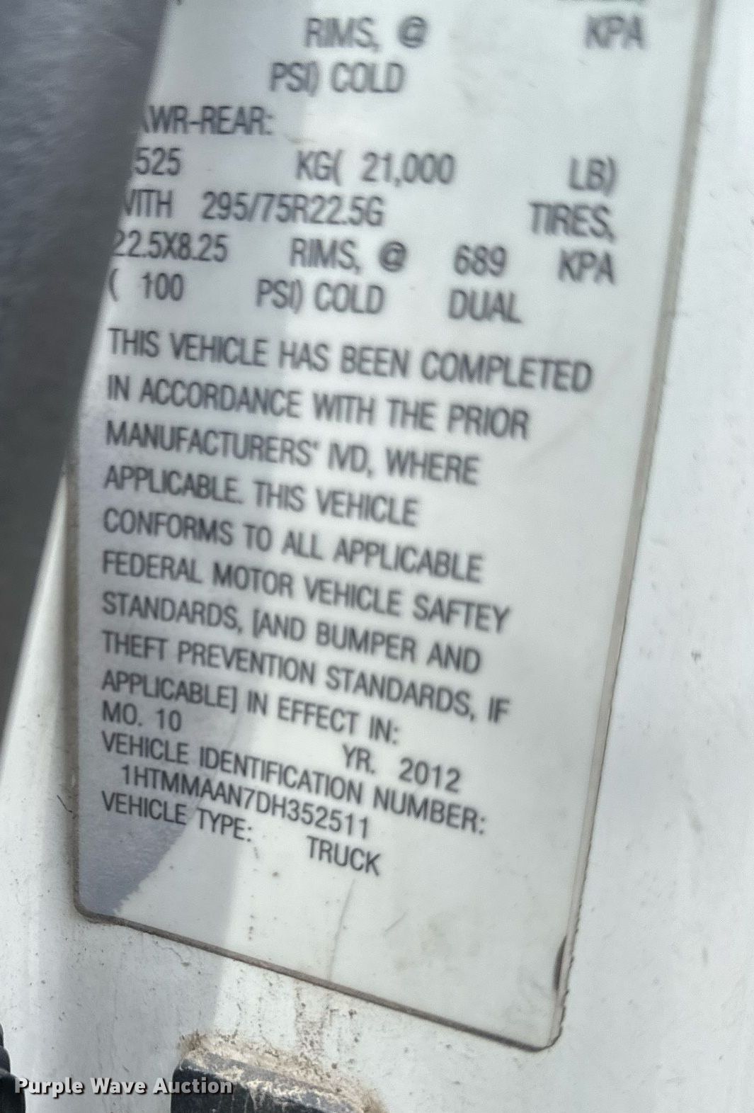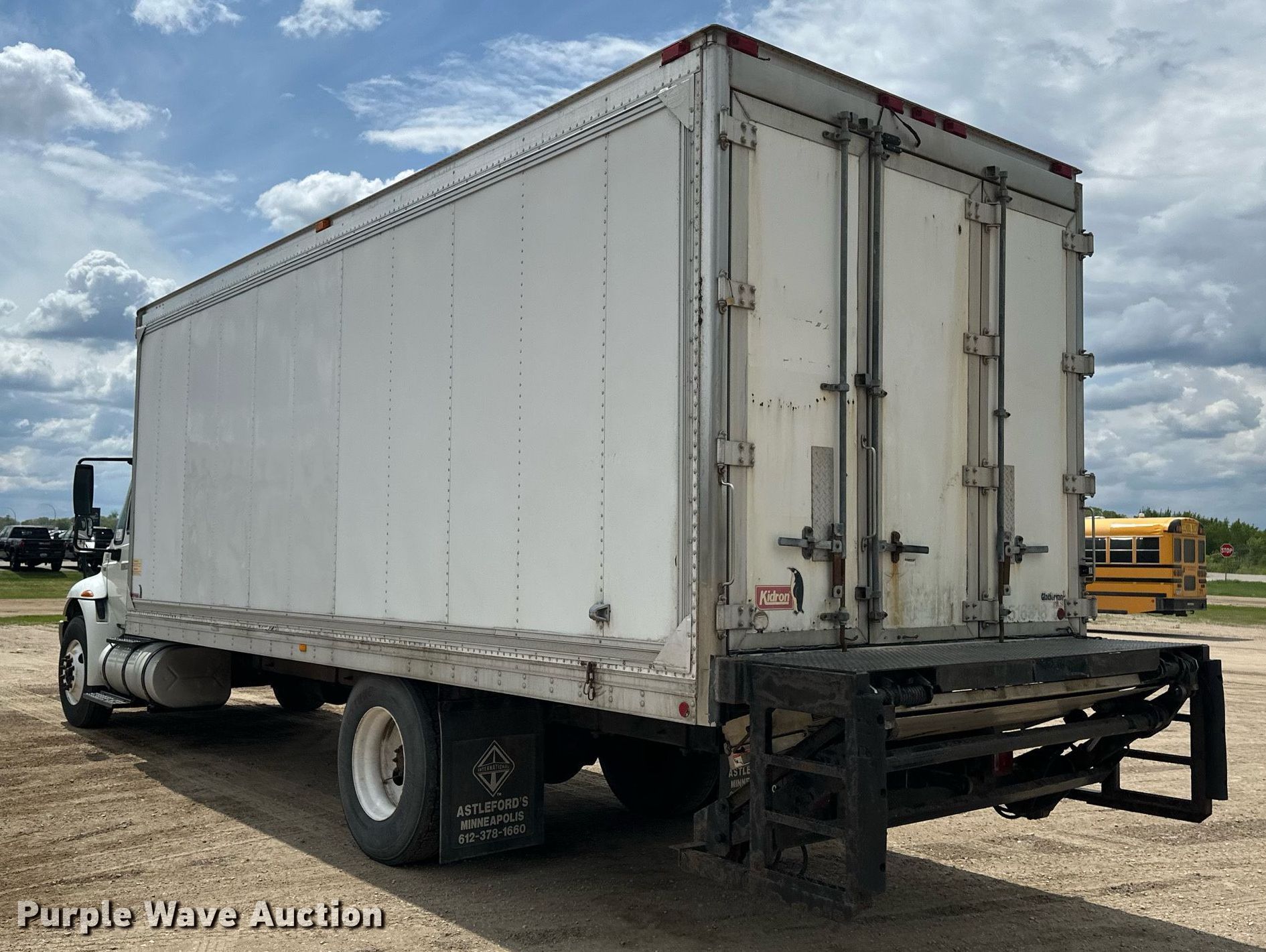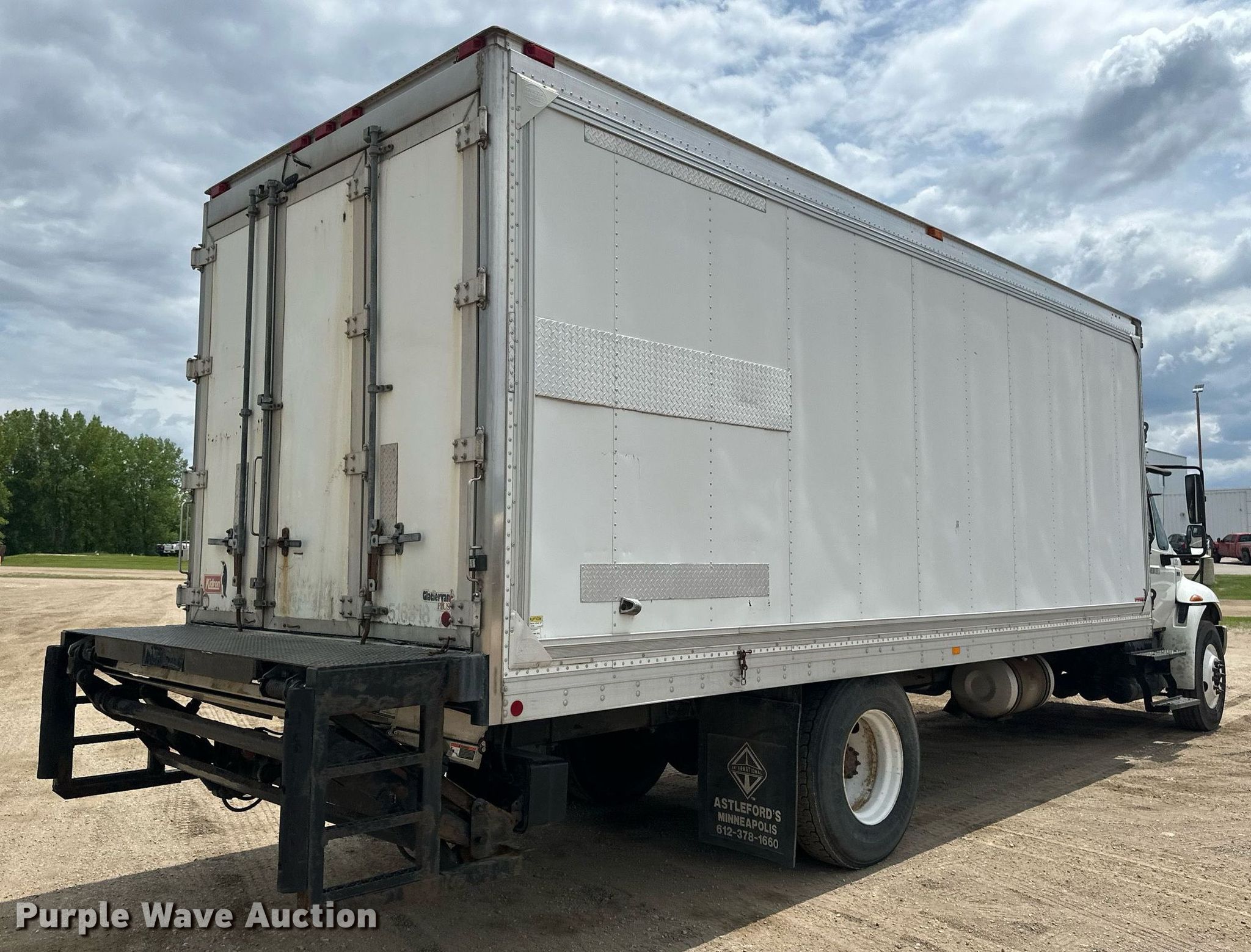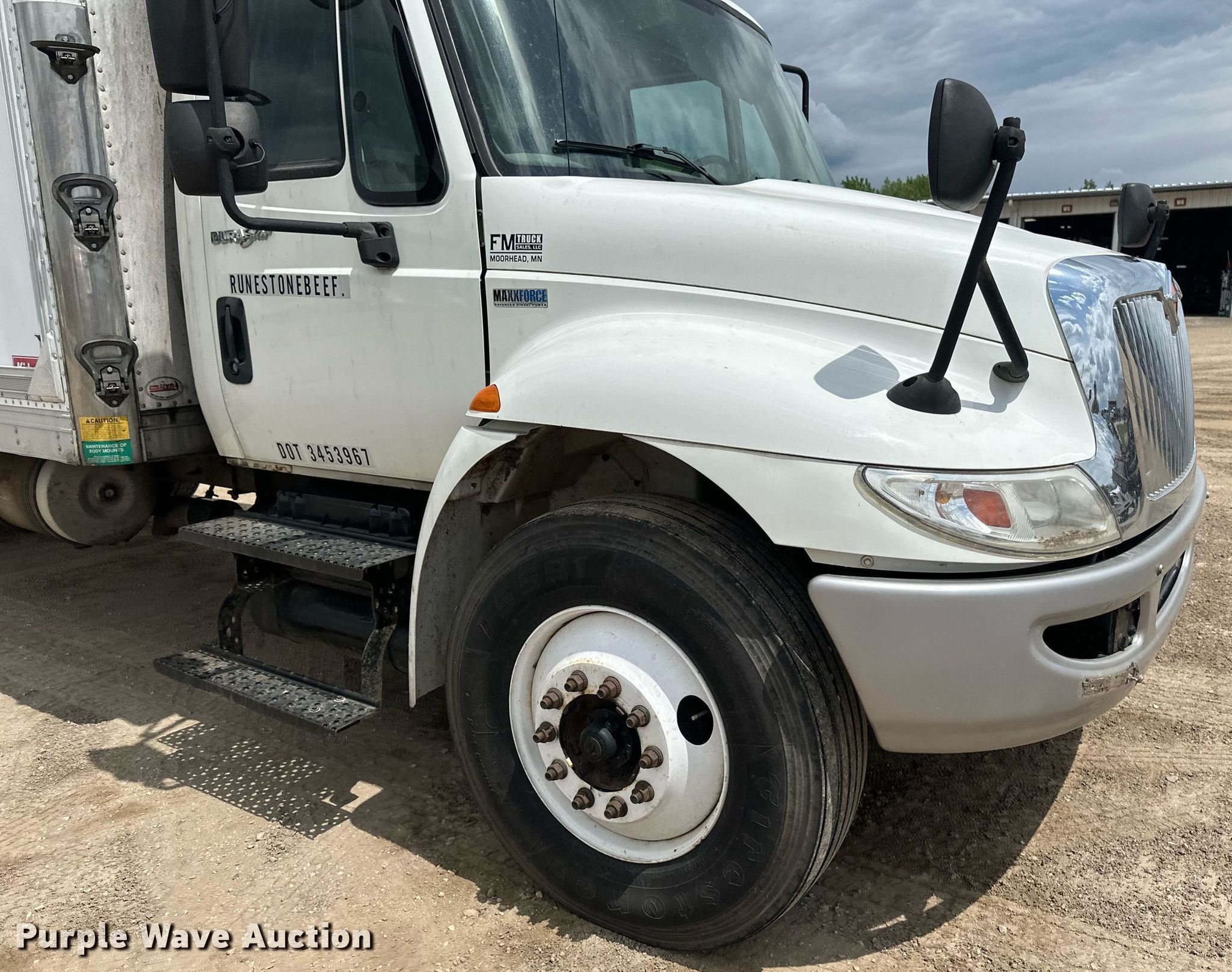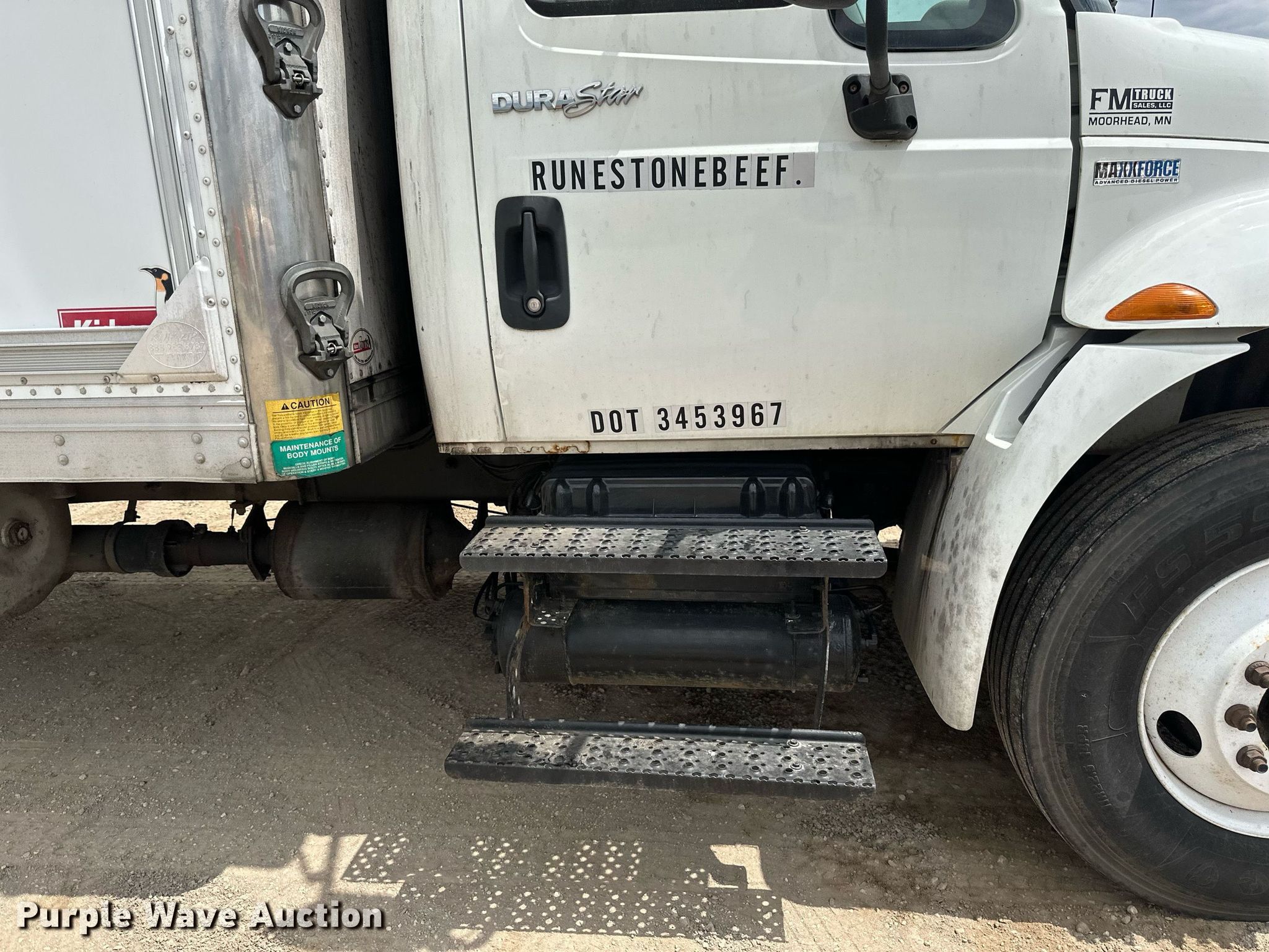 2013 International 4300 refrigerated truck. Miles: 269,968 on odometer, Hours: 7,212 on meter, VIN: 1HTMMAAN7DH352511. Engine International Maxxforce, Displacement: 7.6L, Cylinders: 6, Fuel type: Diesel. Transmission Eaton Fuller, Automatic. Chassis Axles: Single, Suspension: Spring, Brakes: Air, GVWR: 33,000 lbs. Interior AC, Heat, Heated mirrors, Cruise control. Features Box bed Kiwi zip, 22' 6" L x 8' 6" W x 8' 7" H, E-track rail system, Floor: Aluminum, End gate lift, Maxxon, Refrigeration unit Thermo king T1000, Hours: 24,504.. Tires Size: 11R22.5. Notes Dash warning indicator: Warn engine, Non-operational lift gate. Minnesota title. Title distribution may be delayed up to 14 days from verification of funds. Alexandria, MN 56308