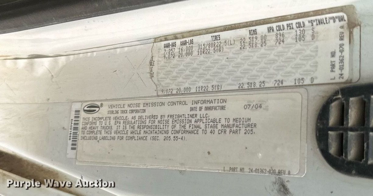 Take a look at this used 2005 Sterling Actera refuse truck being sold on July 2nd, 2025 in the SOLD! July 02 Vehicles and Equipment Auction made by Sterling. Take a look at all of the item information below or take a look at similar auctions for Trucks.