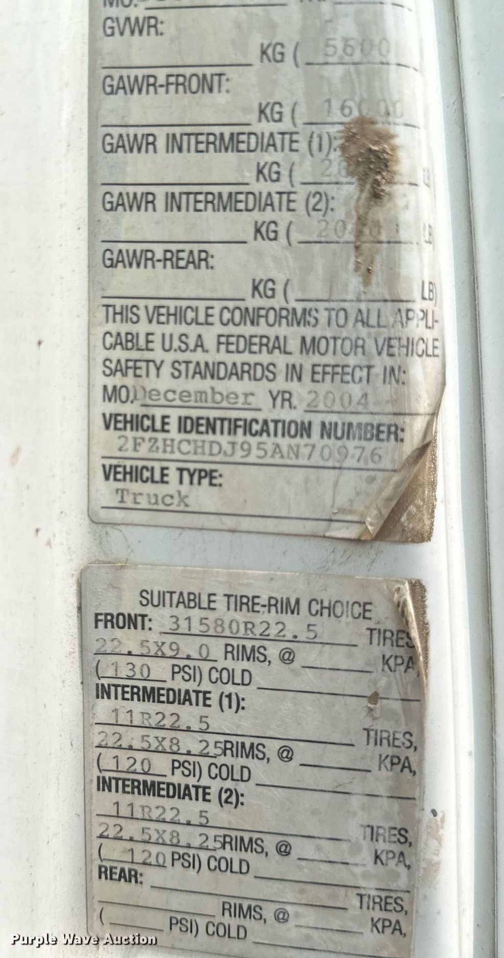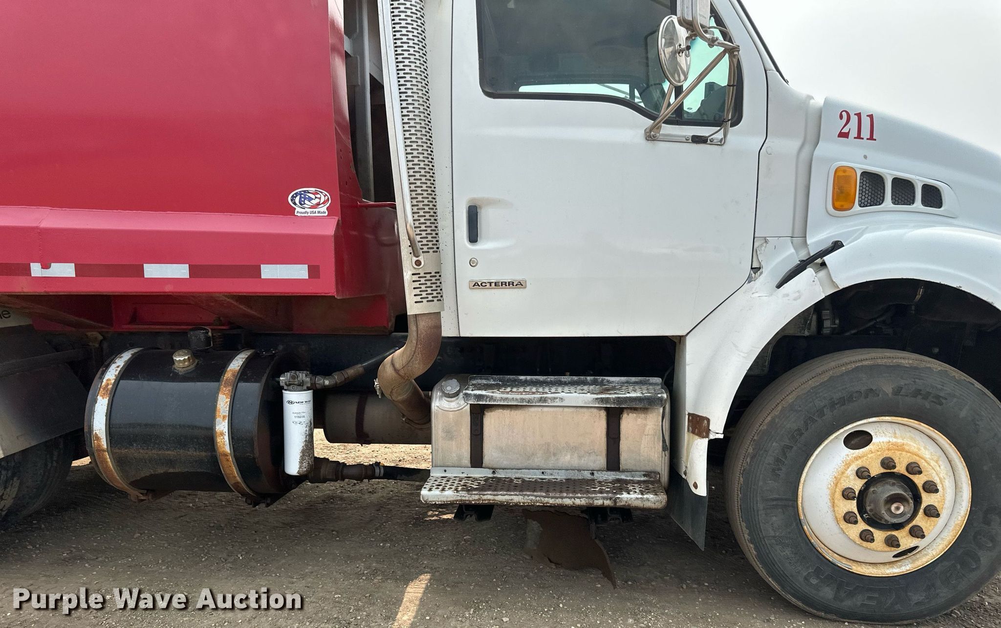 2005 Sterling Actera refuse truck. Miles: 503,518 on odometer, Hours: 13,094 on meter, VIN: 2FZHCHDJ95AN70976, Unit #: 1083. Engine Mercedes Benz, Displacement: 7.2L, Cylinders: 6, Fuel type: Diesel. Transmission Automatic. Chassis Axles: Triple, Pusher axle, Suspension: Spring over walking beam, Brakes: Air, PTO, GVWR: 56,000 lbs. Interior AC, Heat, Cruise control, Backup camera. Features Refuse bed New Way, Load: Rear, Cart tipper, Winch. Tires Size: 11R22.5, Lift axle: 255/70R22.5. North Dakota title. Title distribution may be delayed up to 14 days from verification of funds. Circle Sanitation Inc.. 4700 46th Avenue Northwest. Minot, ND 58703