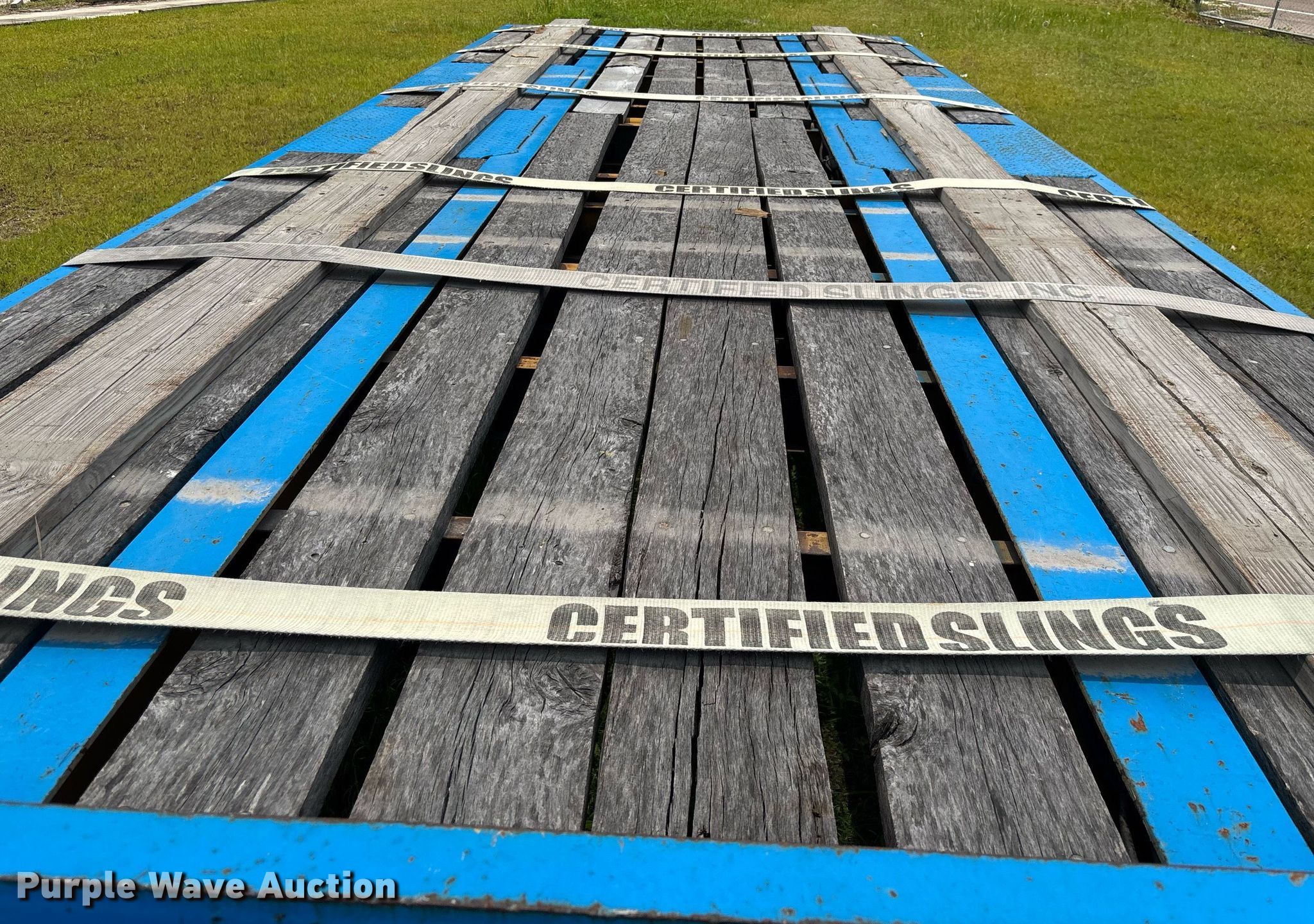 2003 Eager Beaver 20HALX flatbed trailer. VIN: 112H5V3143L061055, Unit #: 6389. Dimensions Overall: 27' 7" L x 102" W, Deck: 22' 3" L x 102" W, Deck height: 36". Chassis Hitch: Pintle, Landing gear: Single, Suspension: Spring, Brakes: Air, Axles: Tandem, GVWR: 47,900 lbs. Tires Size: 215/75R17.5. Florida title. Title distribution may be delayed up to 30 days from verification of funds. Wilbert Funeral Services. Jacksonville, FL 32209