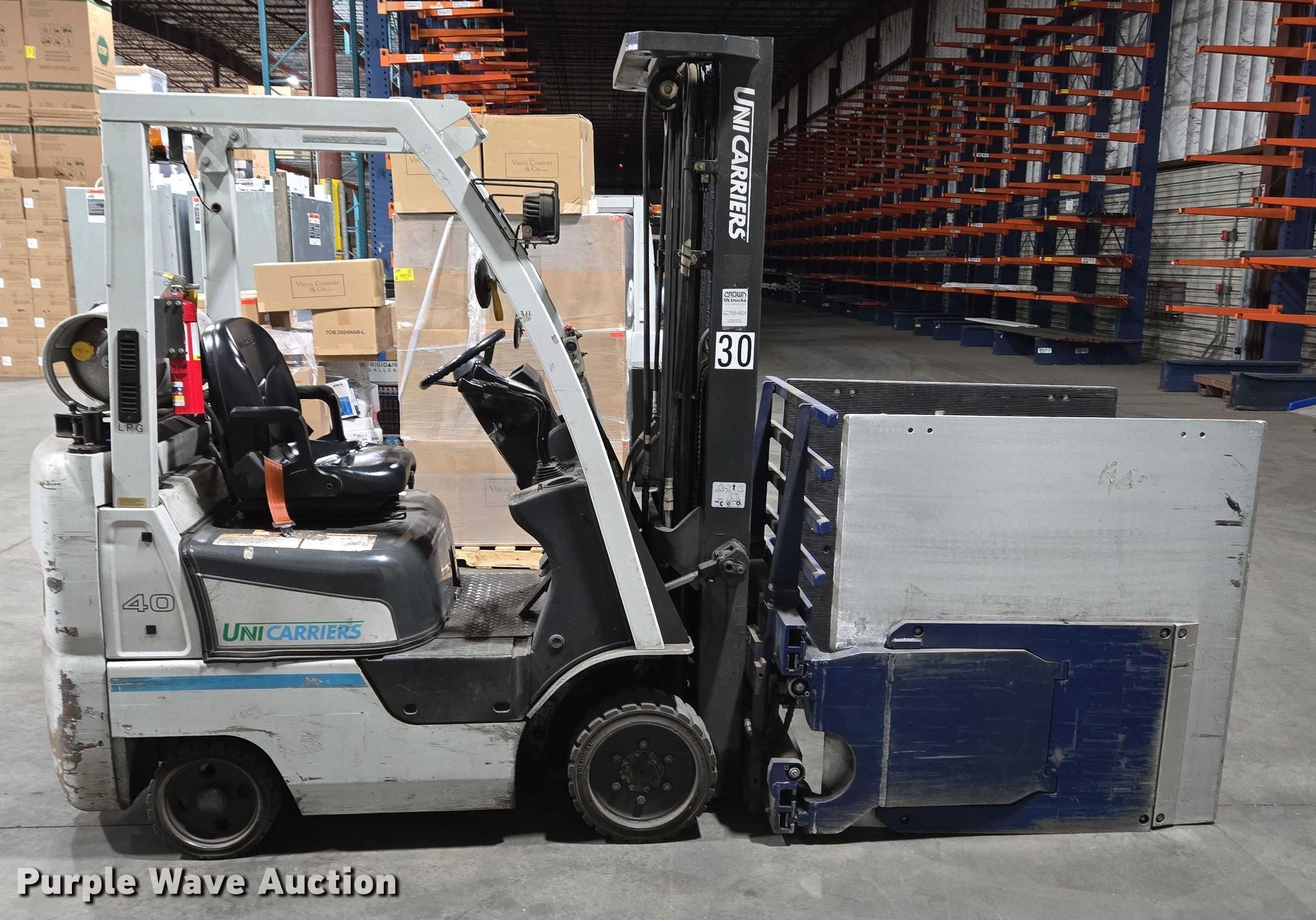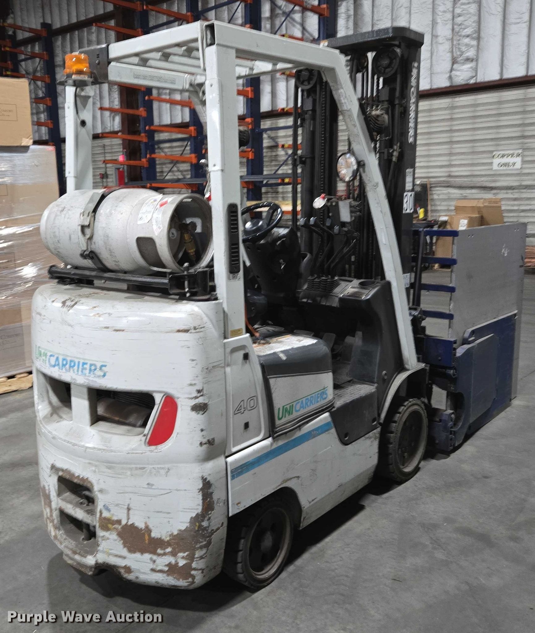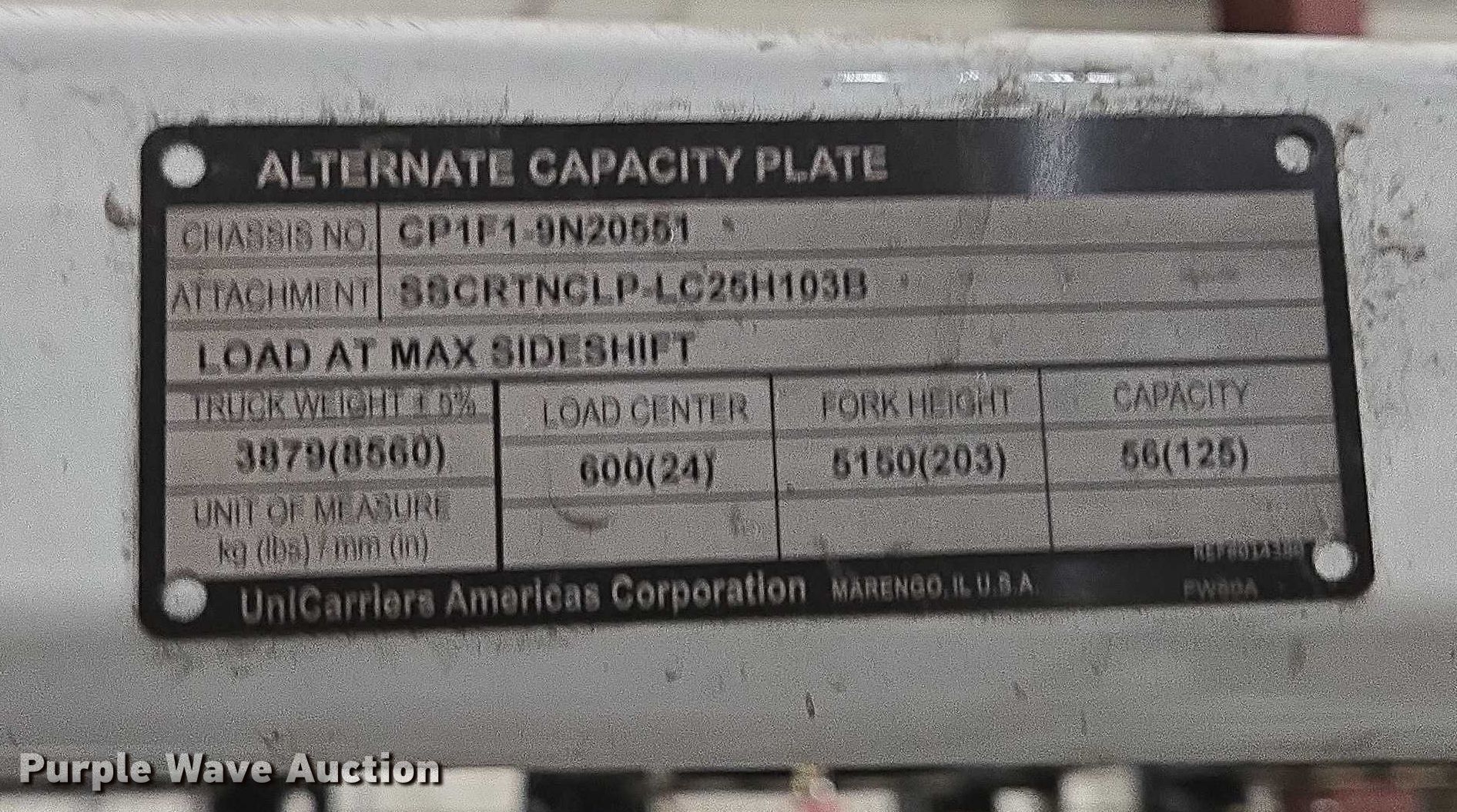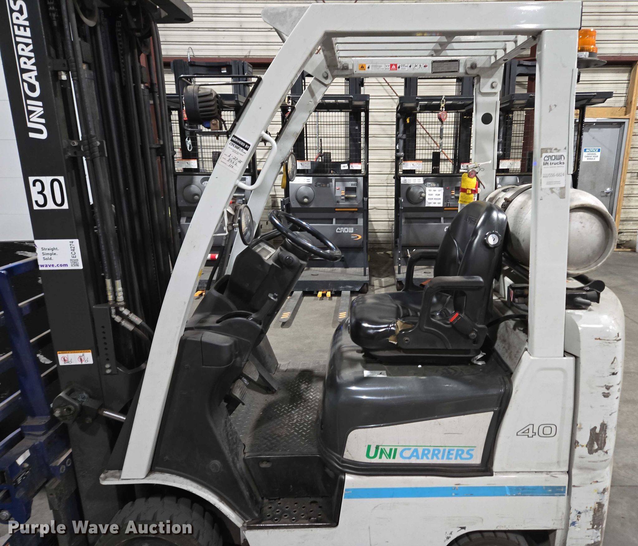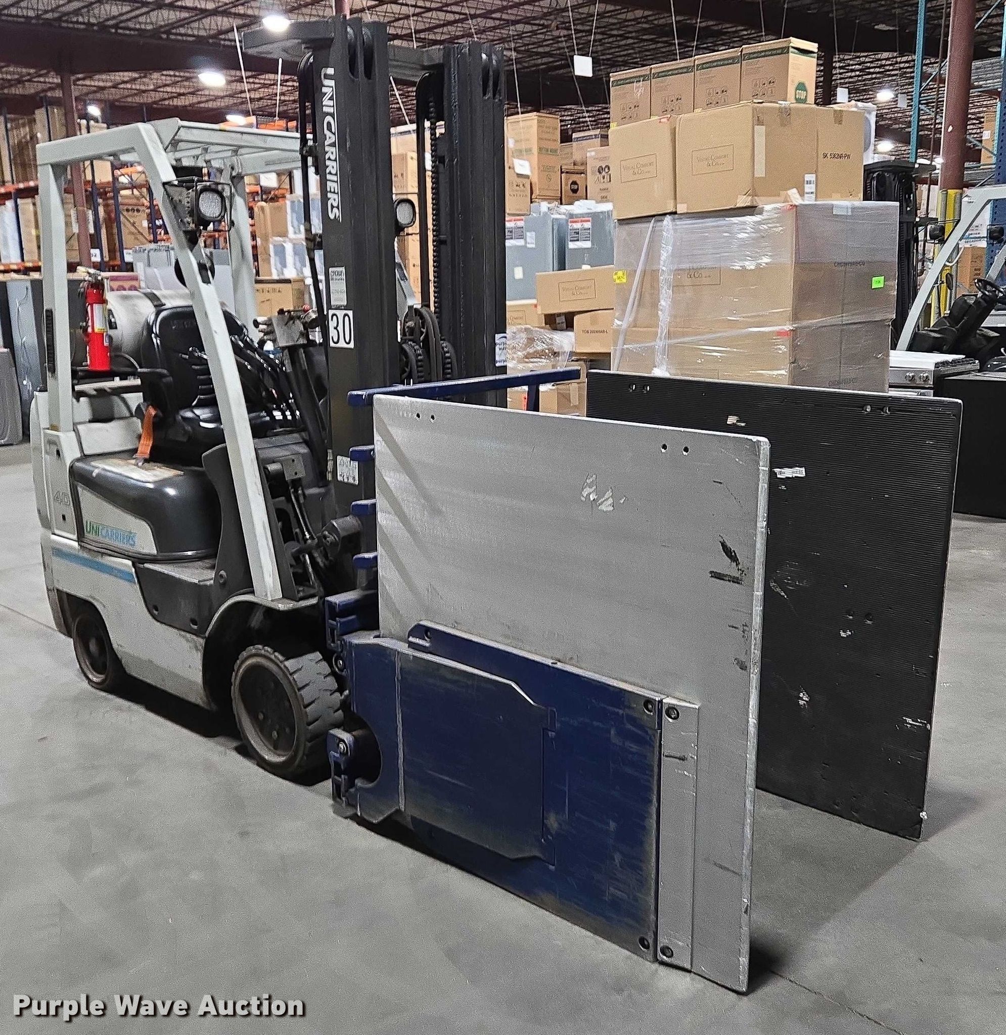 Purple Wave is selling a used Cushion Tire or Pneumatic Forklift in Massachusetts. This item is a 2017 UniCarriers CFS40 forklift with the following: Hours: 5,056 on meter, Serial: CP1F1-9N20551