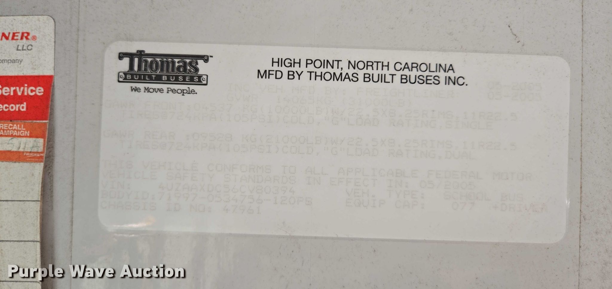 Purple Wave is selling a used Bus in Missouri. This item is a 2006 Freightliner FS65 school bus with the following: Miles: 184,450 on odometer, VIN: 4UZAAXDC56CV80394