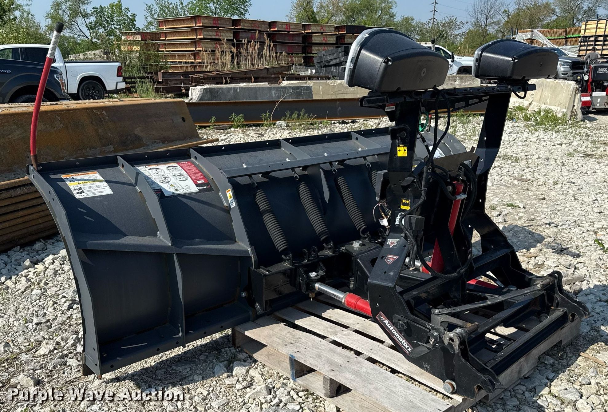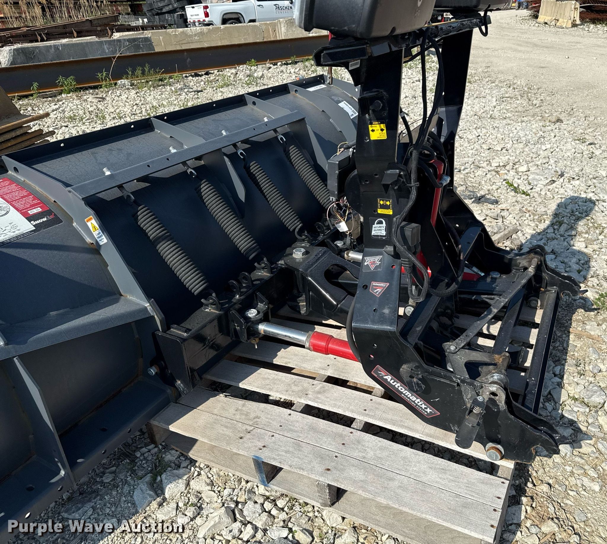 Snow Ex 77725-1 snow plow. Serial: 21120620945577725-1. Features Plow Width: 96", Automatixx mounting system. Snow Management Equipment Auction. South Holland, IL 60473