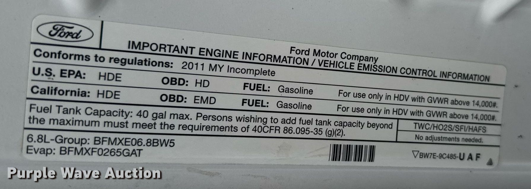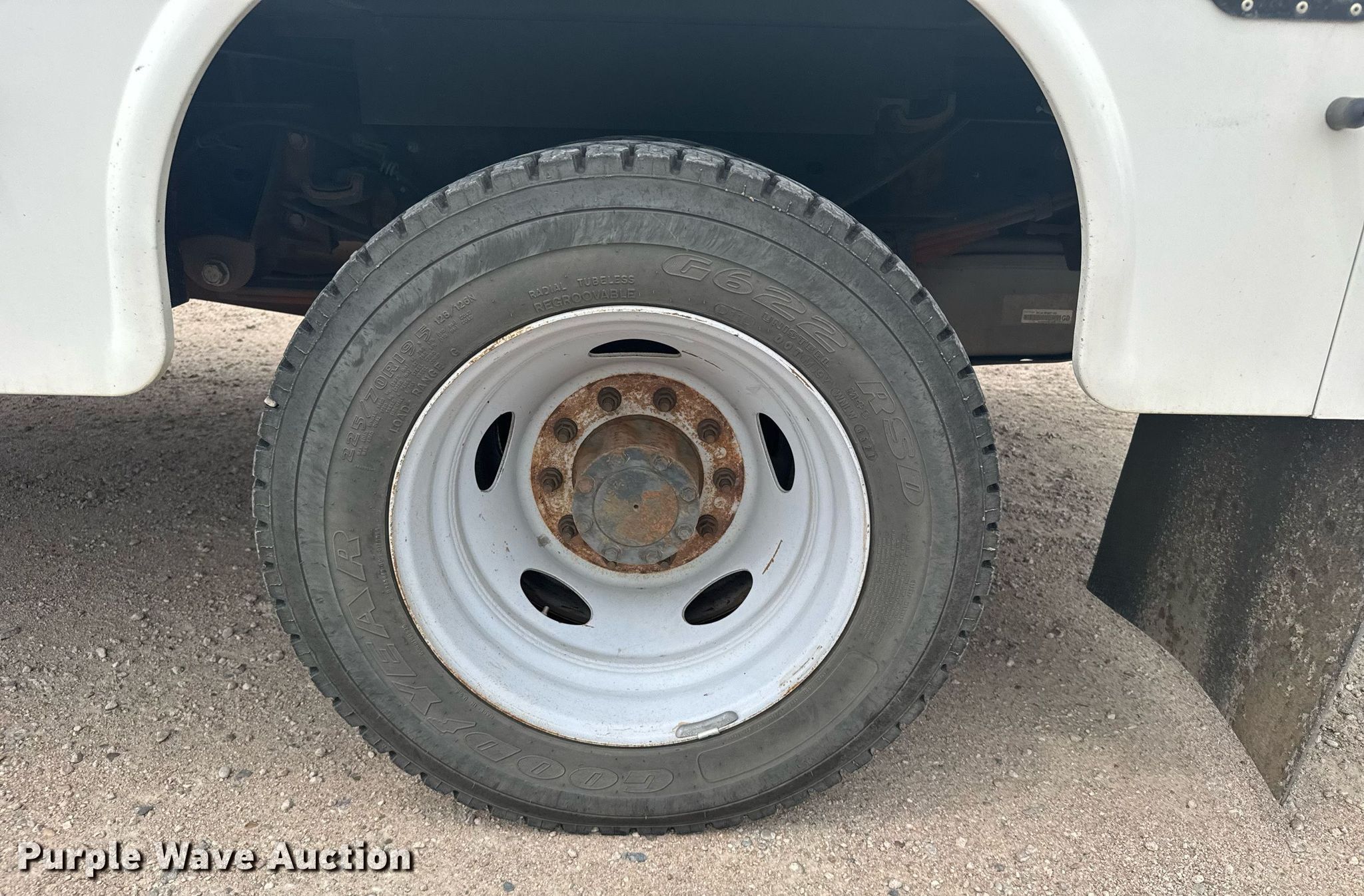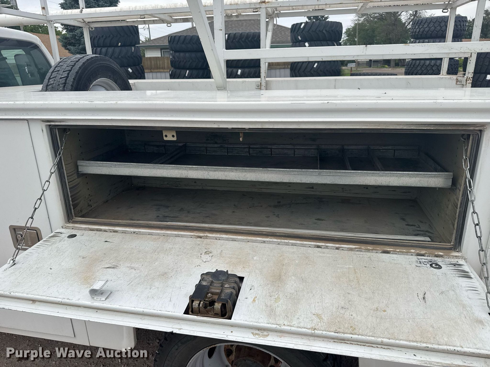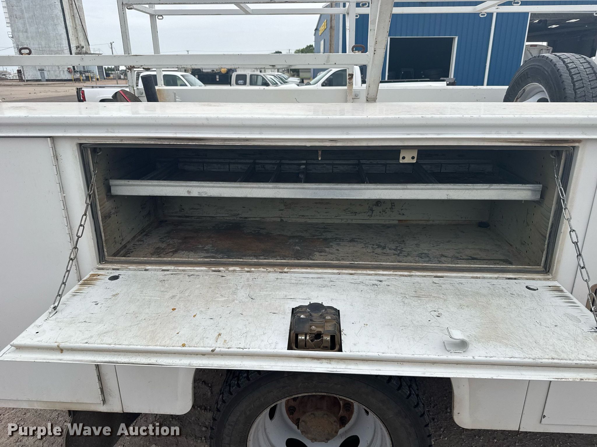 2011 Ford F450 Super Duty SuperCab utility / service truck. Miles: 283,117 on odometer, VIN: 1FD0X4GY1BEA02825. Engine Displacement: 6.8L, Cylinders: 10, Fuel type: Gas. Transmission Automatic. Chassis Axles: Single, Suspension: Spring. Interior AC, Heat, Cruise control, Auxiliary controls. Features Bed Knapheide 6132-50D54J, 122" L x 95" W. Tires Size: 225/70R19.5. Notes Dash warning indicator: Airbag, Windshield chipped or cracked. Kansas title. Title distribution may be delayed up to 14 days from verification of funds. Oakley, KS 67748