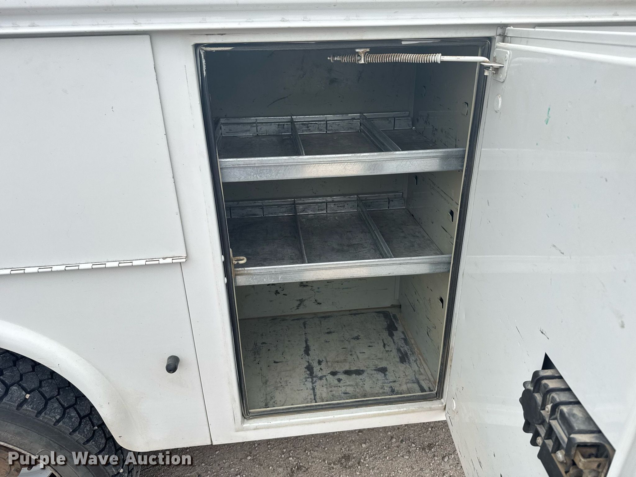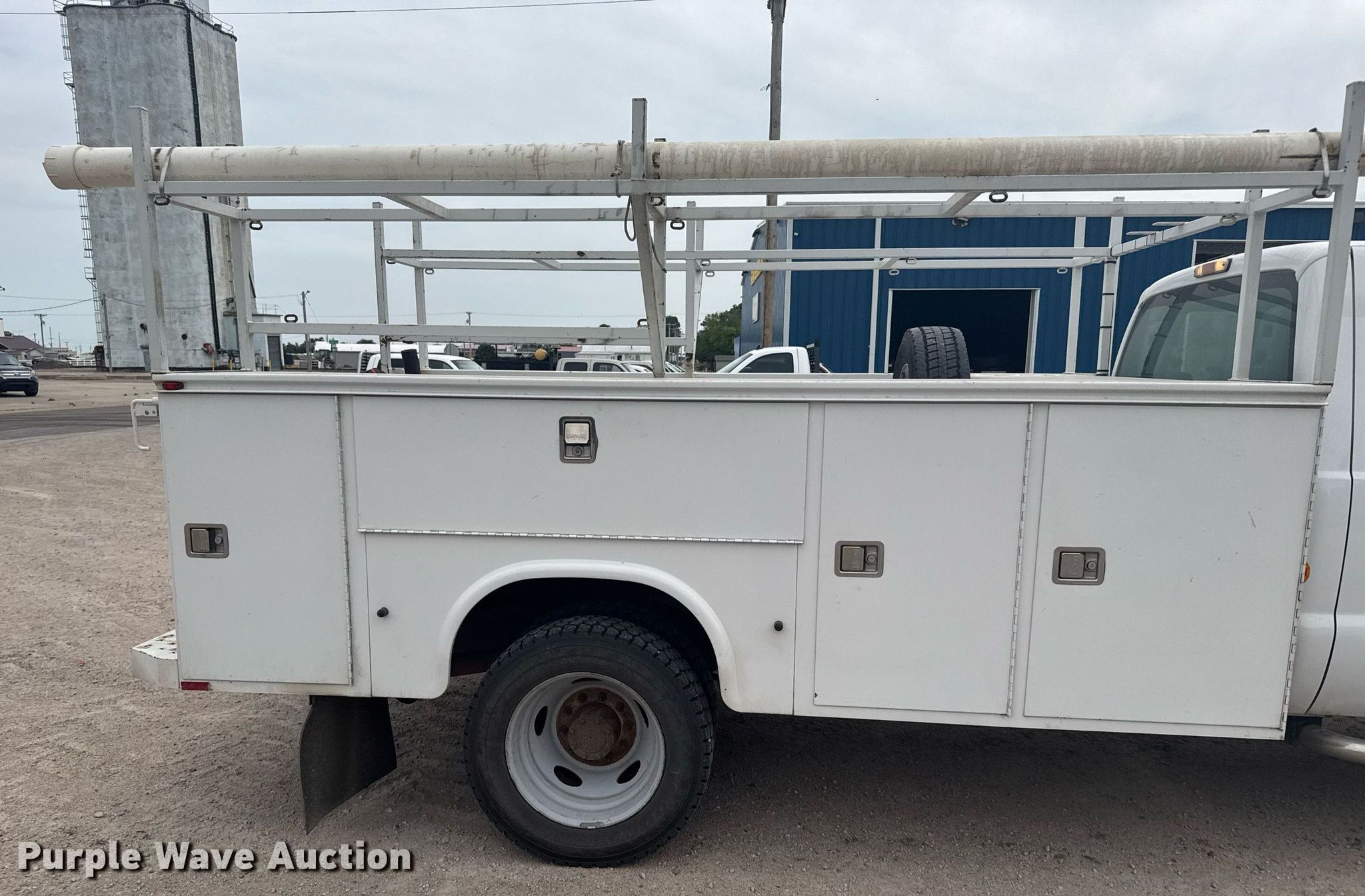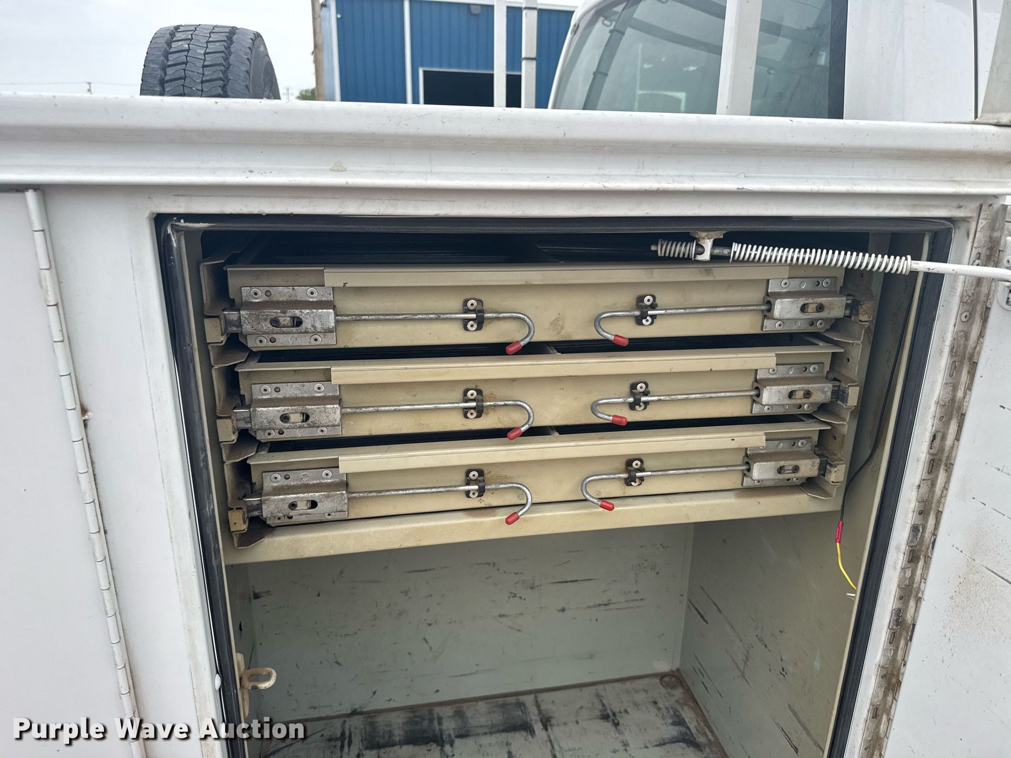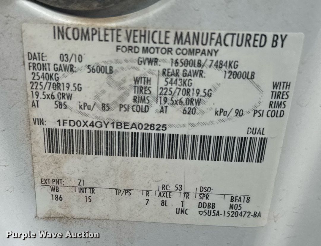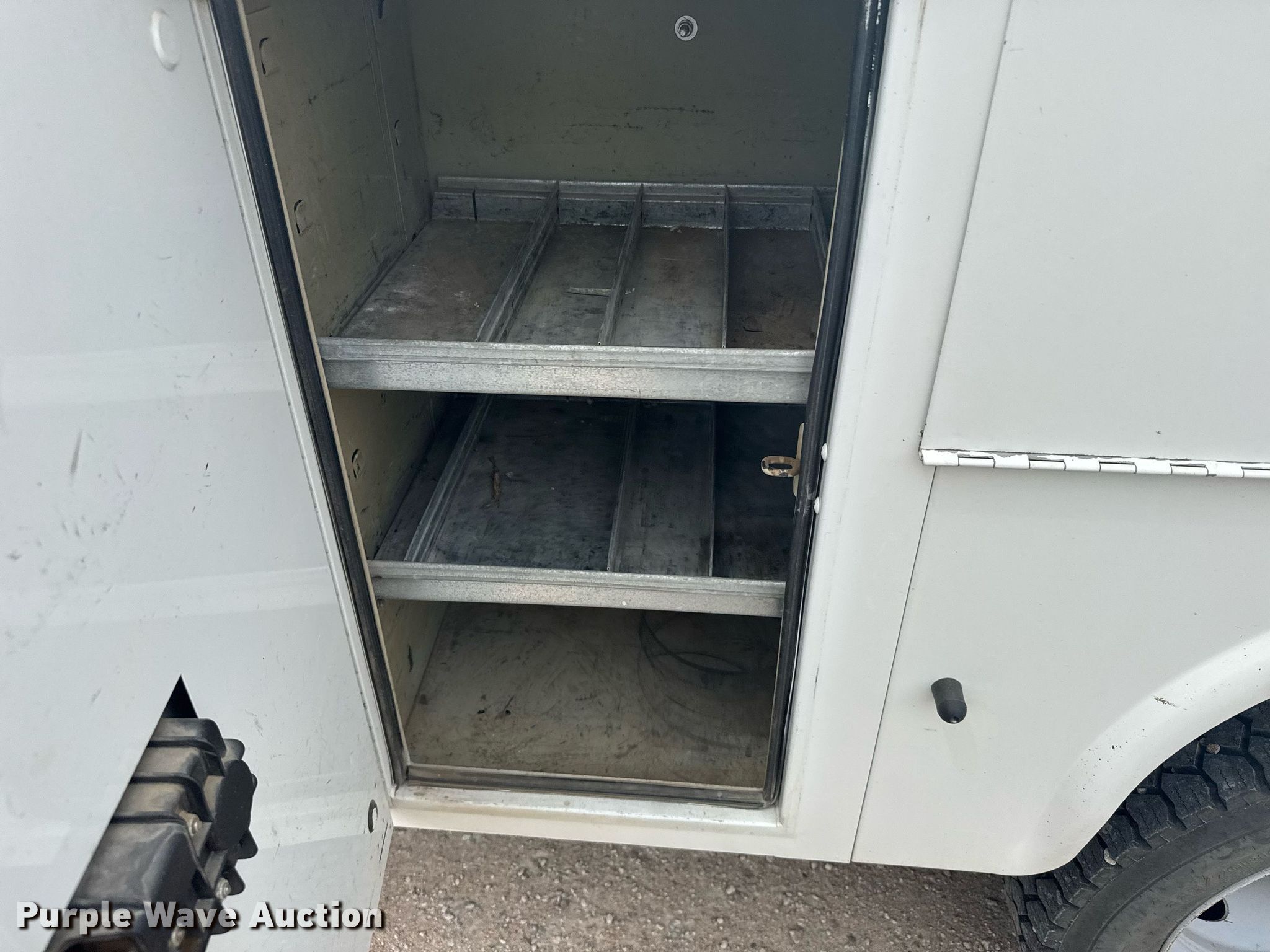 2011 Ford F450 Super Duty SuperCab utility / service truck. Miles: 283,117 on odometer, VIN: 1FD0X4GY1BEA02825. Engine Displacement: 6.8L, Cylinders: 10, Fuel type: Gas. Transmission Automatic. Chassis Axles: Single, Suspension: Spring. Interior AC, Heat, Cruise control, Auxiliary controls. Features Bed Knapheide 6132-50D54J, 122" L x 95" W. Tires Size: 225/70R19.5. Notes Dash warning indicator: Airbag, Windshield chipped or cracked. Kansas title. Title distribution may be delayed up to 14 days from verification of funds. Oakley, KS 67748
